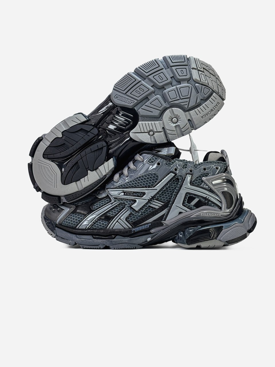 Balenciaga Runner Grey — це поєднання масивного вінтажного силуету, багатошарової сірої палітри та щоденного комфорту. Різні відтінки сірого створюють глибокий, фактурний образ із ефектом зношеності, який виглядає сучасно й характерно, а фірмовий дизайн Balenciaga додає моделі впізнаваності та сміливого стилю.