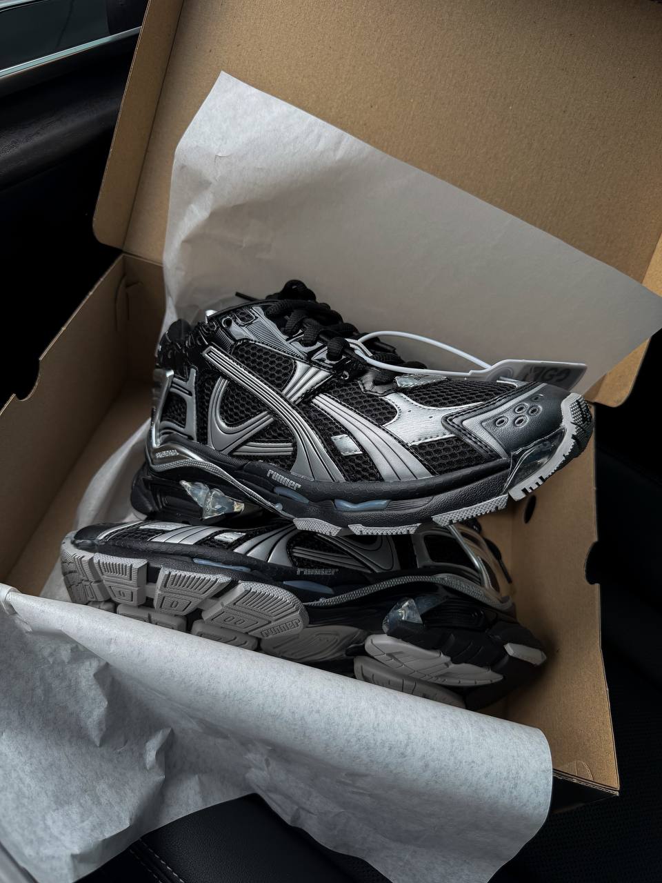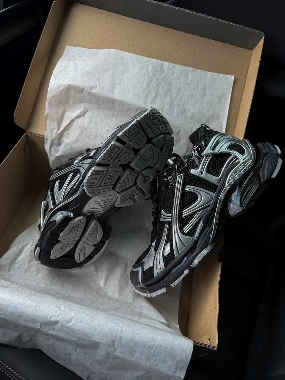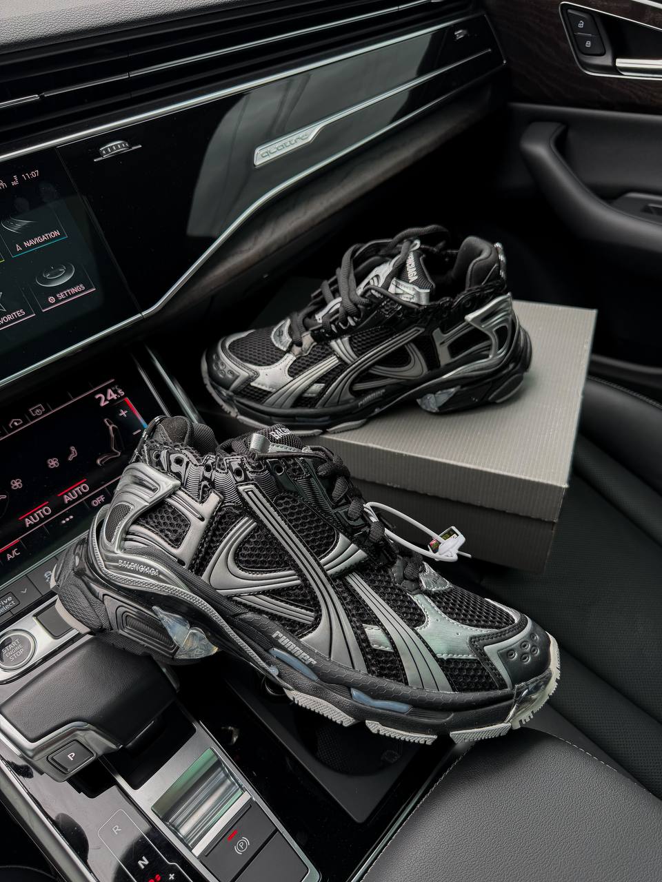 Balenciaga Runner Sneaker Black Silver — це поєднання бігового силуету, багатошарового дизайну та преміального комфорту. Контраст чорного та сріблястого відтінків створює технологічний і динамічний образ, а характерна естетика Balenciaga додає моделі виразності та high-fashion настрою.