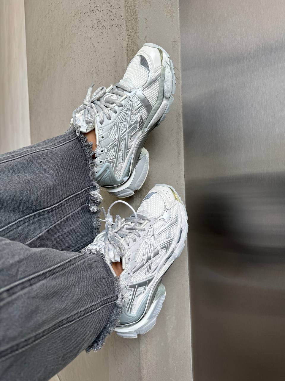 Balenciaga Runner Trainer White/Silver Premium — розкішні кросівки з сучасним дизайном, що поєднують білий верх та сріблясті деталі, створюючи елегантний і футуристичний вигляд.