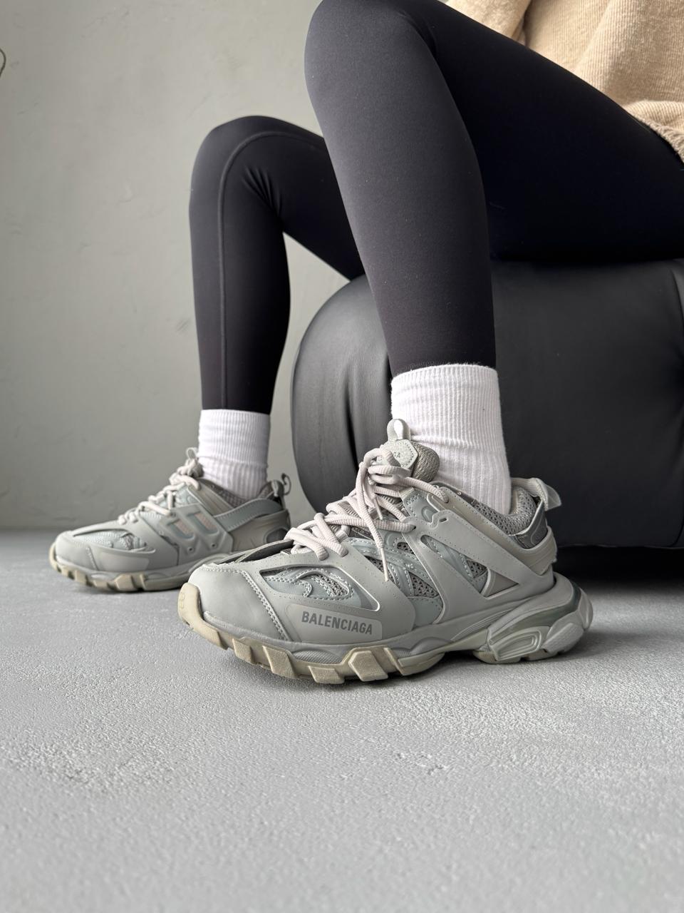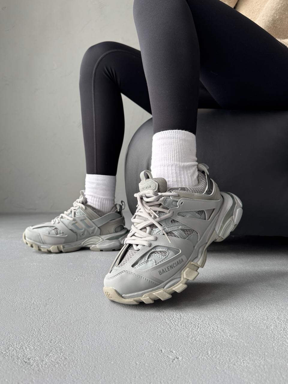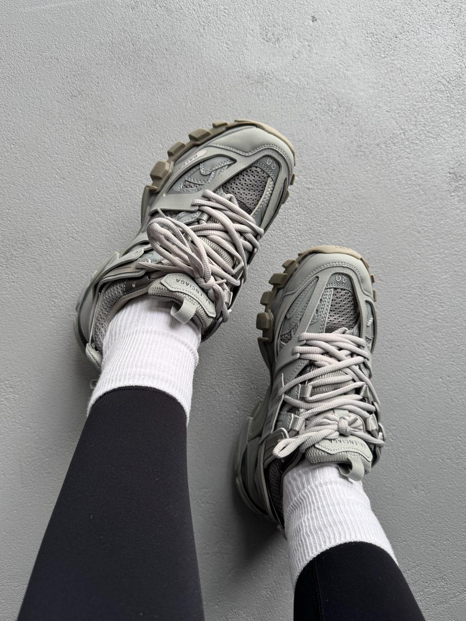 Balenciaga Track Grey — це поєднання складного багатошарового силуету, стриманої сірої палітри та щоденного комфорту. Відтінки сірого створюють універсальний, збалансований образ, який виглядає сучасно та технологічно, а фірмовий дизайн Balenciaga додає моделі впізнаваності та характеру.