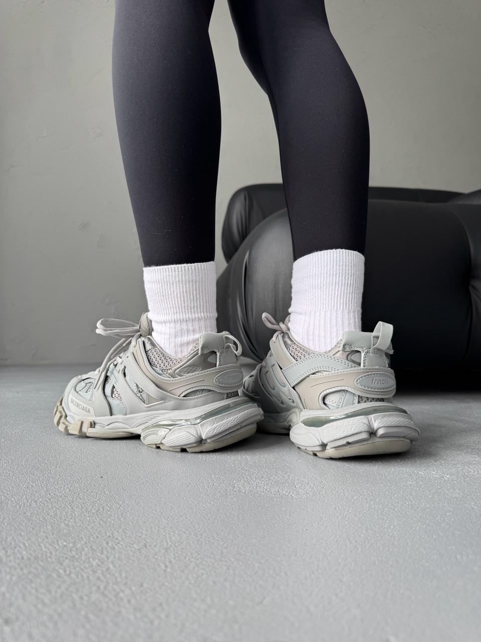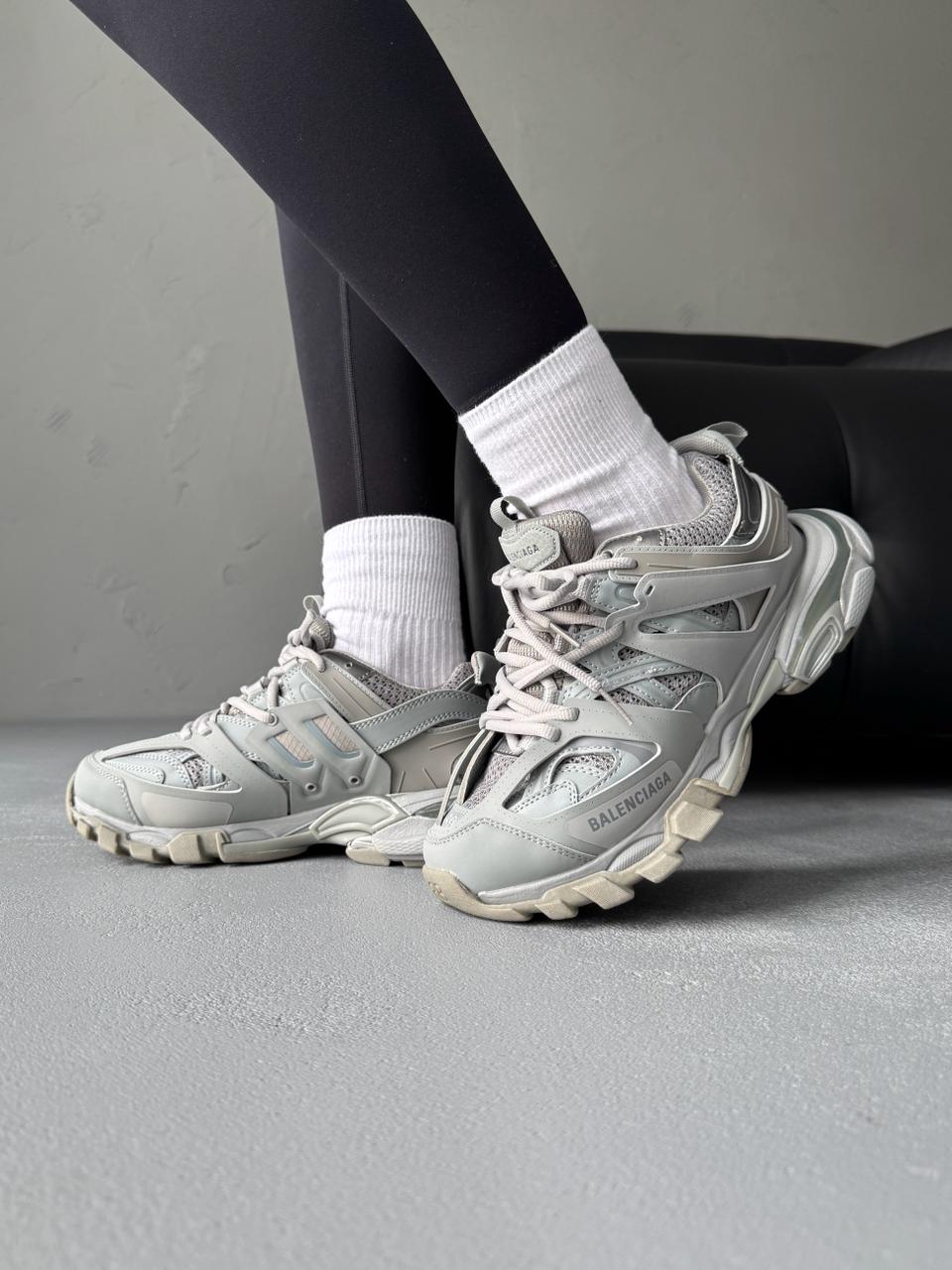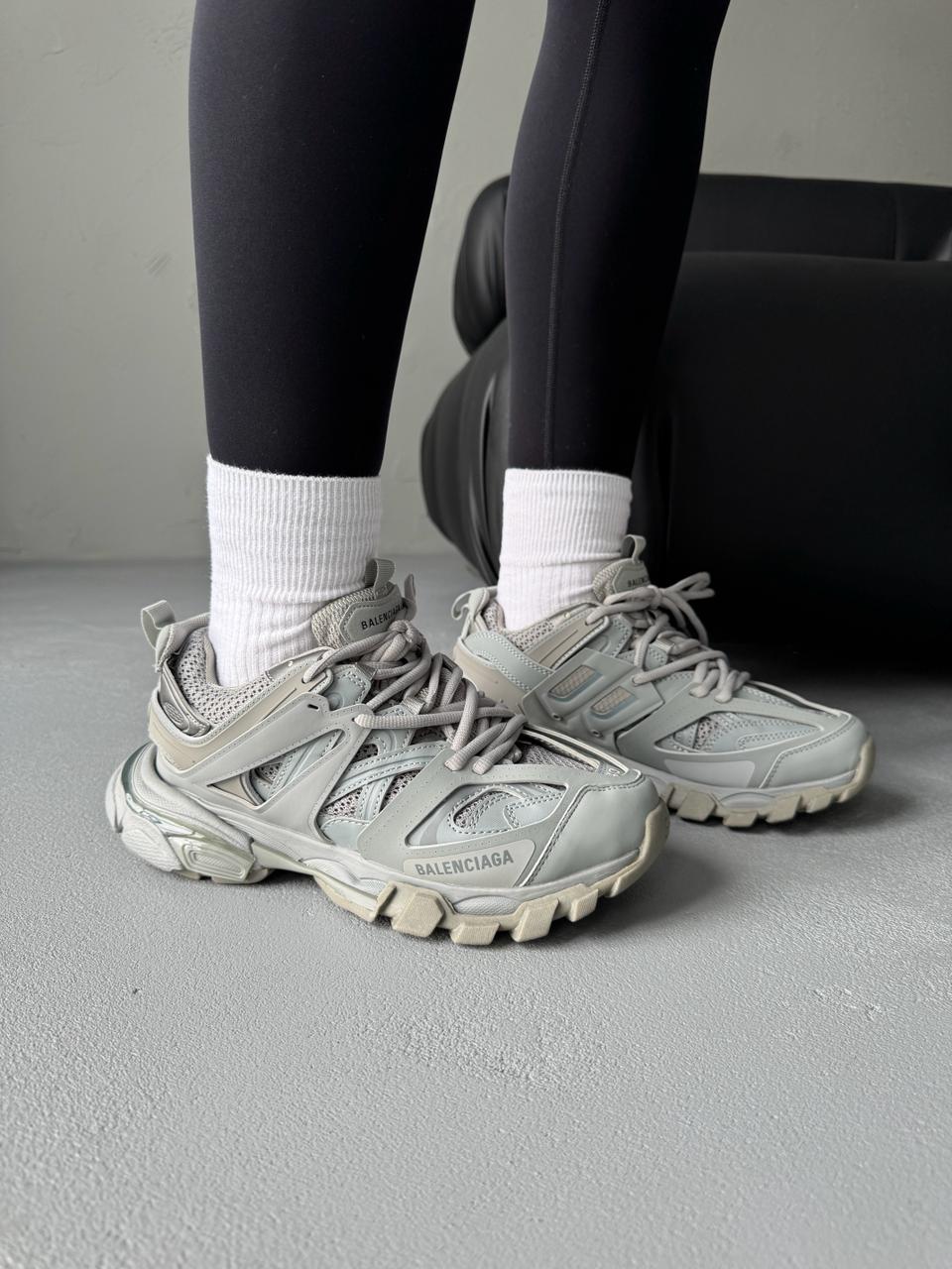 Balenciaga Track Grey — це поєднання складного багатошарового силуету, стриманої сірої палітри та щоденного комфорту. Відтінки сірого створюють універсальний, збалансований образ, який виглядає сучасно та технологічно, а фірмовий дизайн Balenciaga додає моделі впізнаваності та характеру.