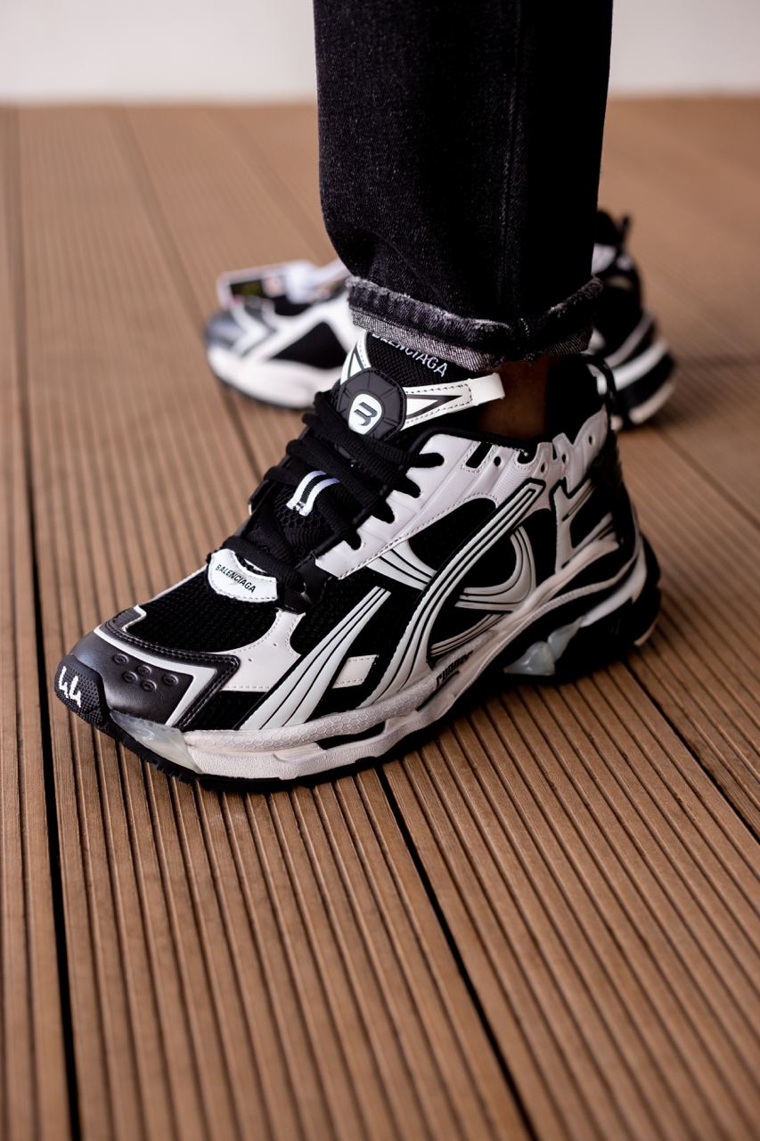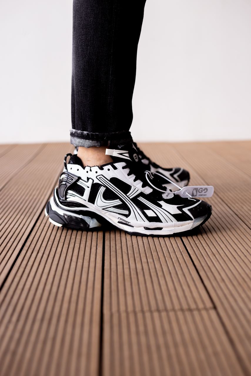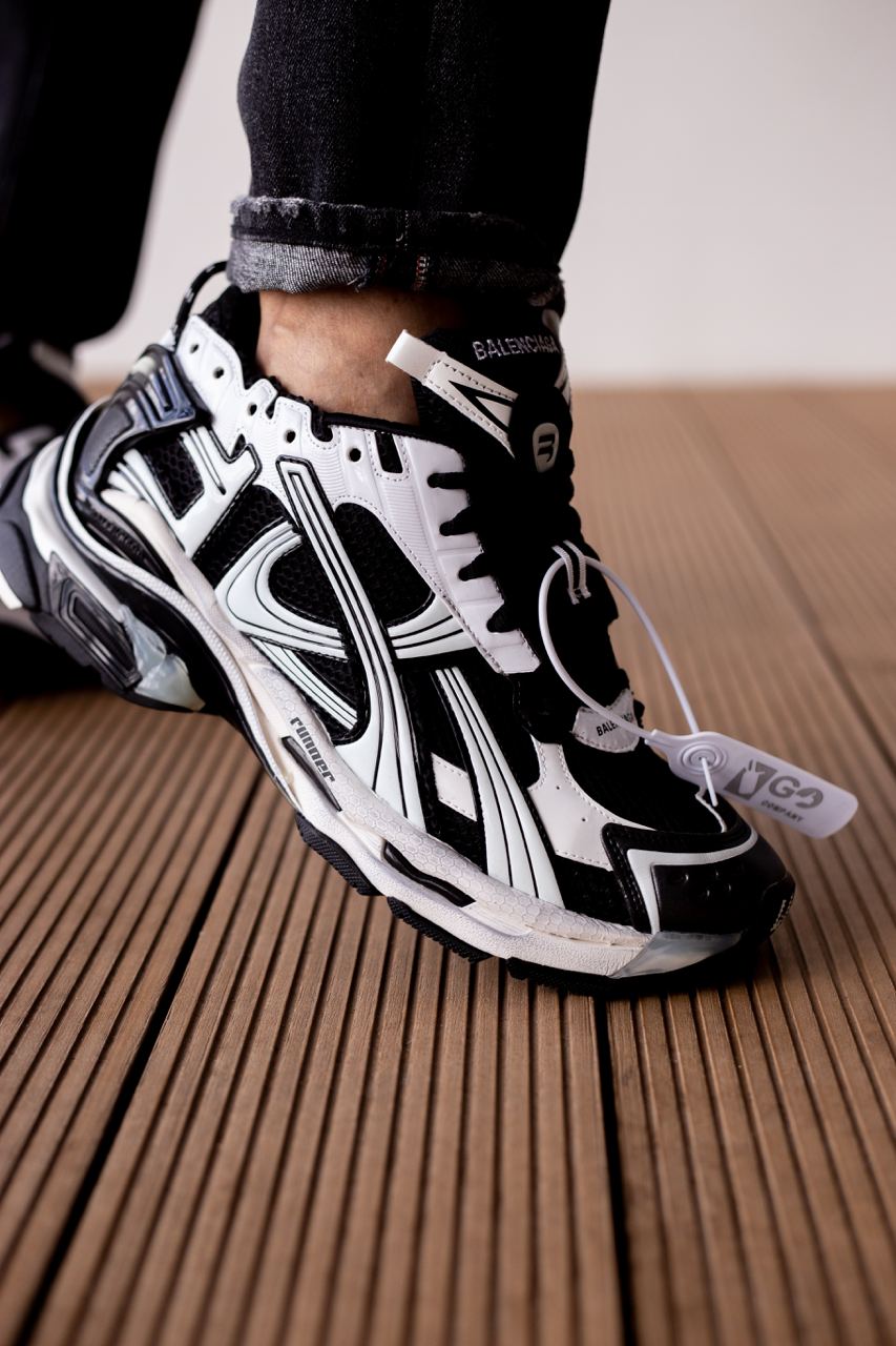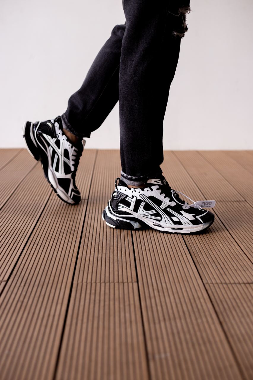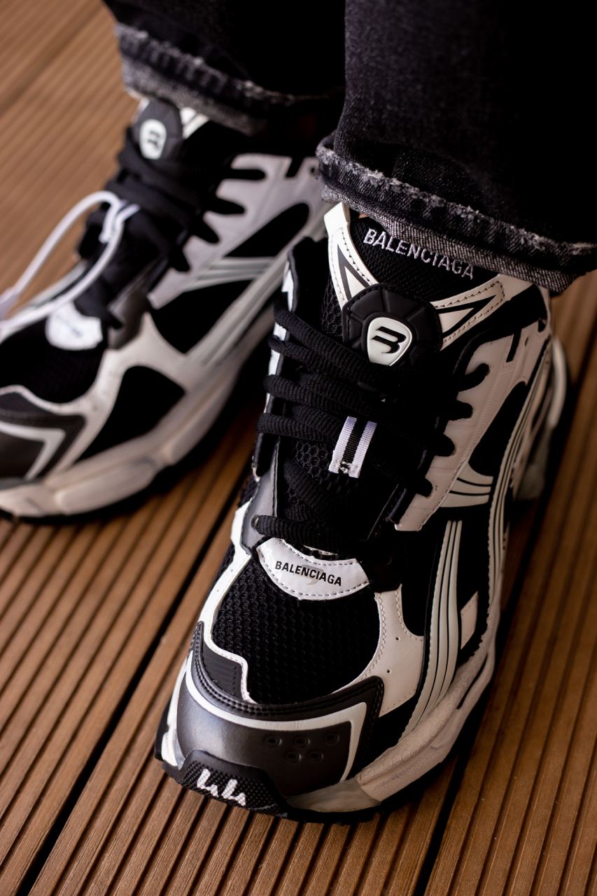 Balenciaga Trainer Black White Runner Sneakers — це поєднання футуристичного силуету та контрастної монохромної палітри. Чорно-біле оформлення підкреслює архітектурний дизайн моделі, а багатошарова конструкція створює ефект глибини та динаміки. Характерний стиль Balenciaga додає парі виразності та преміального настрою.