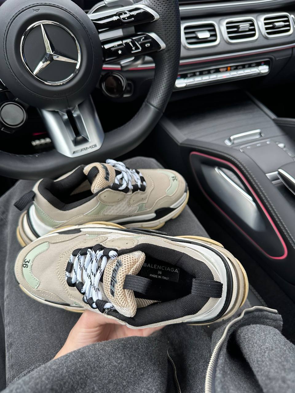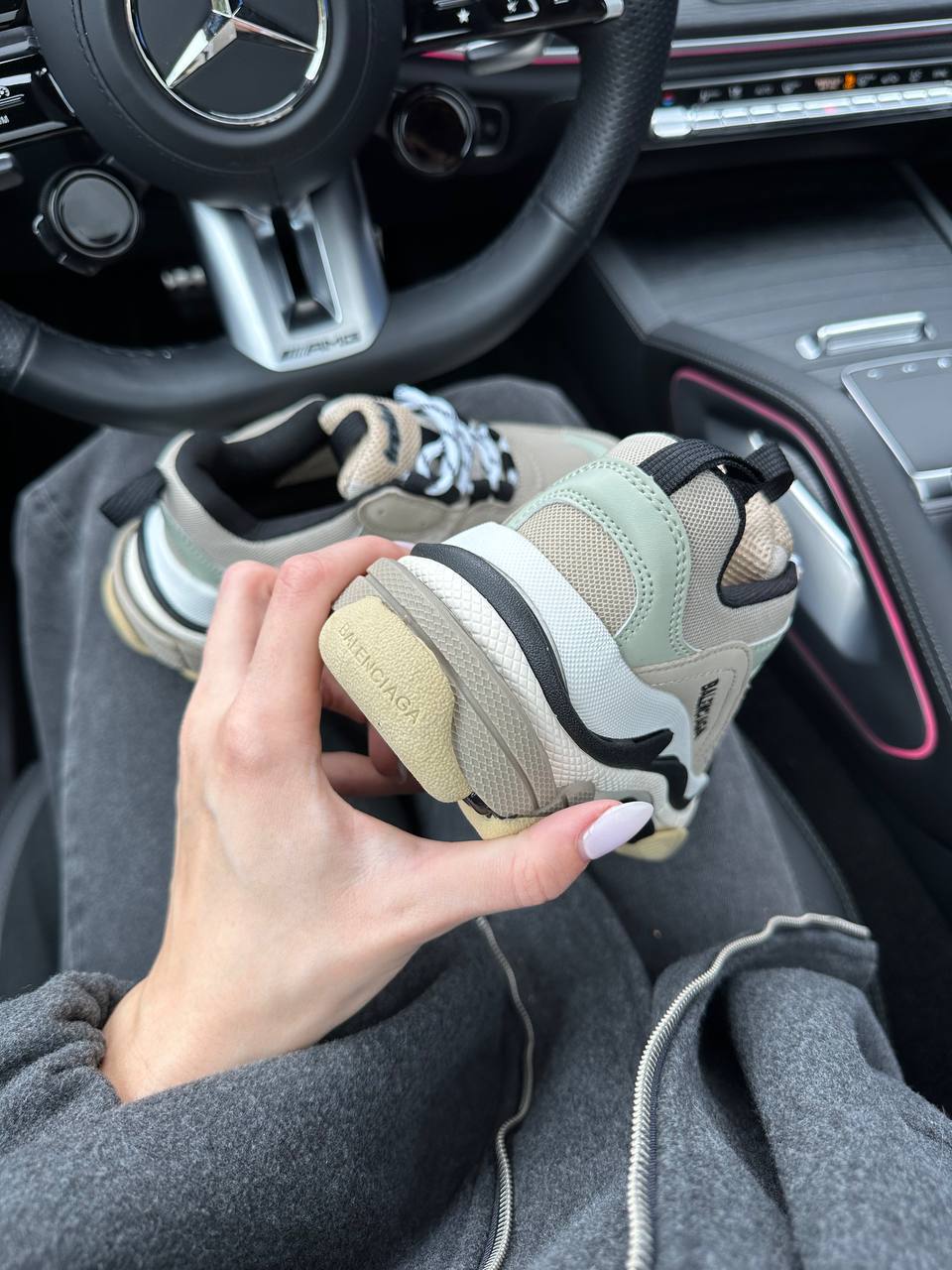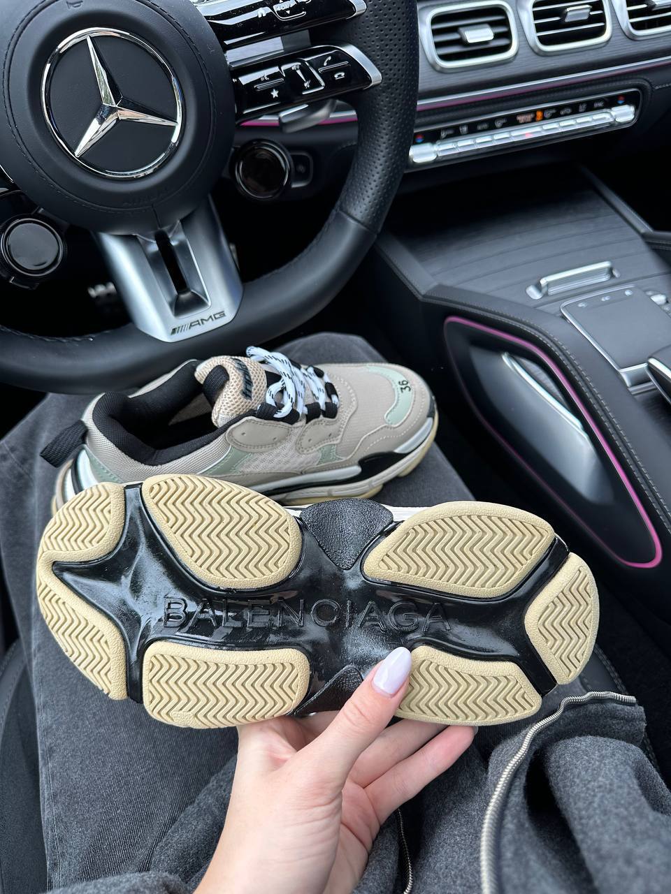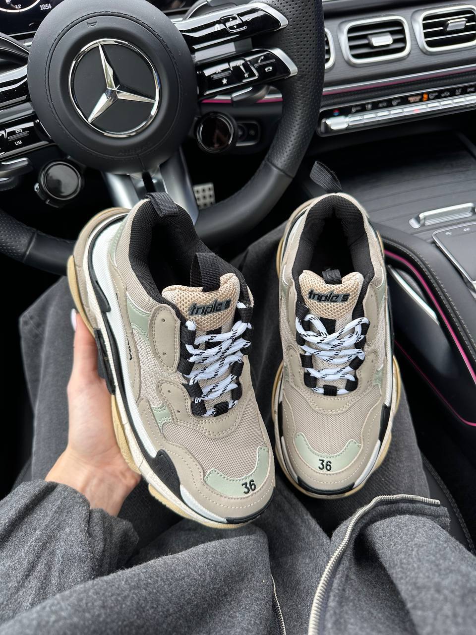 Balenciaga Triple S V1 Beige Black White — це масивні кросівки з багатошаровою конструкцією у поєднанні бежевого, чорного та білого кольорів, що вирізняються об’ємною багатокомпонентною підошвою та виразною люксовою естетикою.