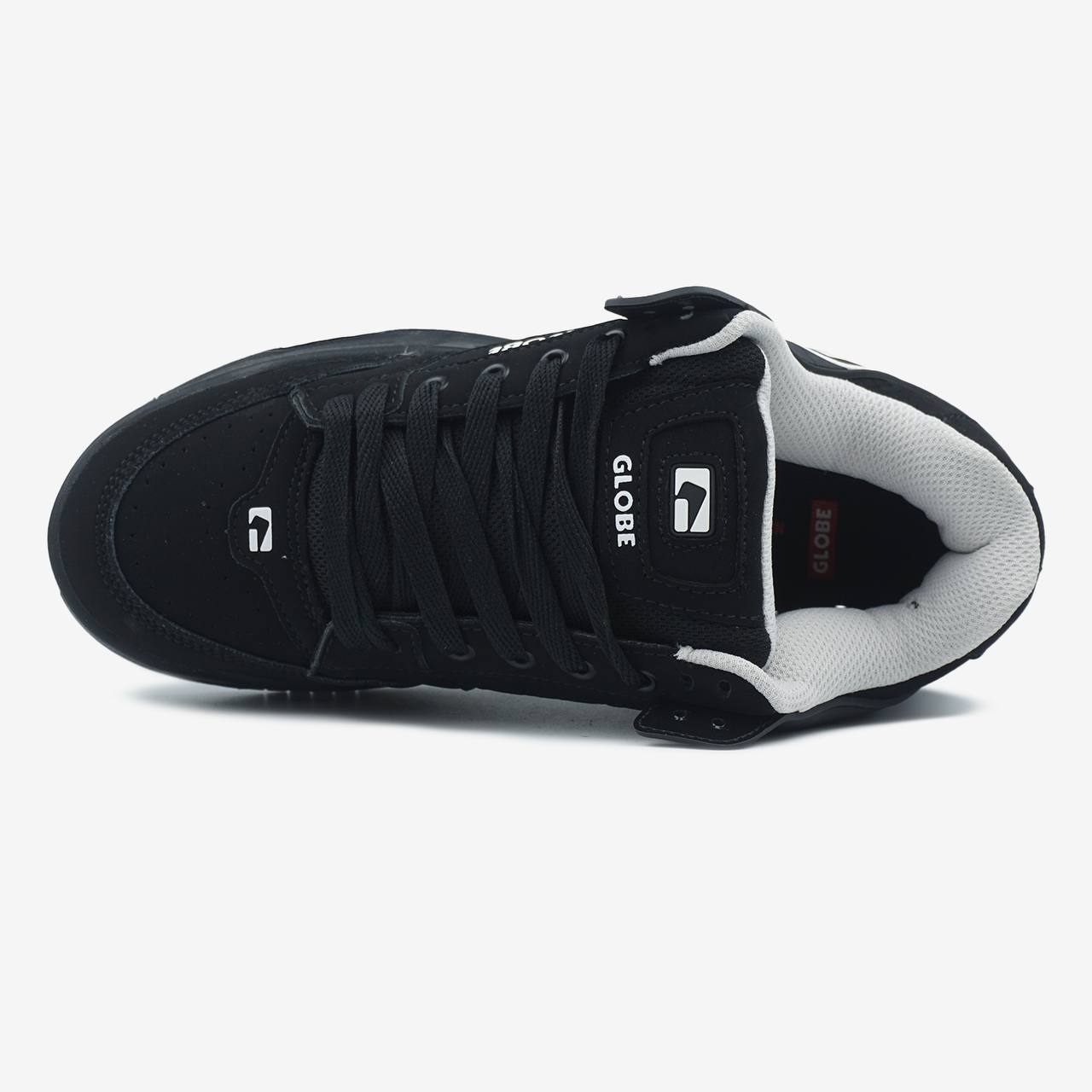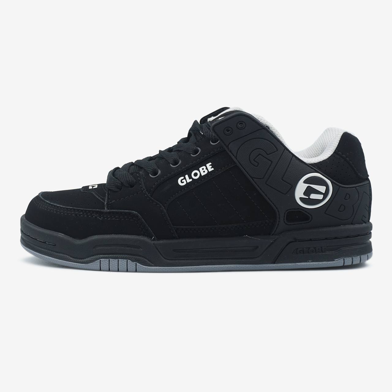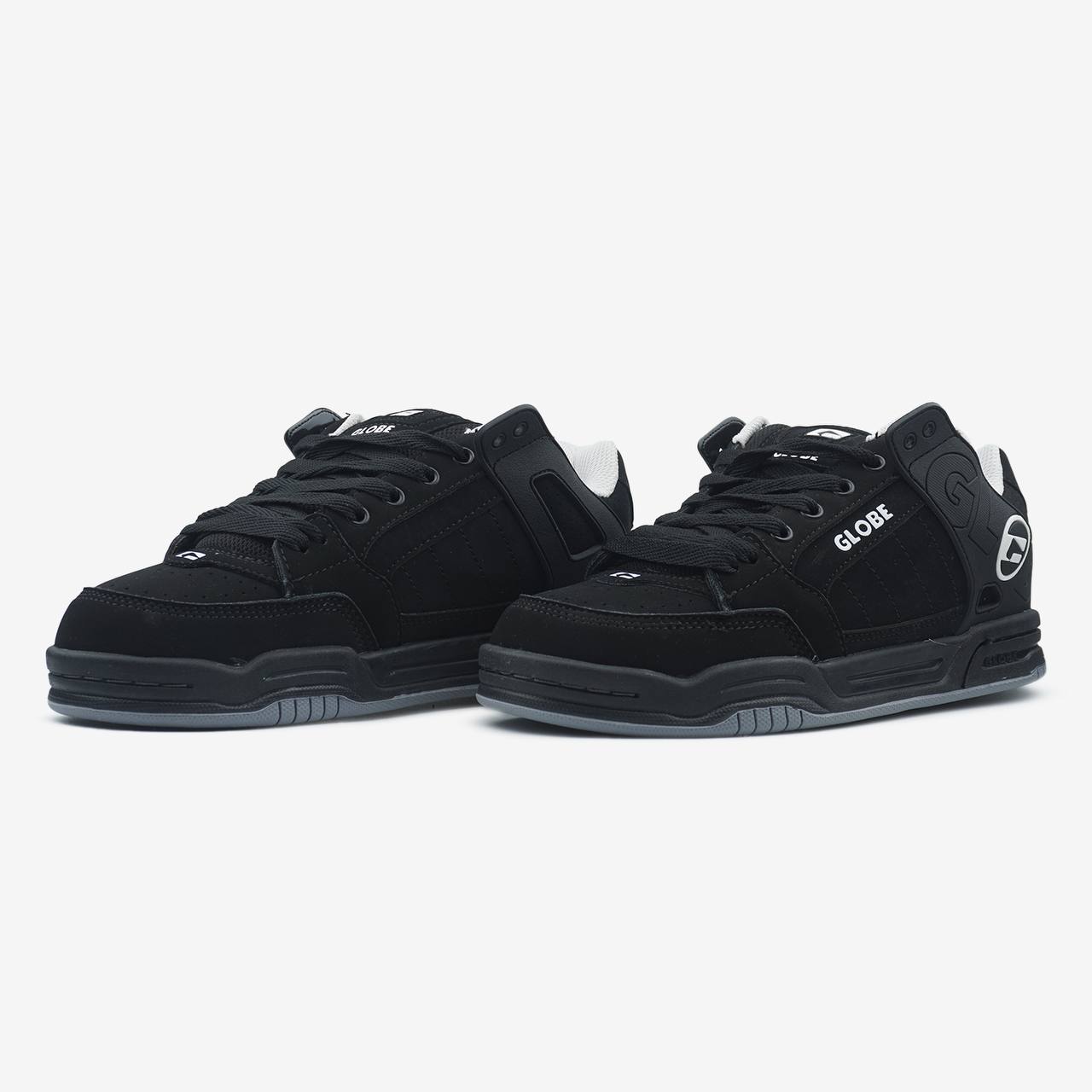 Globe Tilt Black White Logo — це стильні чорні кросівки у класичному скейт-силуеті з контрастними білими логотипами й міцною підошвою, ідеальні для повсякденного носіння та скейтбордингу.