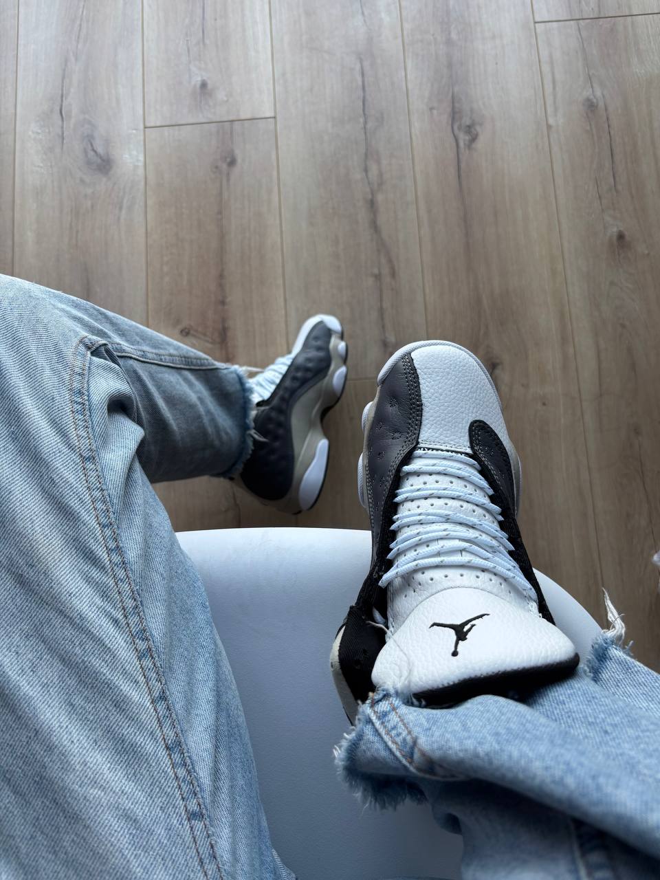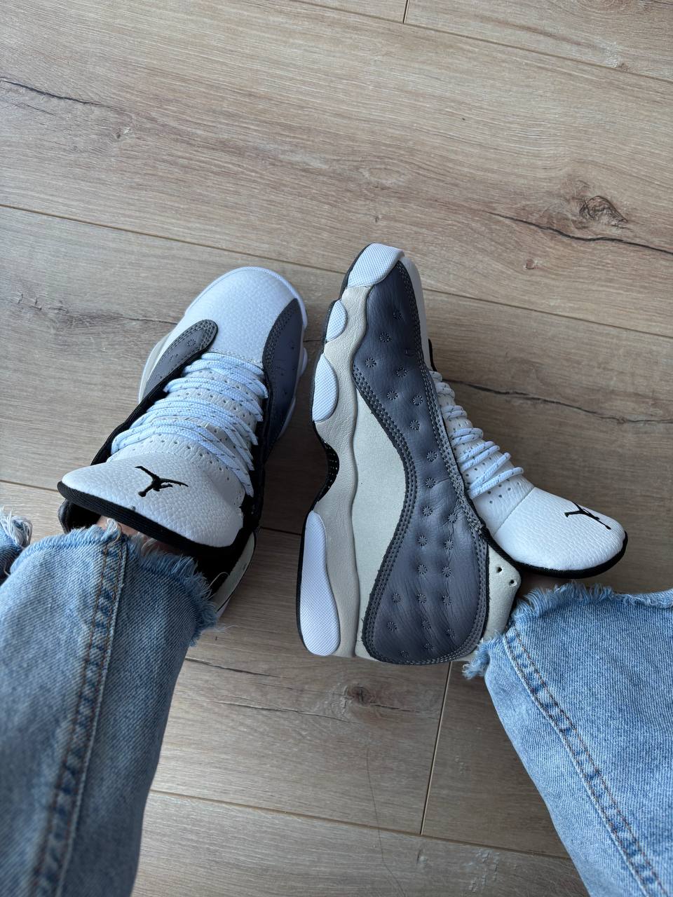 Jordan 13 Retro Atmosphere Grey — це елегантні баскетбольні кросівки з преміальних матеріалів у сірій гамі, що поєднують фірмовий дизайн Jordan 13 з комфортом і спортивною спадщиною.