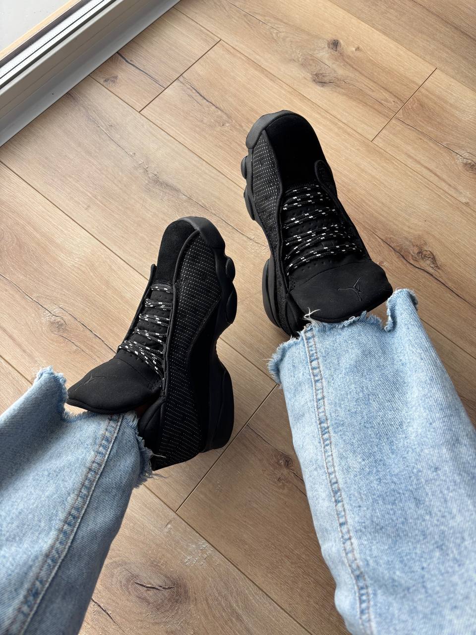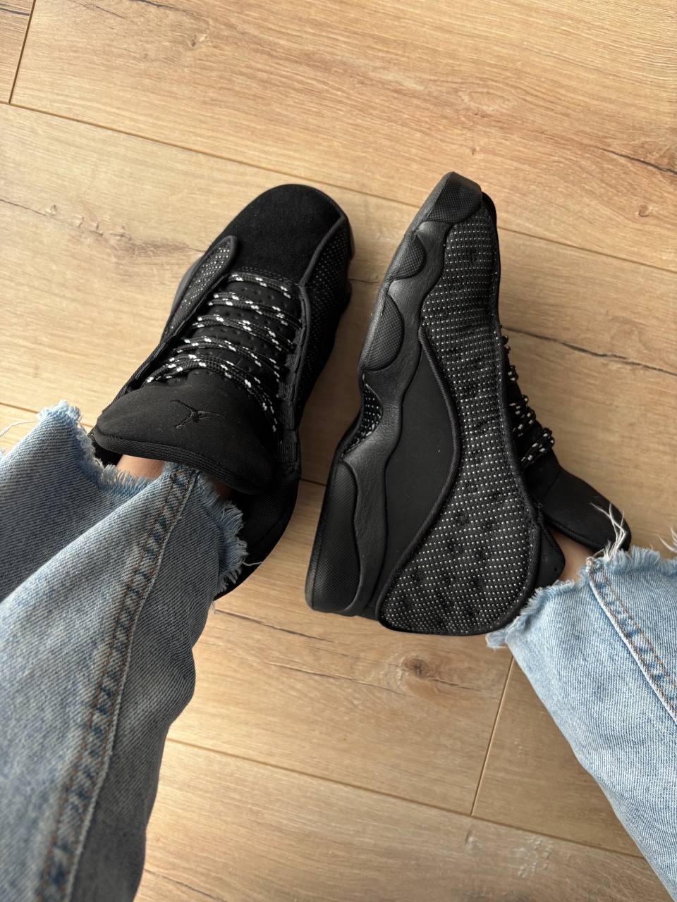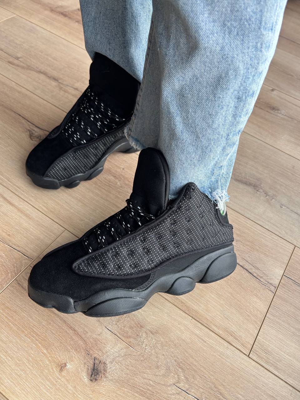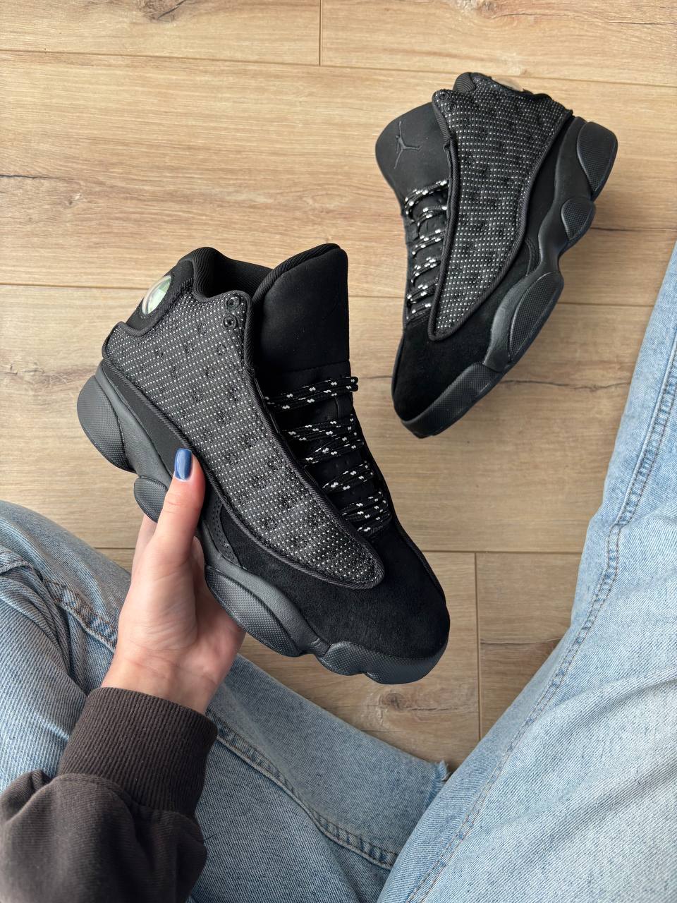 Jordan 13 Retro Black Cat — це стильні повністю чорні кросівки з преміальних матеріалів, що поєднують агресивний дизайн, комфорт і культову баскетбольну спадщину.