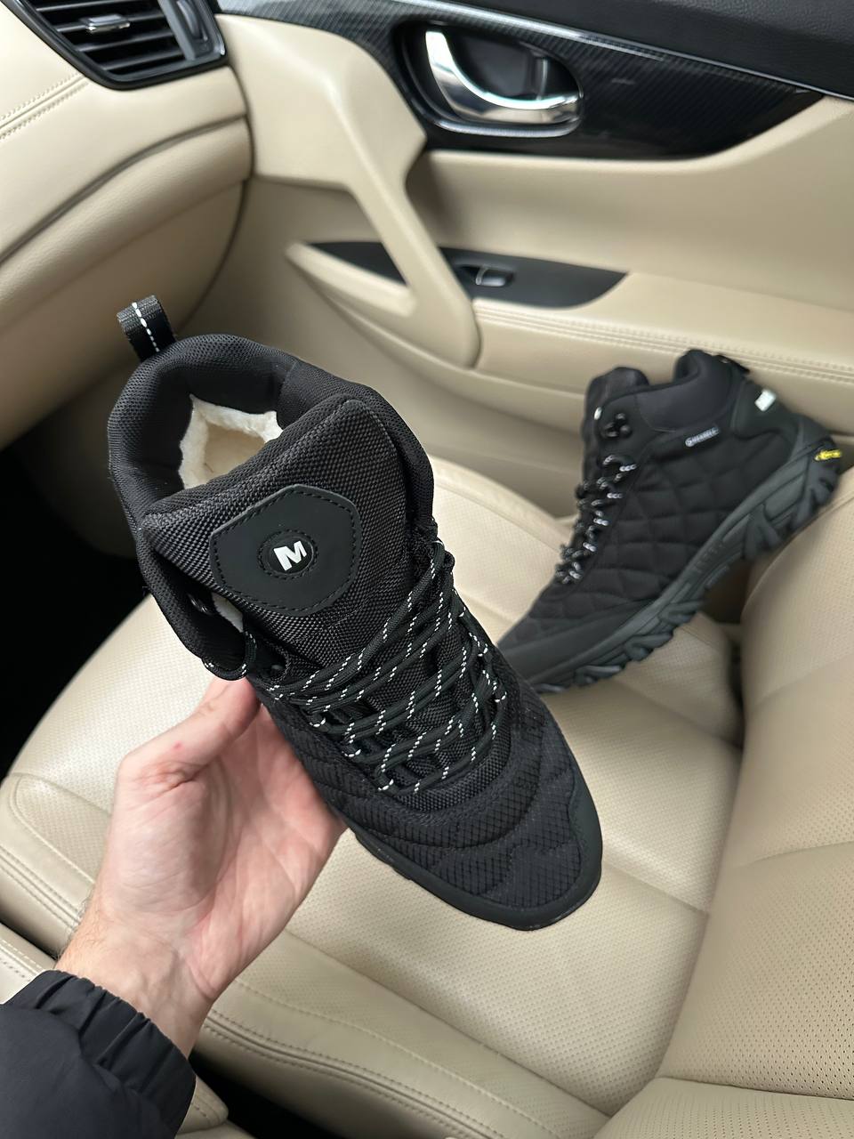 Merrell Ice Cup Moc II Black White Fur — це стильні черевики чорного та білого кольору з хутряною підкладкою, які забезпечують тепло, комфорт і надійне зчеплення на зимових поверхнях.