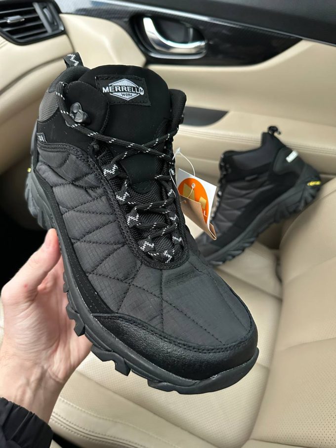 Merrell Ice Cup Moc II High Black White Fur — це високі черевики чорного та білого кольору з хутряною підкладкою, що забезпечують тепло, комфорт і надійне зчеплення на зимових поверхнях.