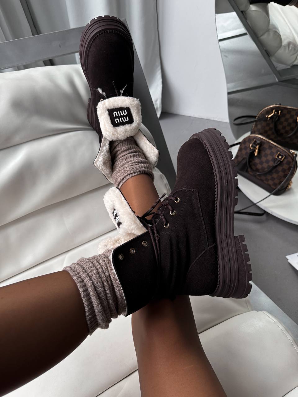 Miu Miu Boots Chocolate — це елегантні чоботи в шоколадному відтінку, виготовлені з високоякісної шкіри, що поєднують розкішний стиль і сучасний дизайн.