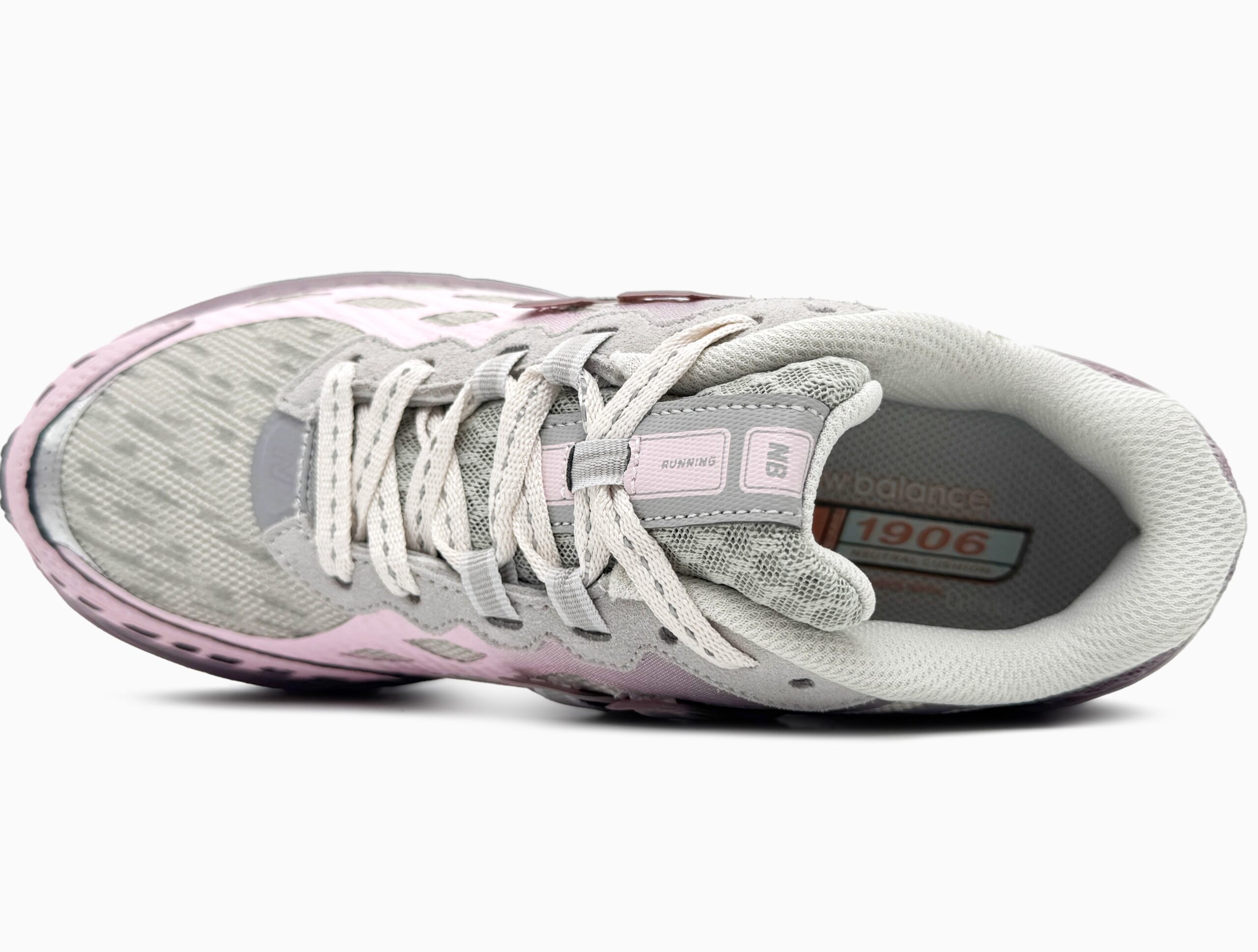 New Balance 1906R FantomFit Grey Pink — це стильні кросівки з динамічним силуетом у сірій палітрі з рожевими акцентами, оснащені технологією FantomFit для легкості, підтримки та комфорту.