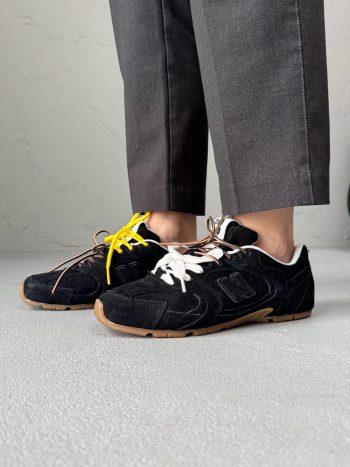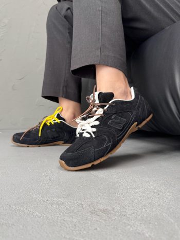 New Balance 530 x Miu Miu Black/Yellow — це стильна колаборація, що поєднує чорний та жовтий кольори з елегантним дизайном, створюючи модні та зручні кросівки для повсякденного носіння.