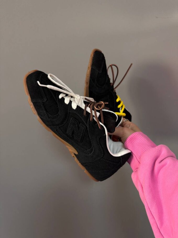 New Balance 530 x Miu Miu Black/Yellow — це стильна колаборація, що поєднує чорний та жовтий кольори з елегантним дизайном, створюючи модні та зручні кросівки для повсякденного носіння.
