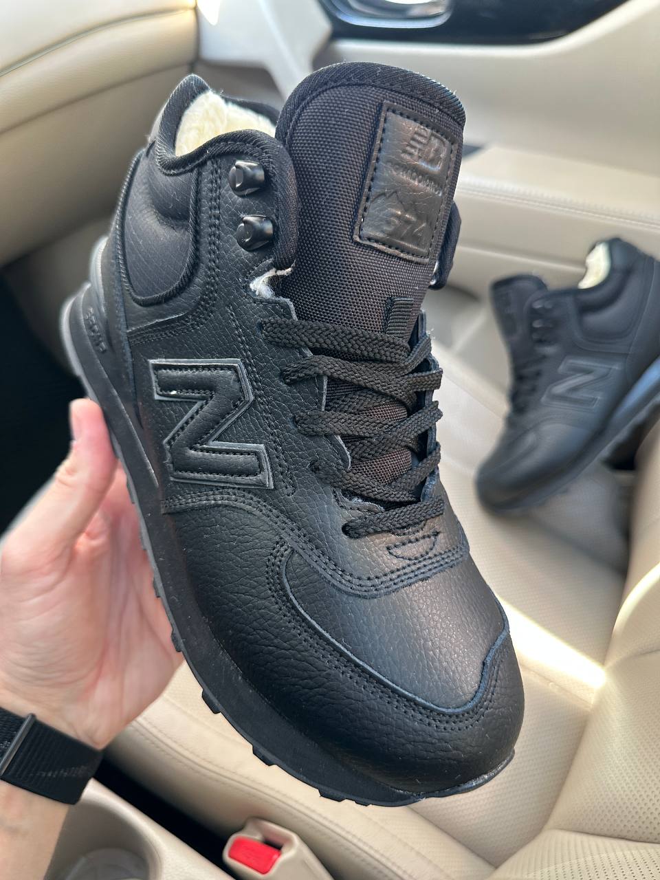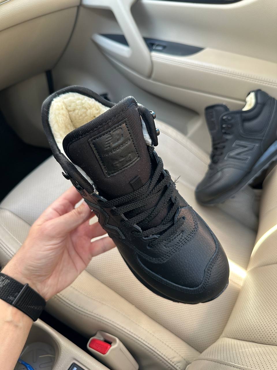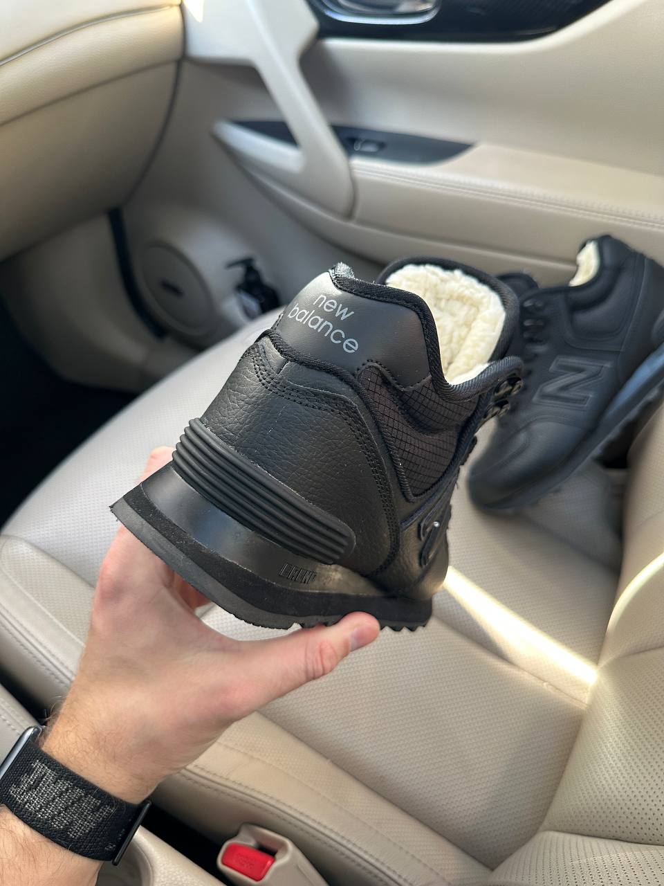 New Balance 574 Black Leather Fur — це стильні кросівки з чорної шкіри з утепленим хутром усередині, що поєднують тепло, комфорт і класичний силует 574.