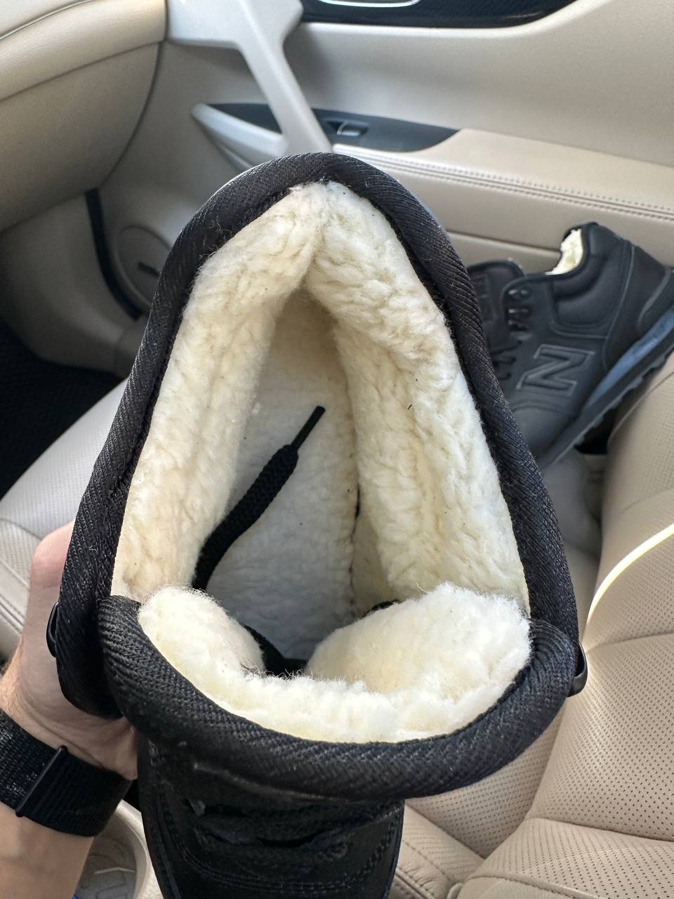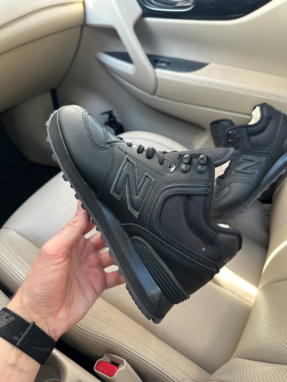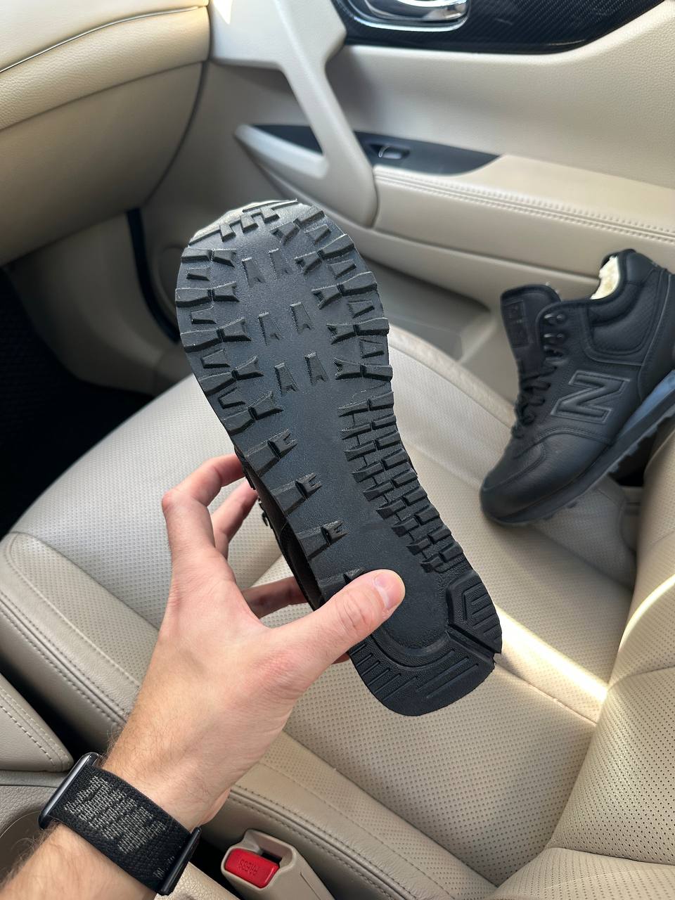 New Balance 574 Black Leather Fur — це стильні кросівки з чорної шкіри з утепленим хутром усередині, що поєднують тепло, комфорт і класичний силует 574.