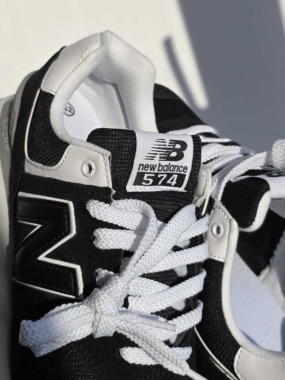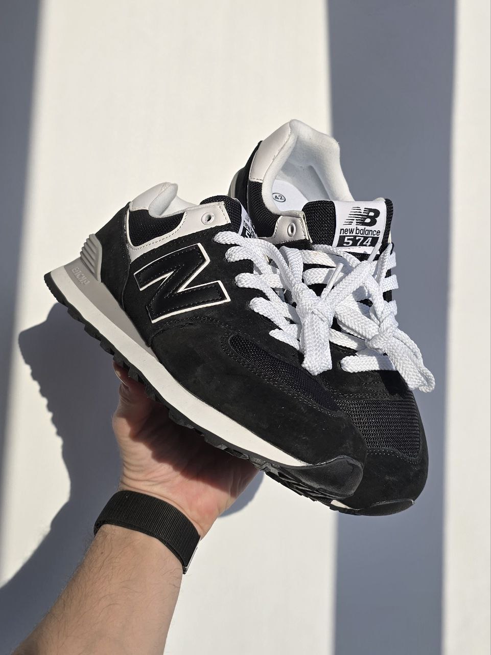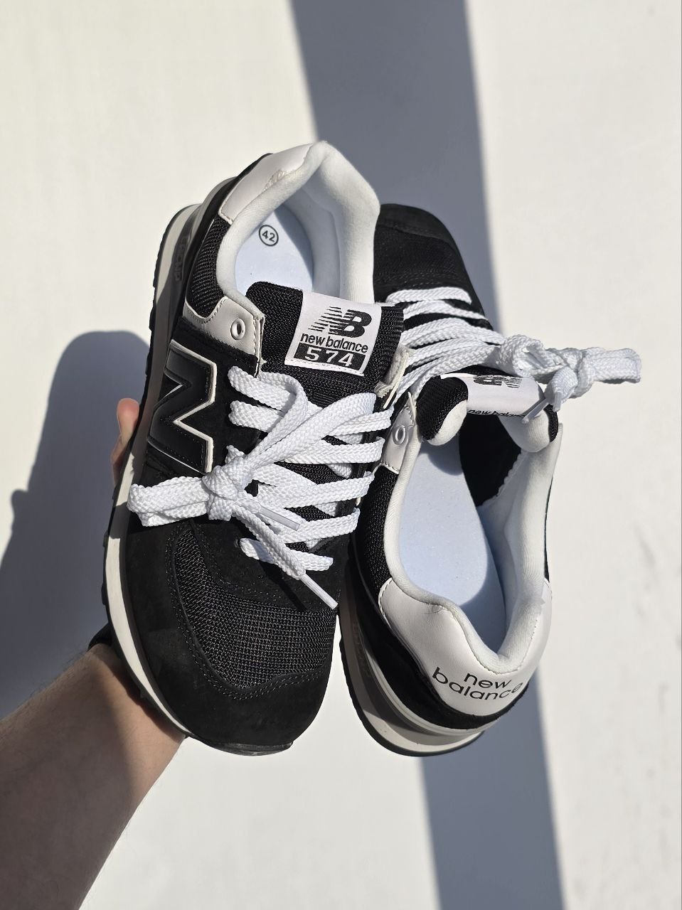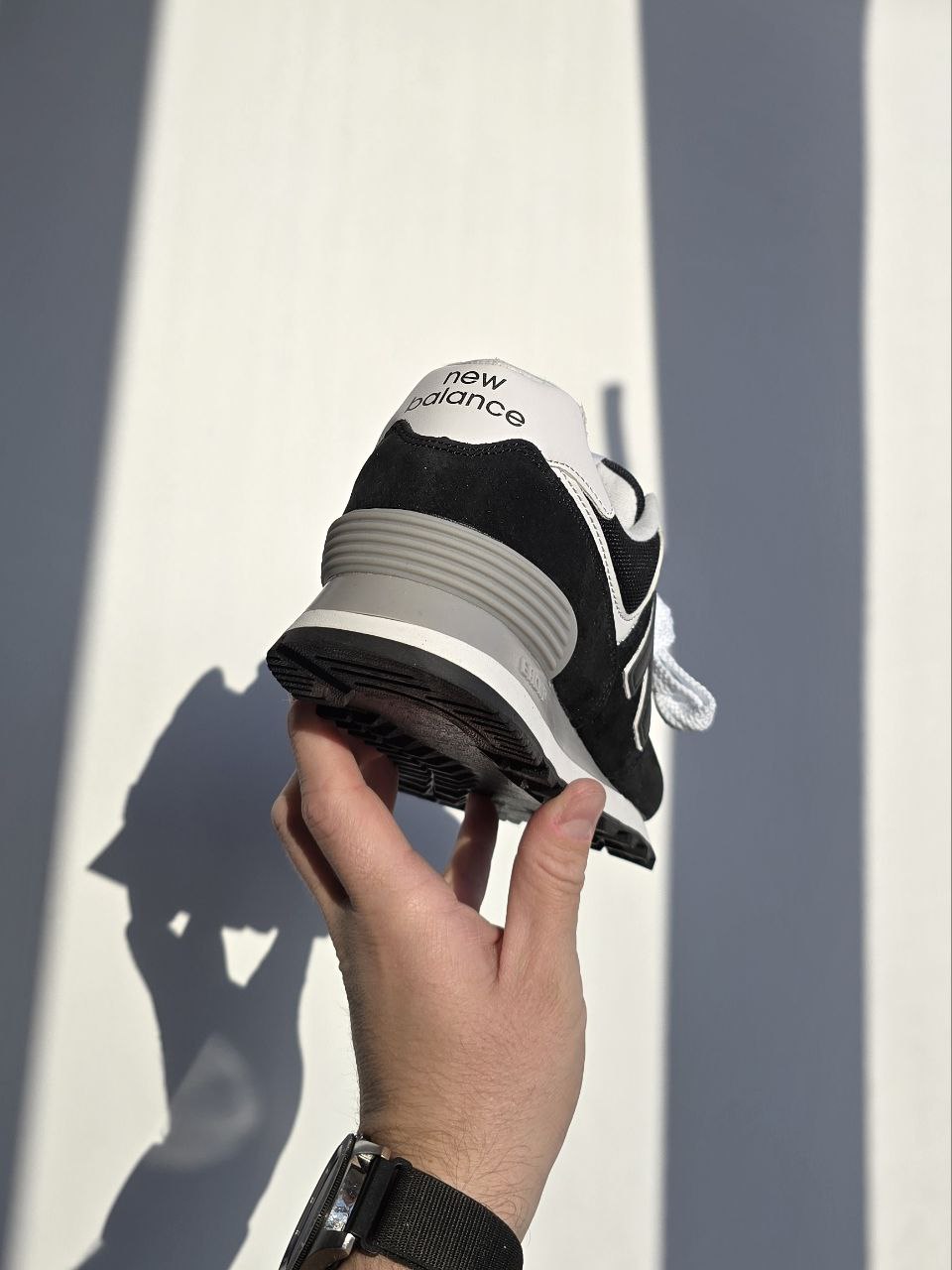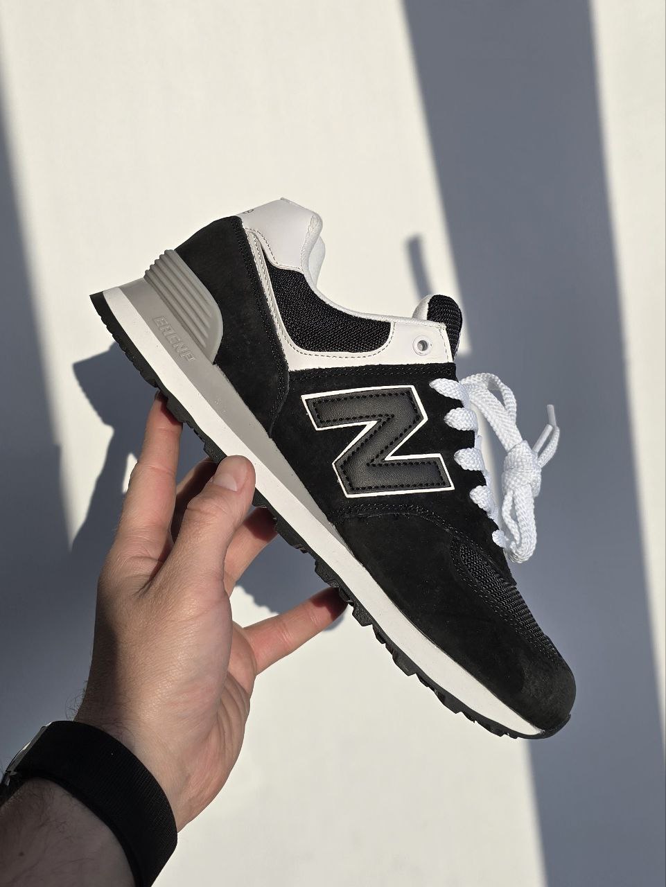 New Balance 574 Black / White — це універсальні кросівки з класичним силуетом, поєднанням чорного та білого кольорів, замшево-текстильною верхньою частиною та комфортною амортизацією для щоденного носіння.