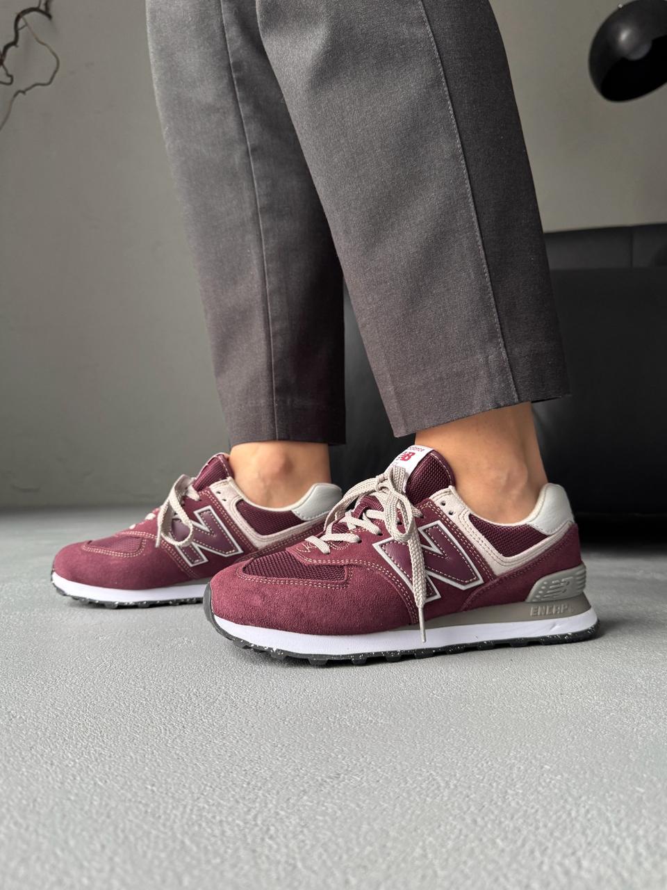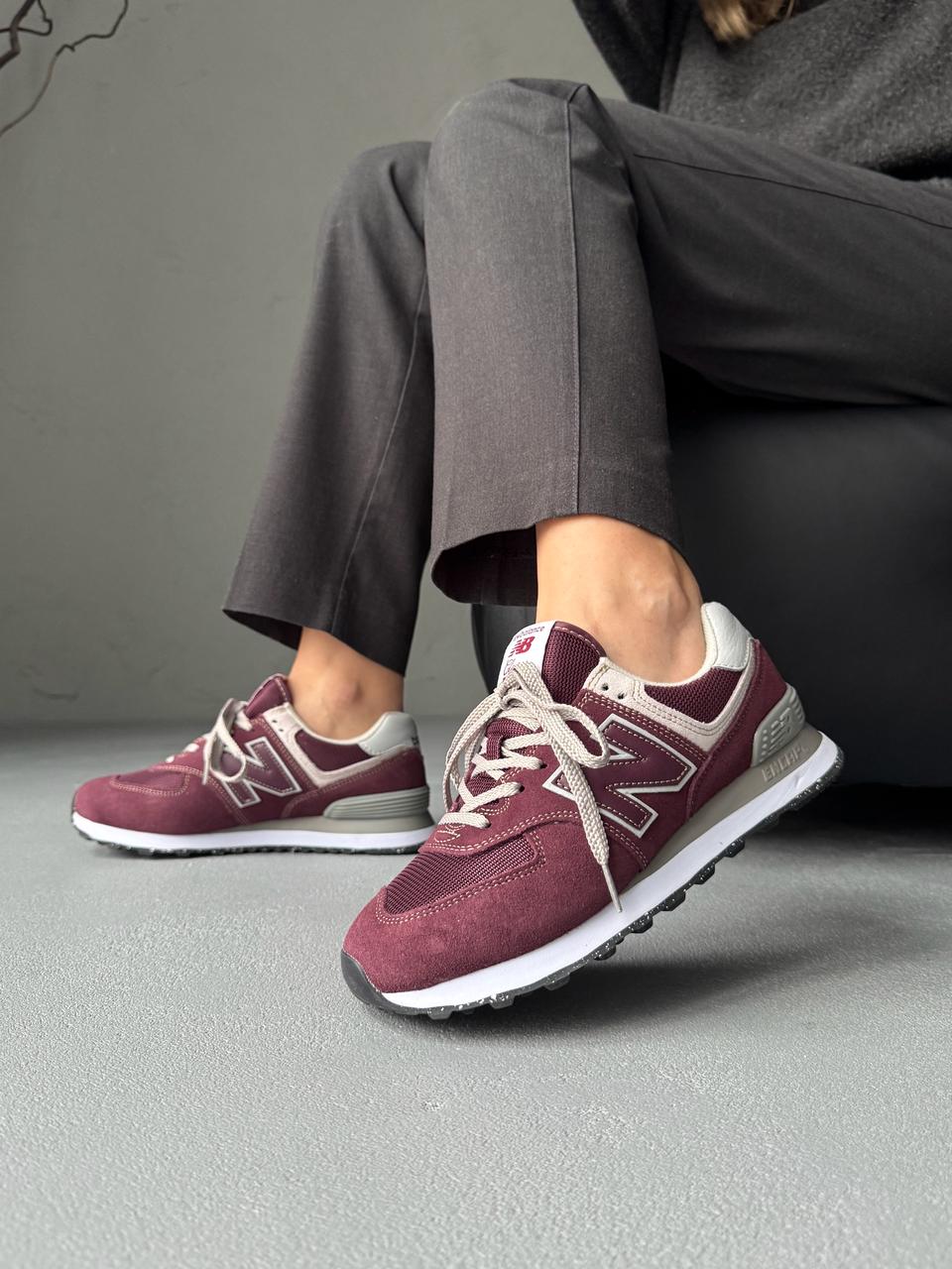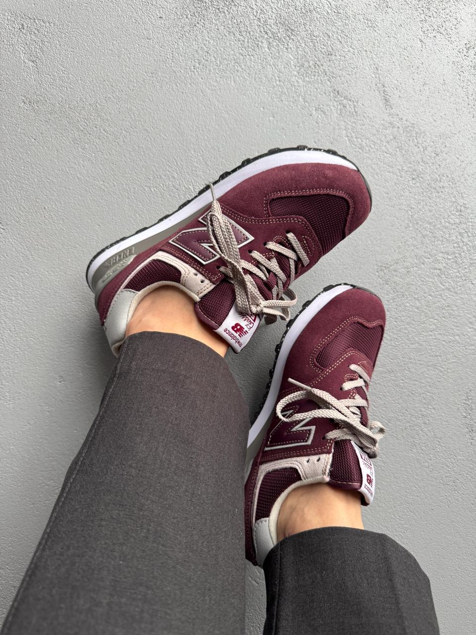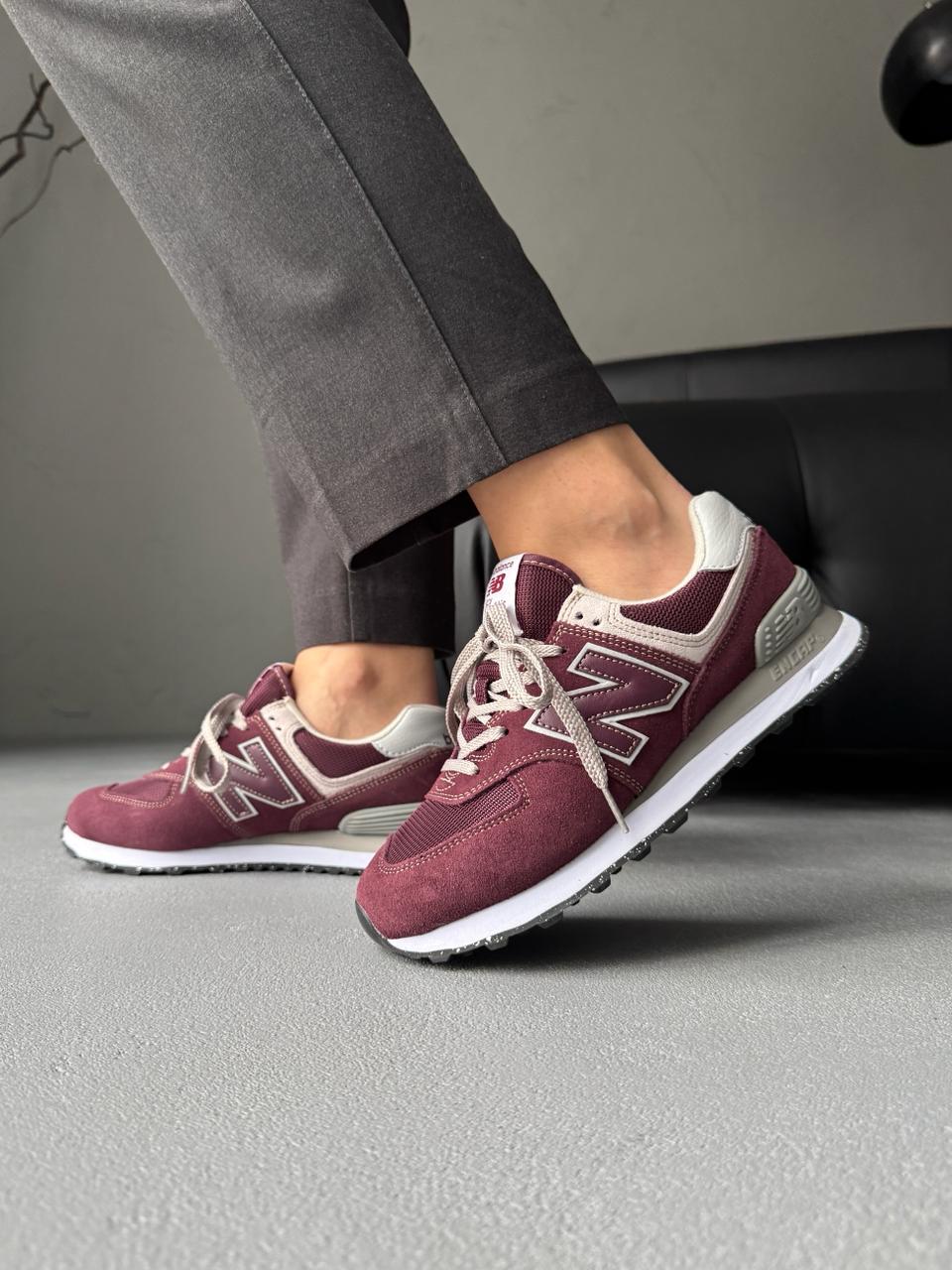 New Balance 574 Burgundy — це поєднання класичного силуету, насиченого бордового відтінку та щоденного комфорту. Глибока кольорова гама додає моделі виразності та стриманої елегантності, а фірмовий стиль New Balance підкреслює її позачасовий характер і впізнаваність.