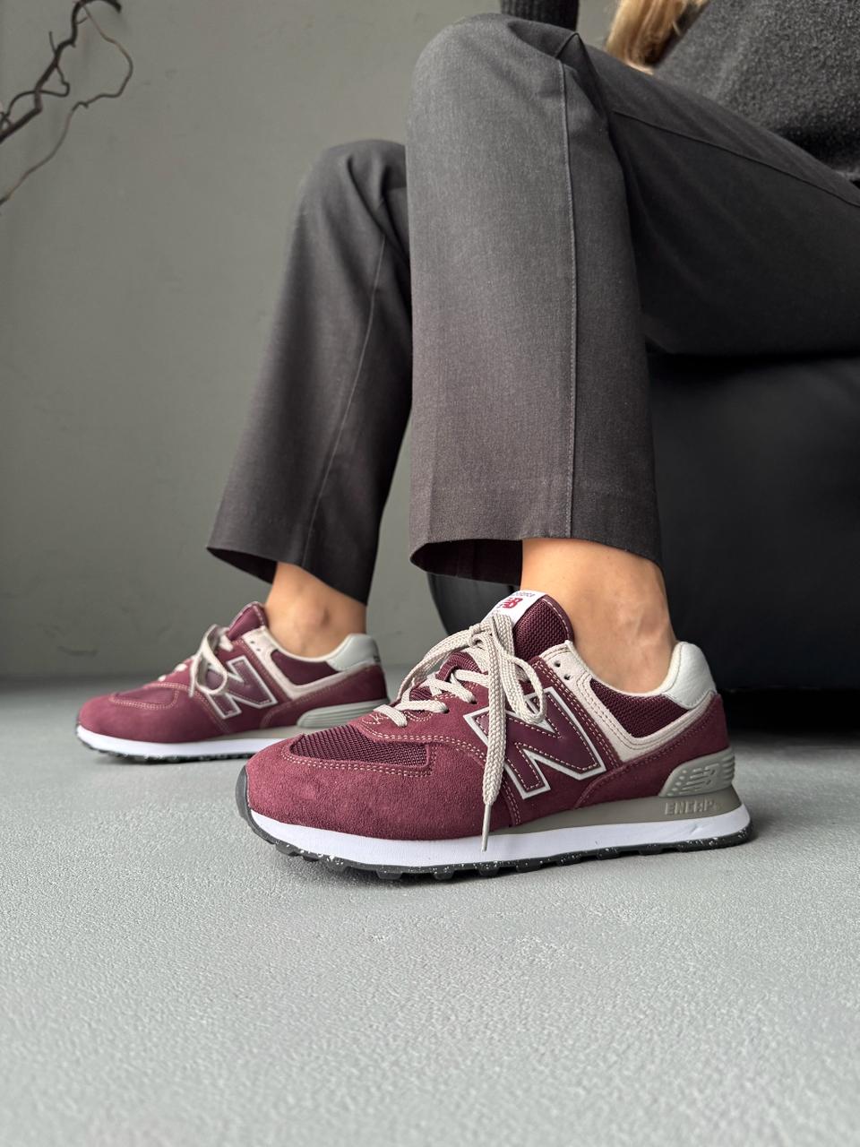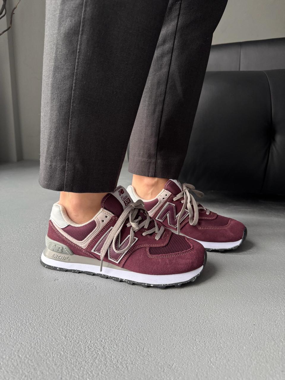 New Balance 574 Burgundy — це класичні кросівки із характерним бордовим кольором, відомі своїм універсальним ретро-стилем, комфортом і надійністю для щоденного використання.