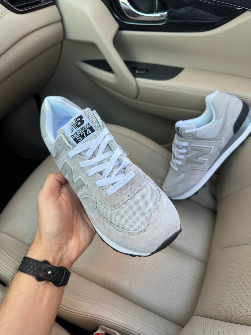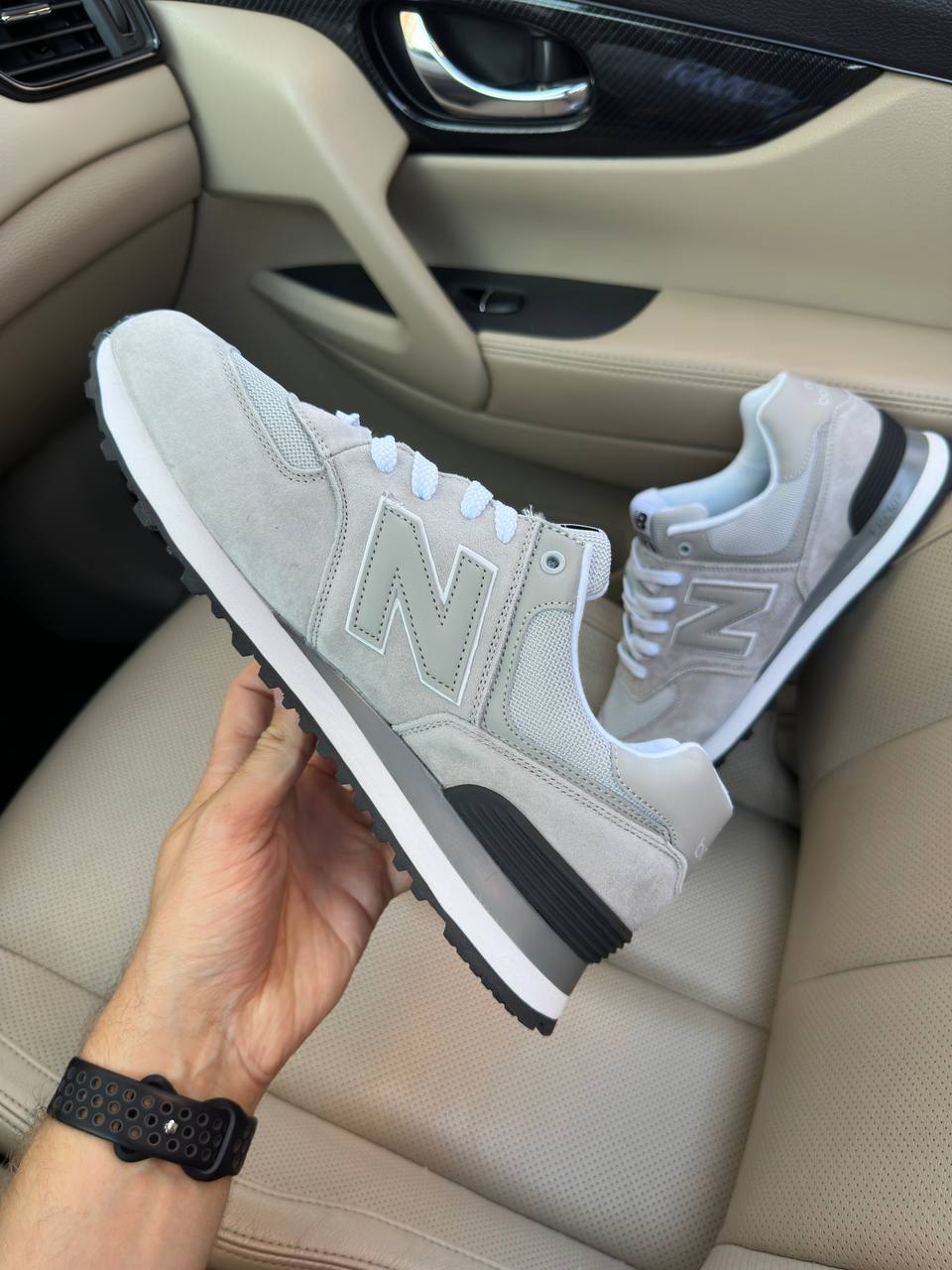 New Balance 574 Light Grey Black — це класичні кросівки у світло-сірій палітрі з чорними акцентами, що поєднують ретро-дизайн і комфорт для щоденного носіння.