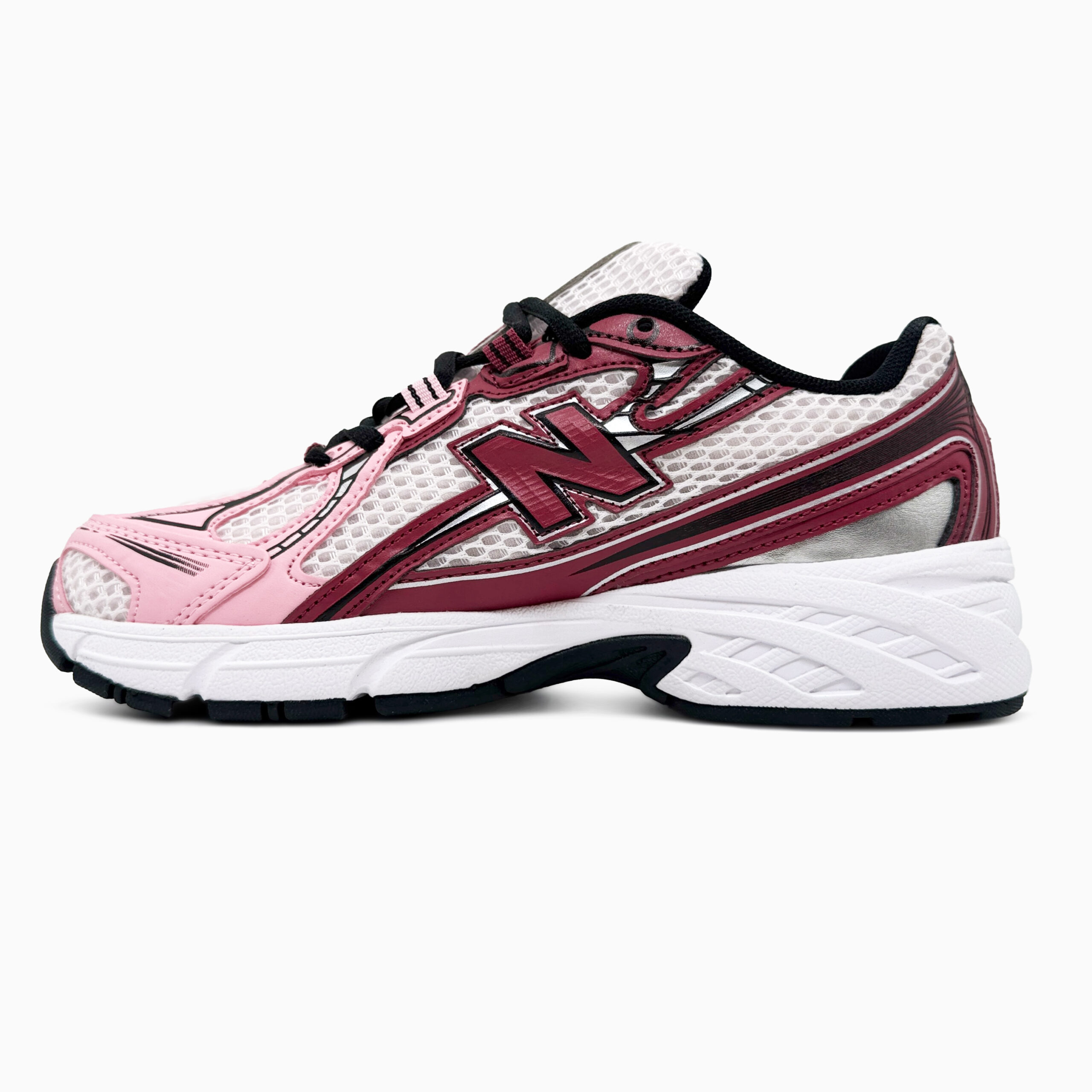 New Balance 740 Washed Burgundy Pink Taffy — це стильні кросівки з ретро-силуетом у поєднанні насиченого бордового та ніжно-рожевого відтінків, що поєднують комфорт і яскравий повсякденний дизайн.