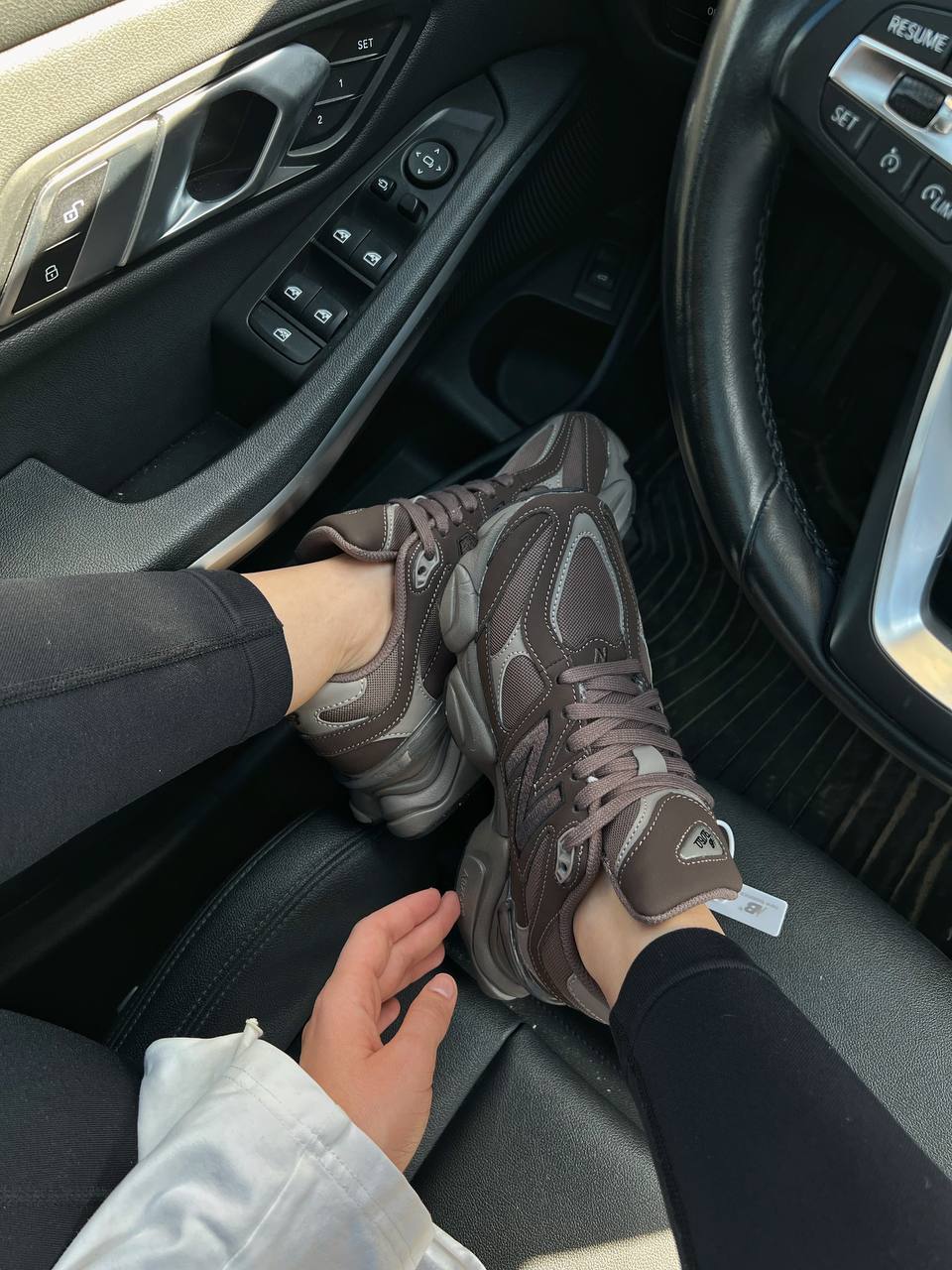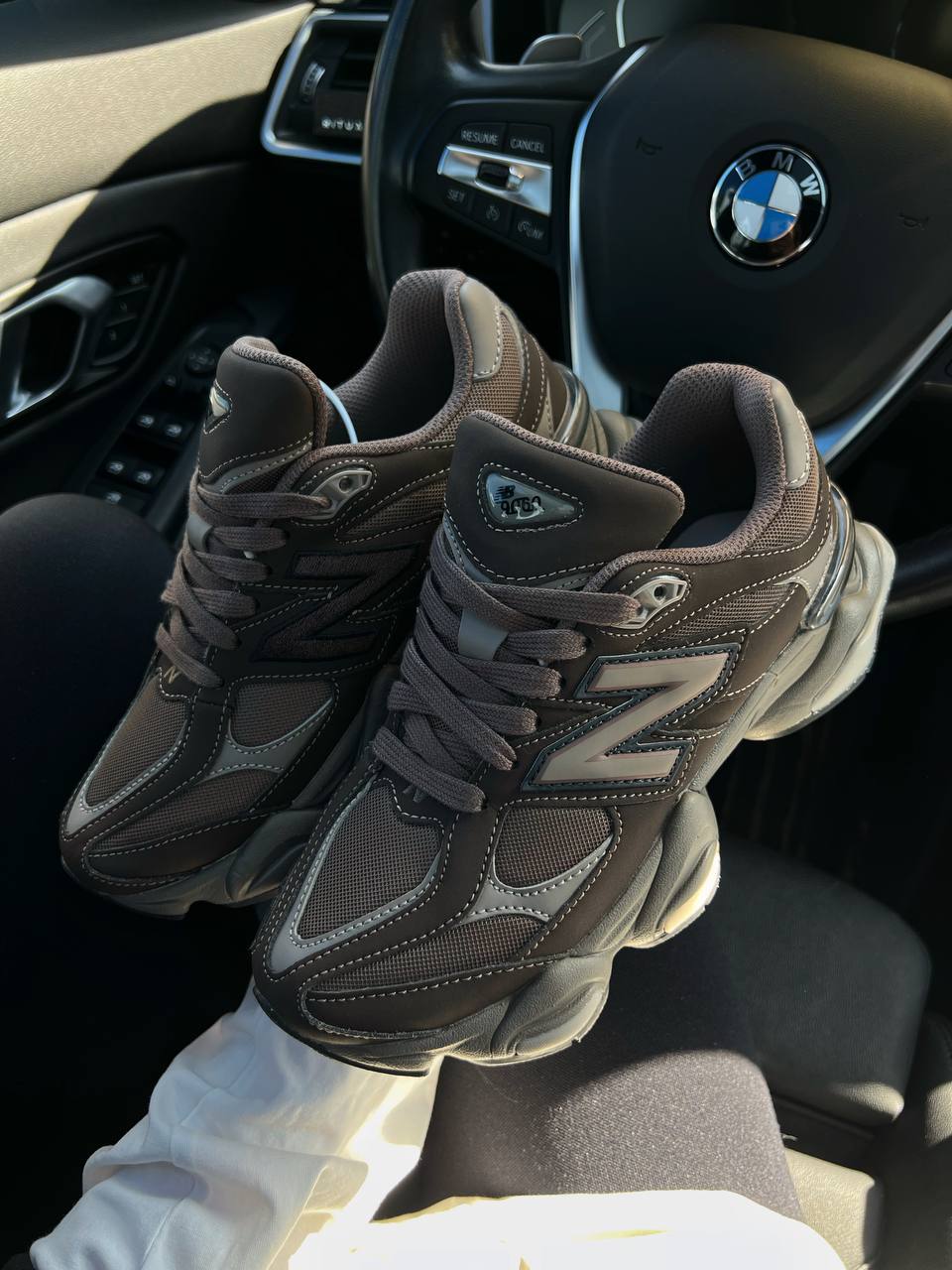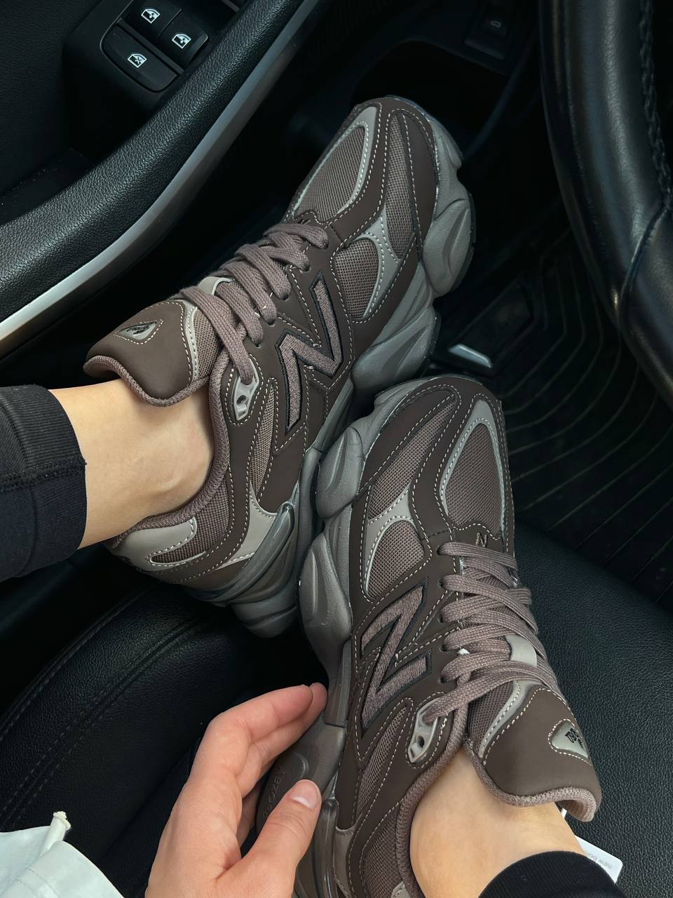 New Balance 9060 — це універсальні кросівки у темно-коричневій гамі з поєднанням замші, шкіри й текстилю, що забезпечують комфорт, стриманий стиль і масивний сучасний силует для щоденного носіння.
