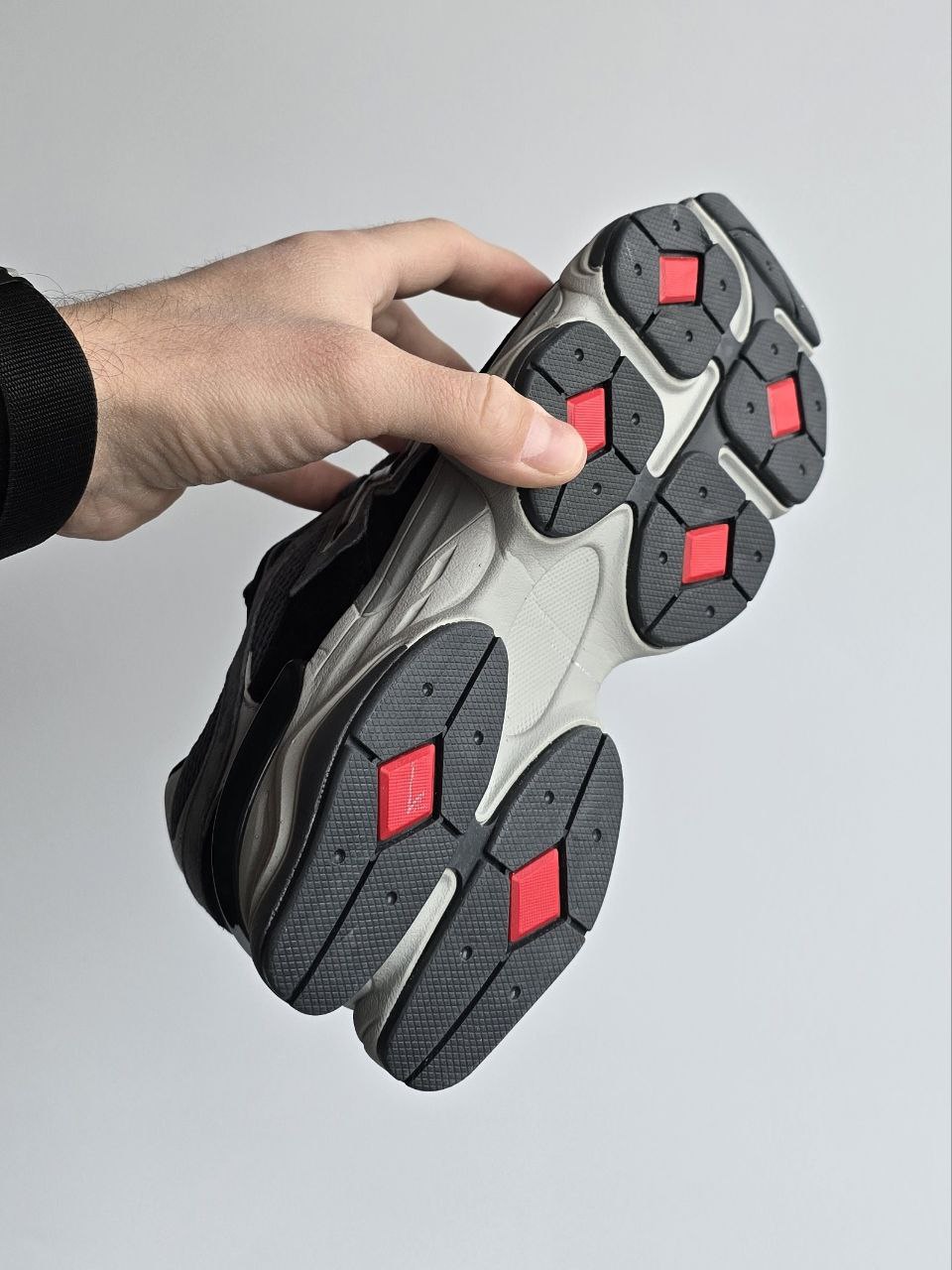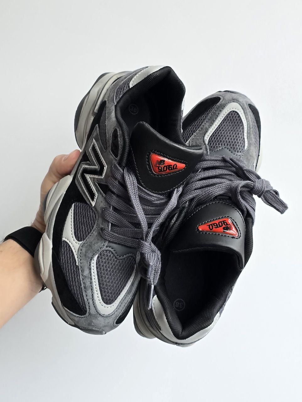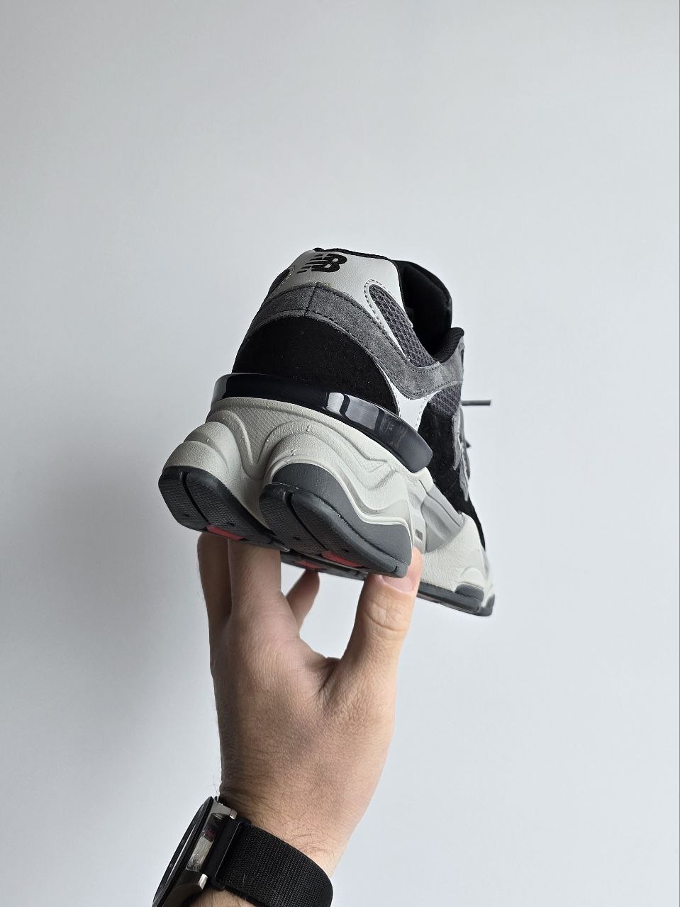 New Balance 9060 Dark Grey Black — стильні кросівки з чорним і темно-сірим верхом з комбінації замші та дихаючої сітки, масивною підошвою з технологіями ABZORB та SBS для комфорту й сучасним футуристичним дизайном, що поєднує спортивну спадщину New Balance із Y2K-естетикою.