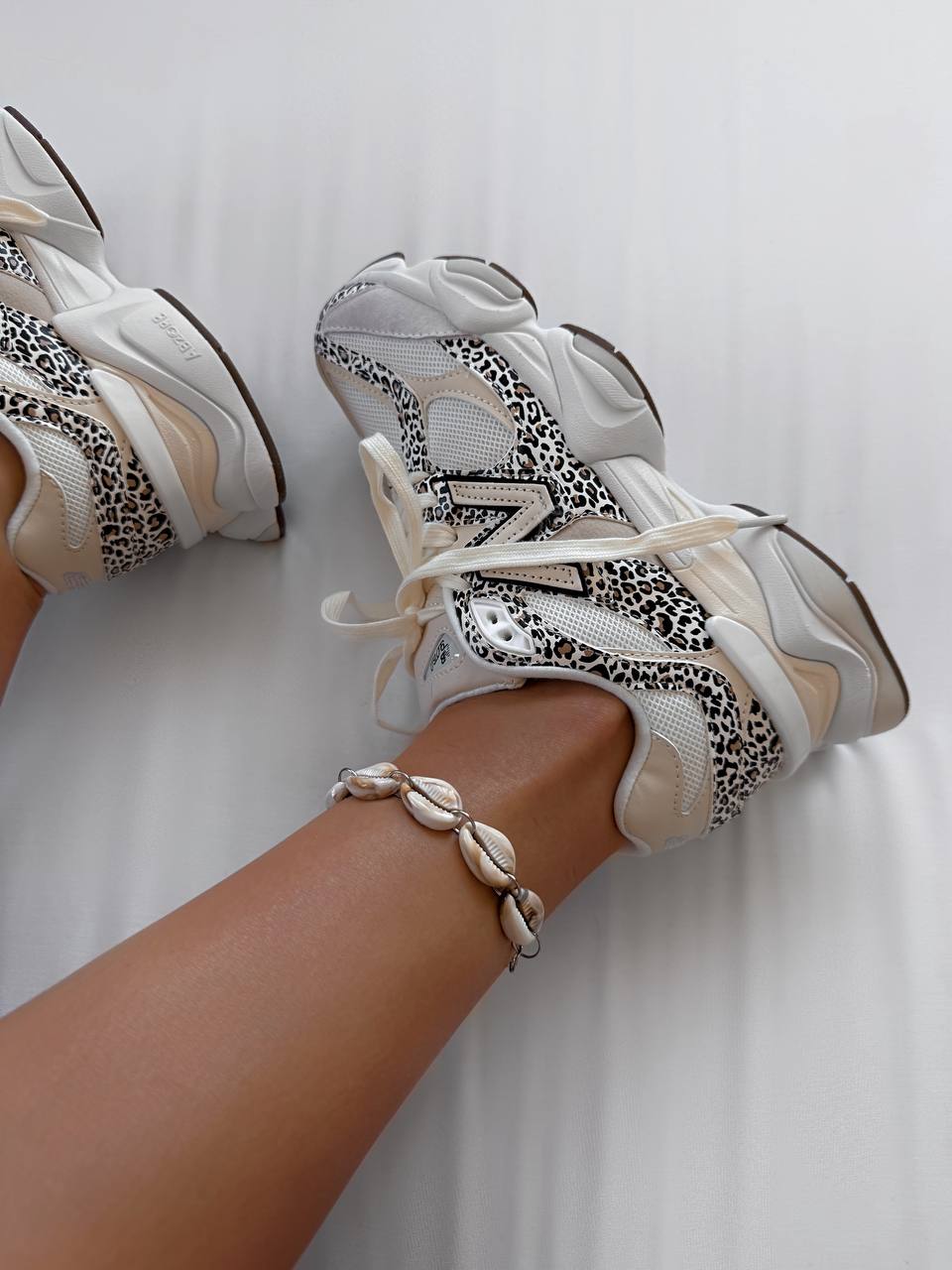 New Balance 9060 Leopard Print — це поєднання масивного сучасного силуету, трендового анімалістичного принта та щоденного комфорту. Леопардовий візерунок додає моделі сміливого характеру й виразності, створюючи яскравий акцент в образі, а фірмовий дизайн 9060 підкреслює її об’ємність і впізнаваний стиль.