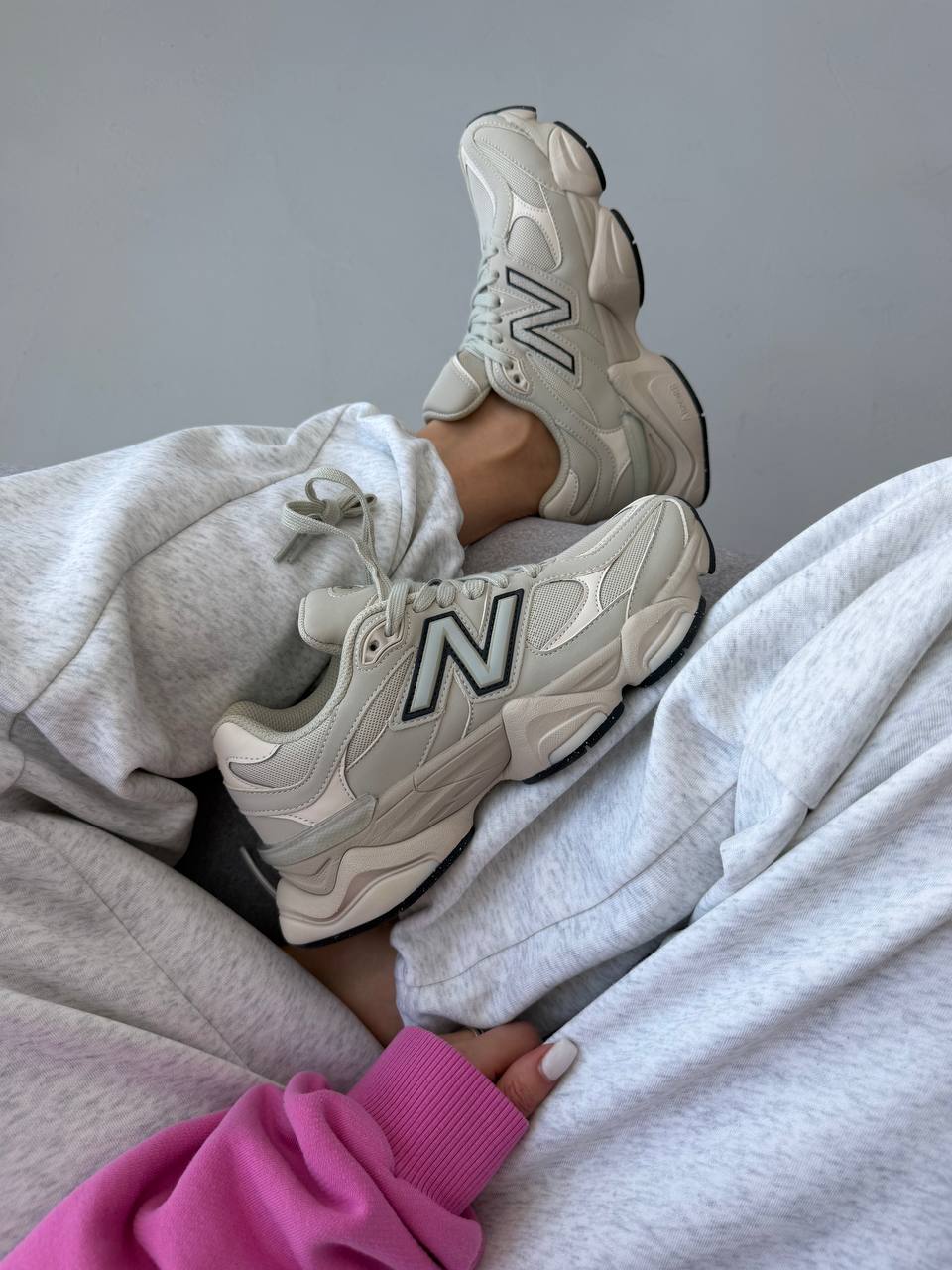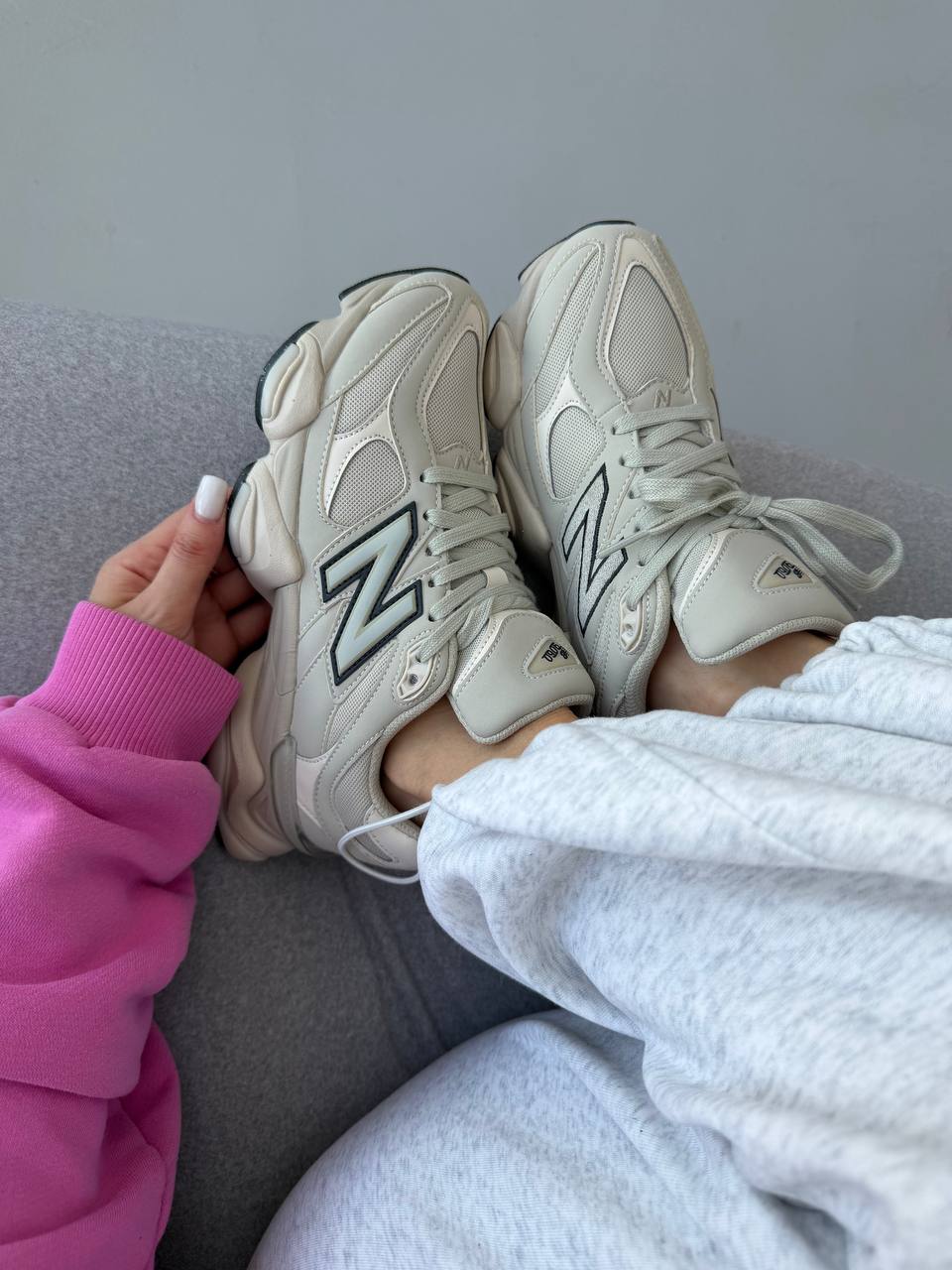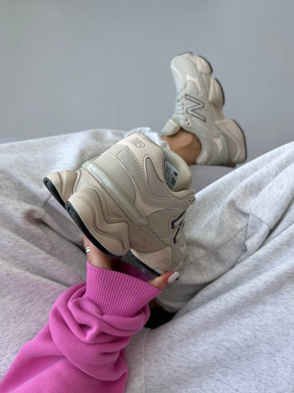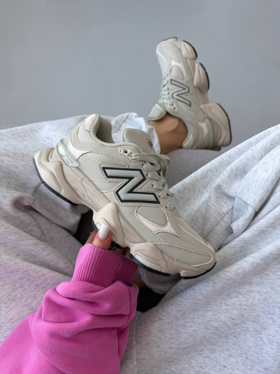 New Balance 9060 Light Cream Leather — це сучасні кросівки з об’ємним силуетом у світлому кремовому шкіряному виконанні, що поєднують елегантний мінімалізм і комфорт для повсякденного стилю.