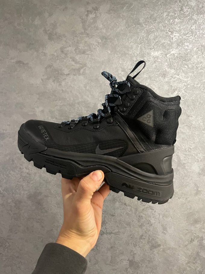 Nike ACG Zoom Gaiadome GORE-TEX Black — це міцні та водонепроникні черевики для активного відпочинку, оснащені технологією GORE-TEX та амортизацією Zoom для комфорту і захисту в складних умовах.