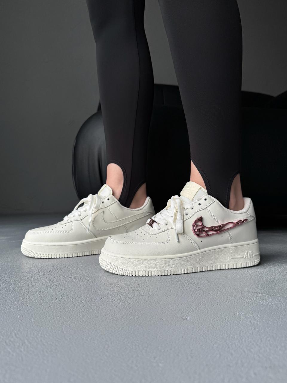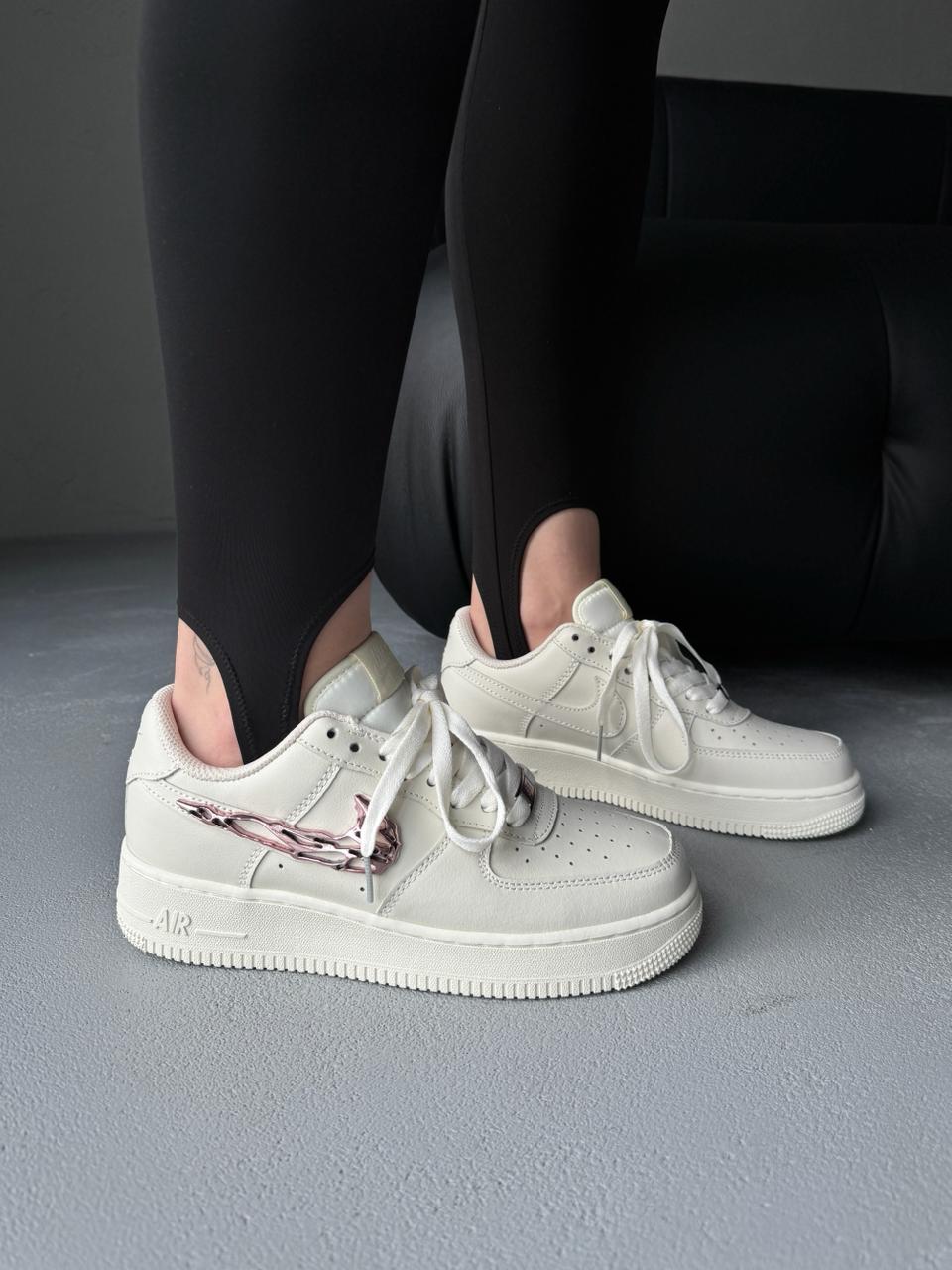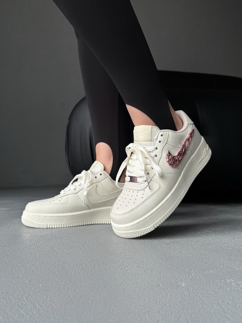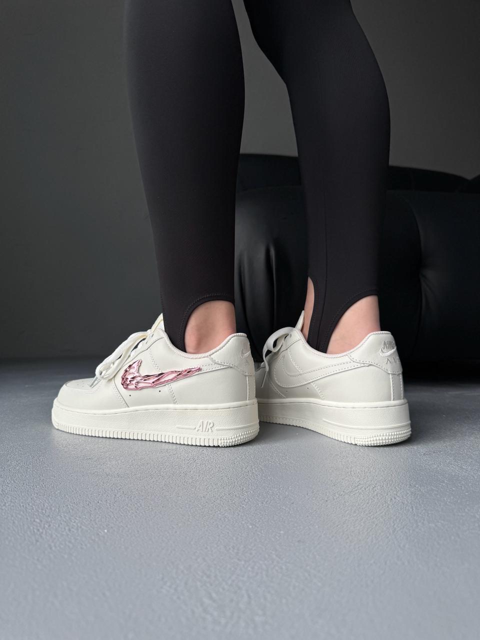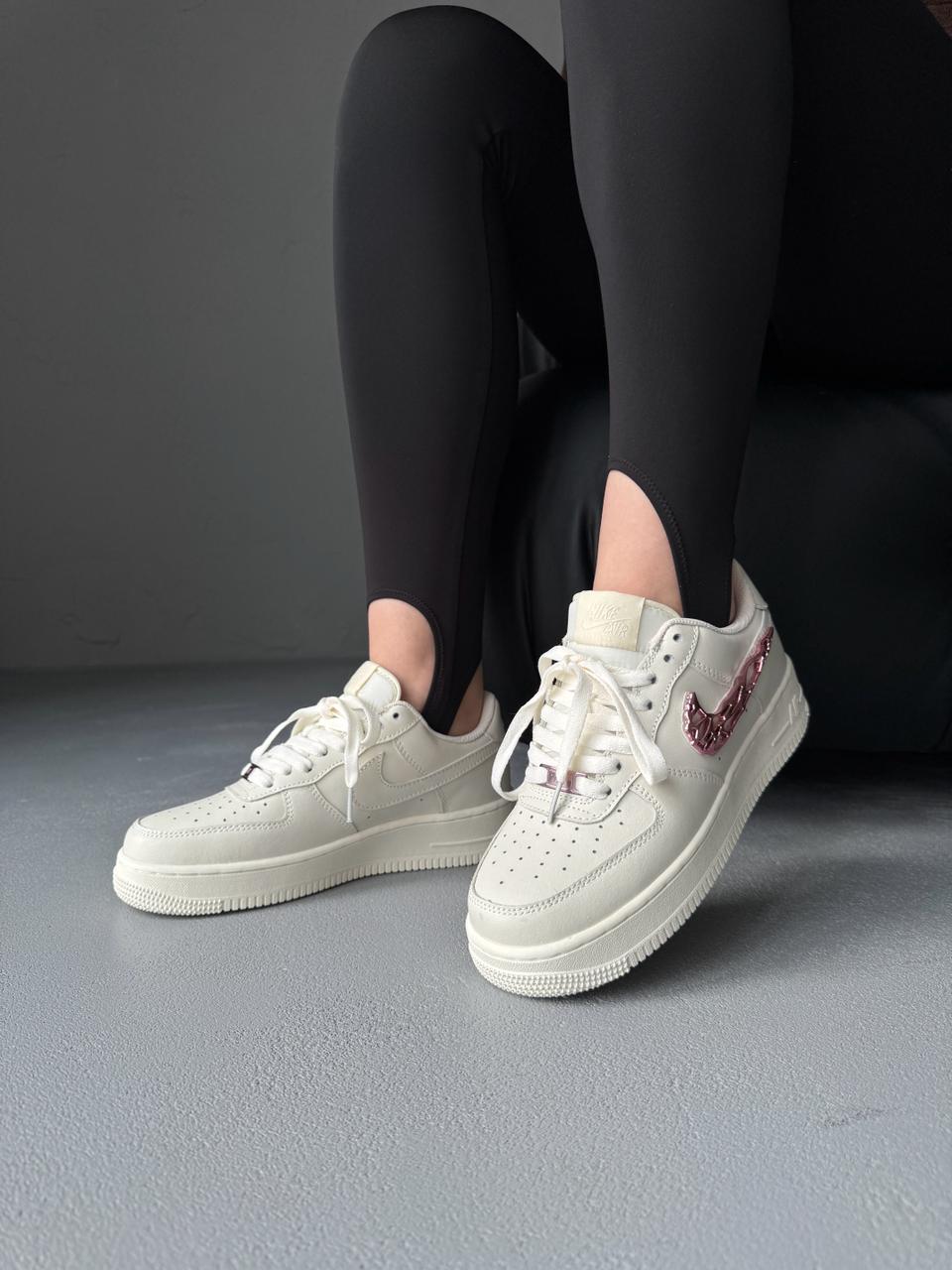 Nike Air Force 1 ’07 LX Molten Metal Swoosh Rose Gold — це поєднання легендарного баскетбольного силуету, преміальних металізованих деталей і щоденного комфорту. Класична біла база отримує виразний акцент завдяки Swoosh у відтінку Rose Gold, що створює розкішний, сучасний і водночас стриманий образ із характером.