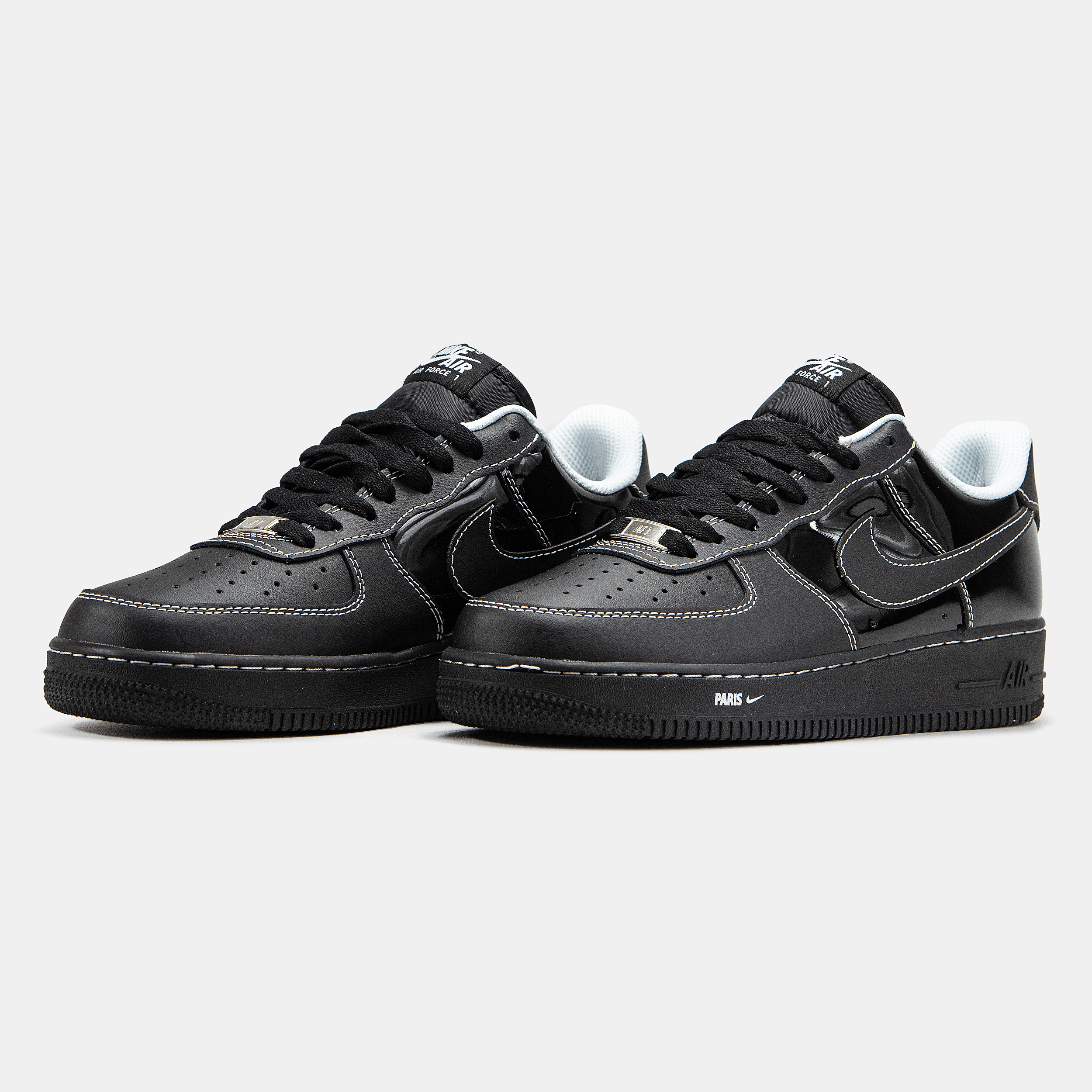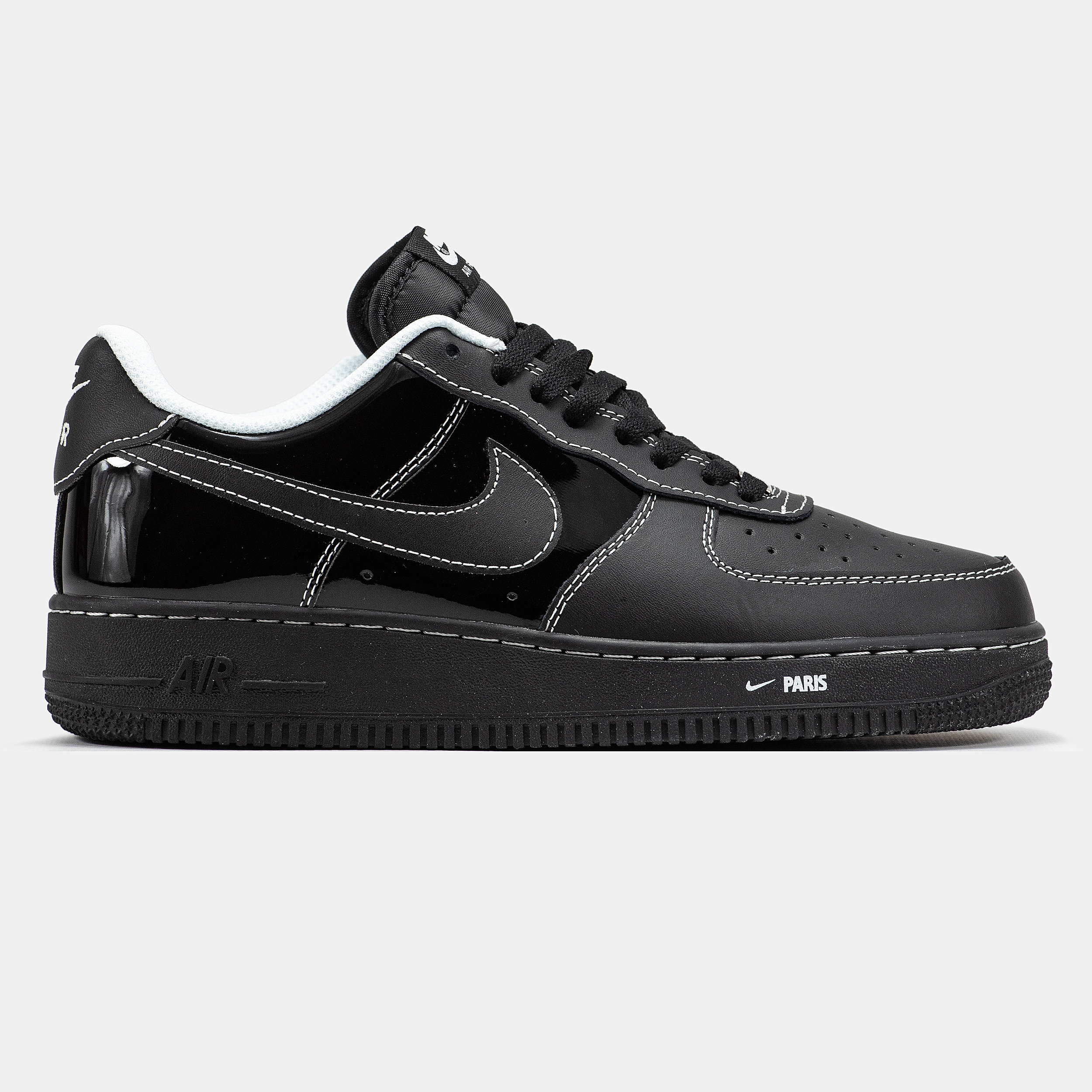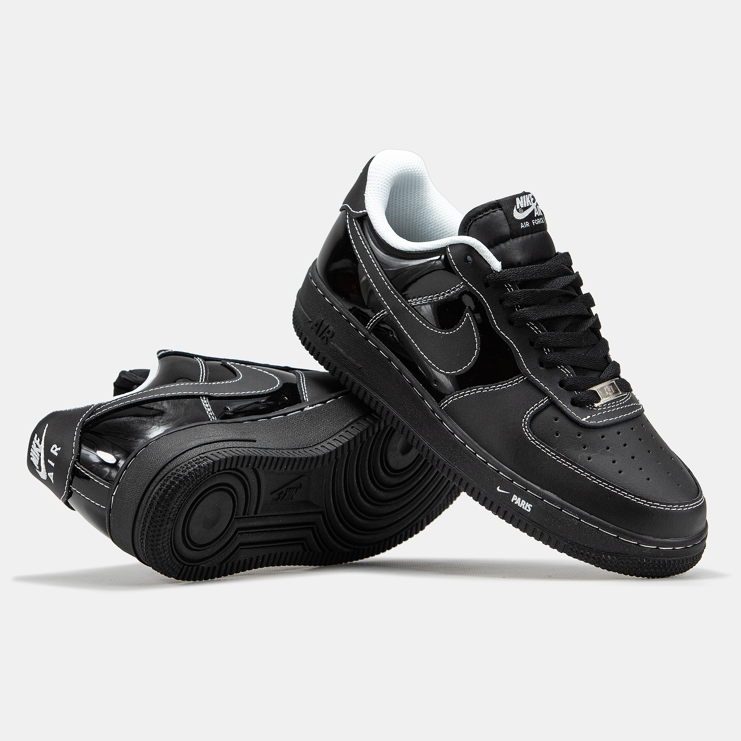 Nike Air Force 1 Paris Black — це поєднання культового баскетбольного силуету, елегантної чорної палітри та щоденного комфорту. Глибокий чорний відтінок створює стриманий, витриманий образ, який виглядає стильно та універсально, а «Paris»-деталі додають моделі особливого характеру й легкої преміальності.