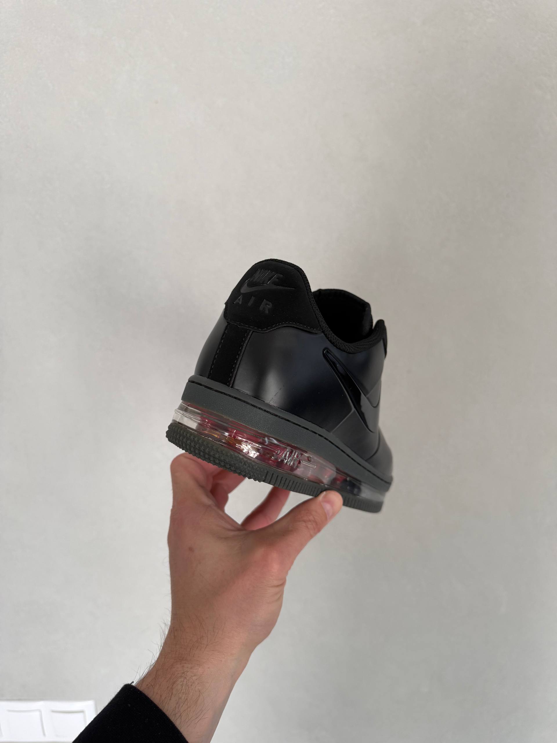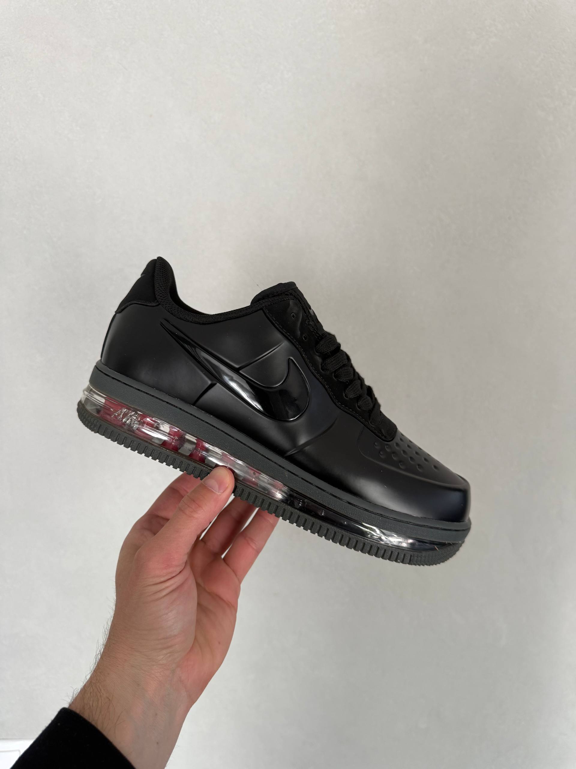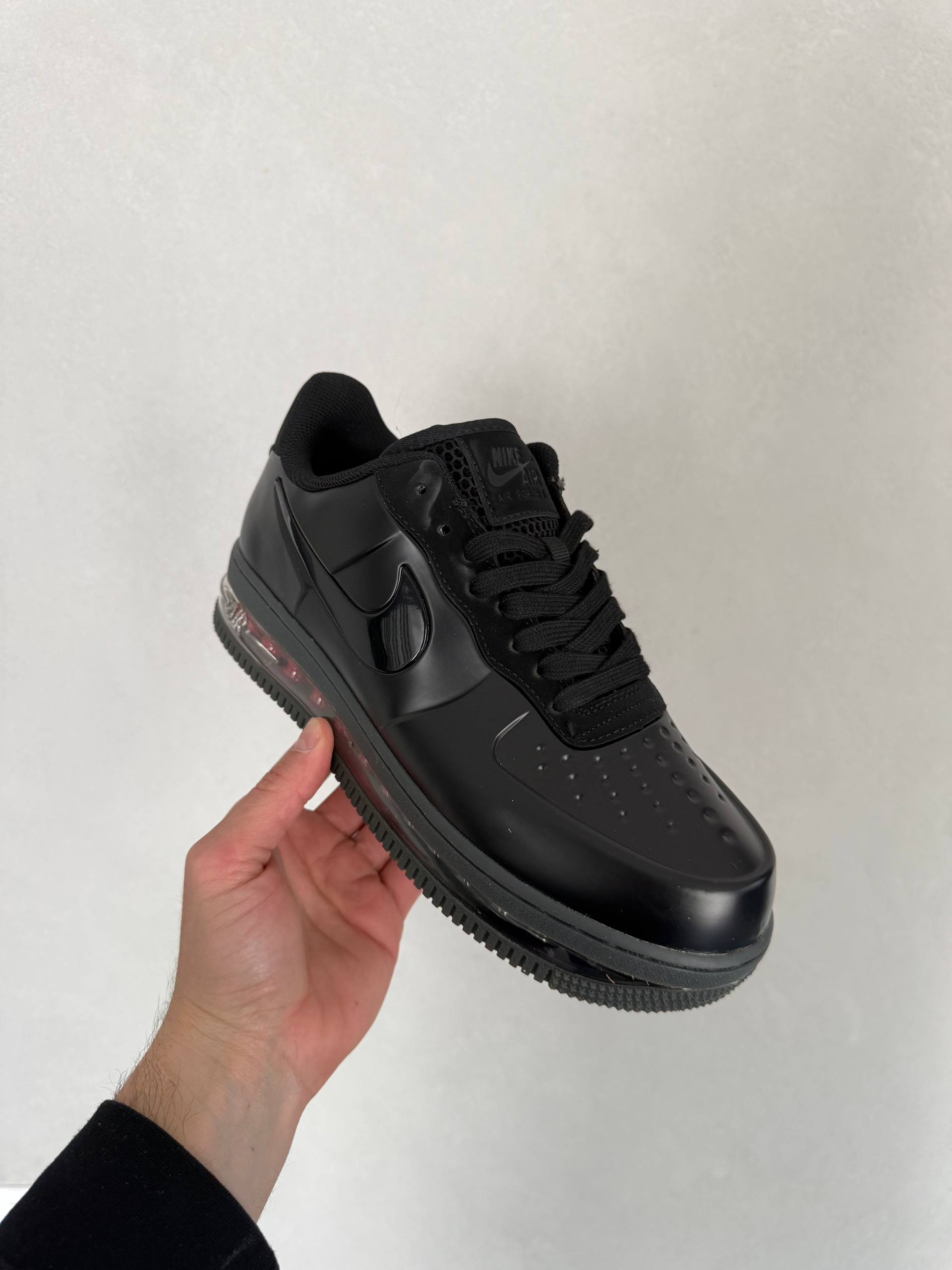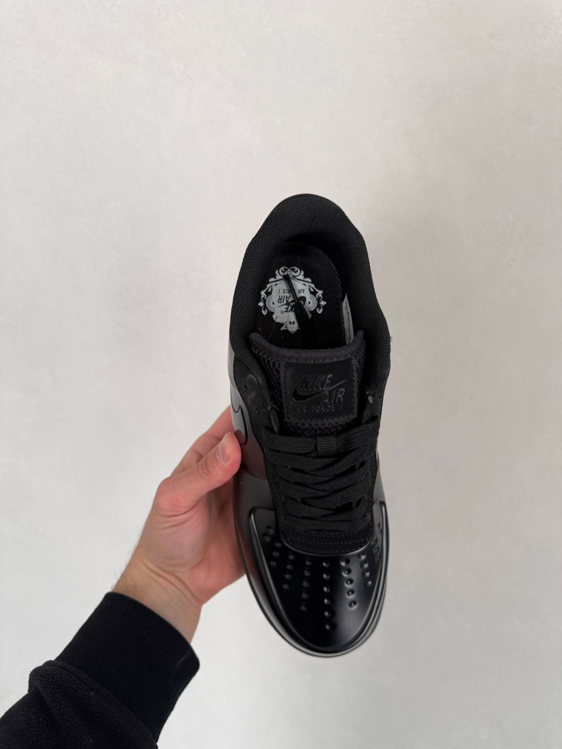 Nike Air Force 1 Posite Max QS Triple Black — це поєднання футуристичного силуету, повністю чорної палітри та щоденного комфорту. Глибокий triple black створює монолітний, виразний образ, який виглядає стильно та агресивно, а глянцеві елементи Posite додають моделі технологічного характеру й сучасної естетики.