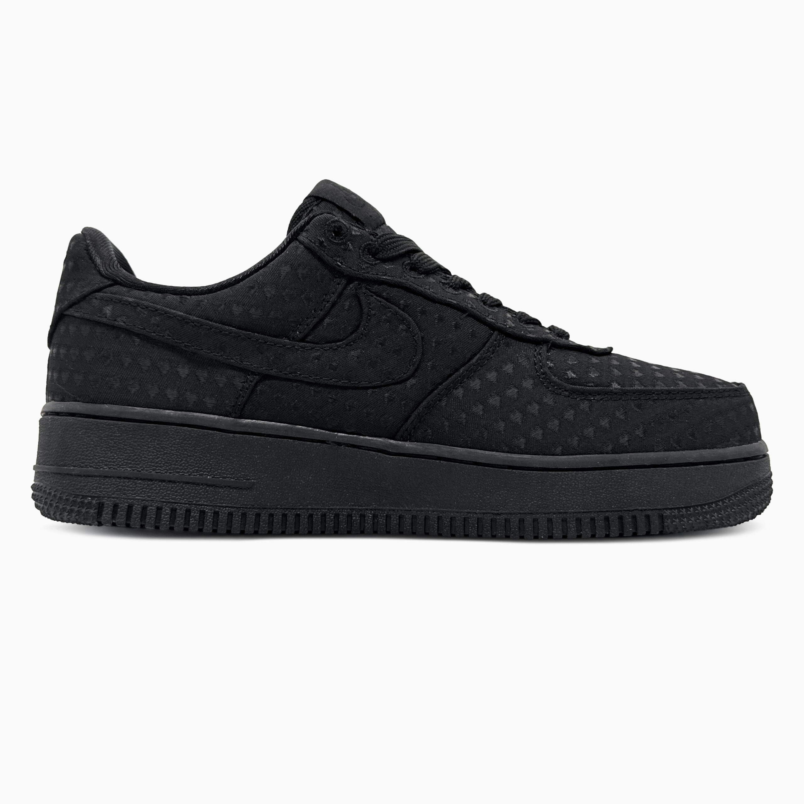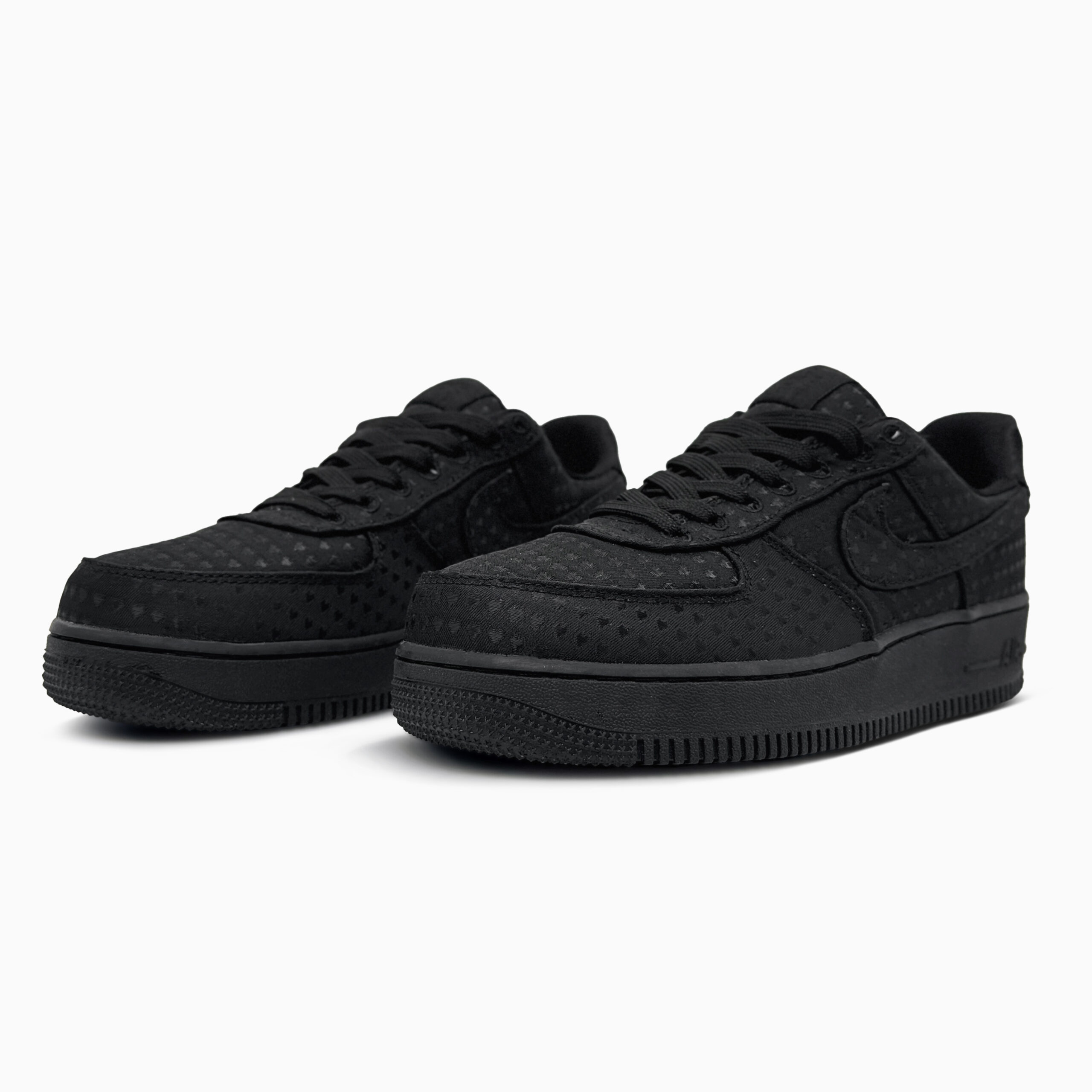 Nike Air Force 1 SE Valentines Day Black — це стильні чорні кросівки з ледь помітним тисненням у вигляді сердечок і декоративним підвіском, що поєднують класичний комфорт Air із стриманим романтичним вайбом.