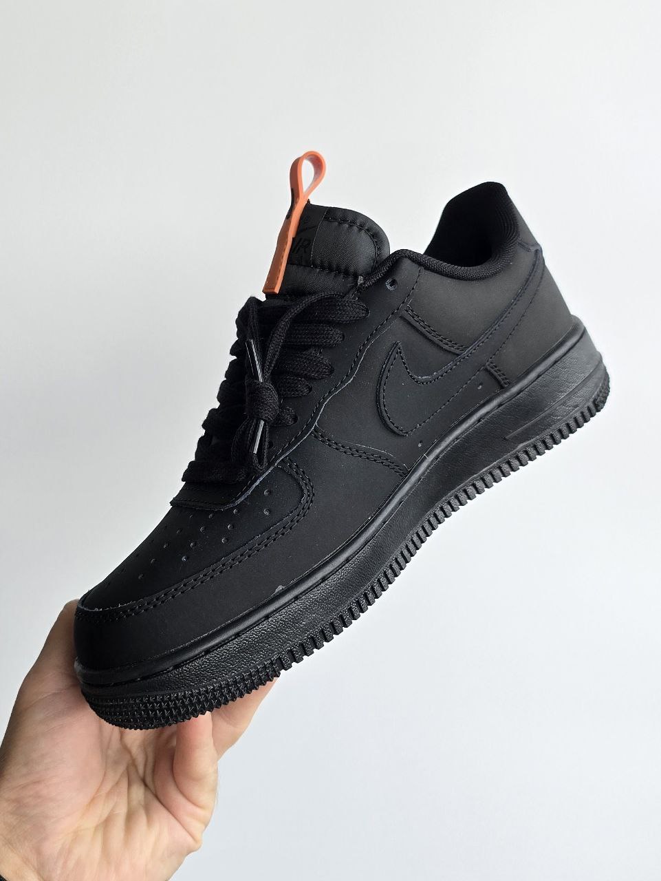 Nike Air Force Fur Black Orange — це утеплені кросівки в чорному кольорі з яскравими помаранчевими акцентами та м’яким хутром для комфортного носіння в холодну погоду.