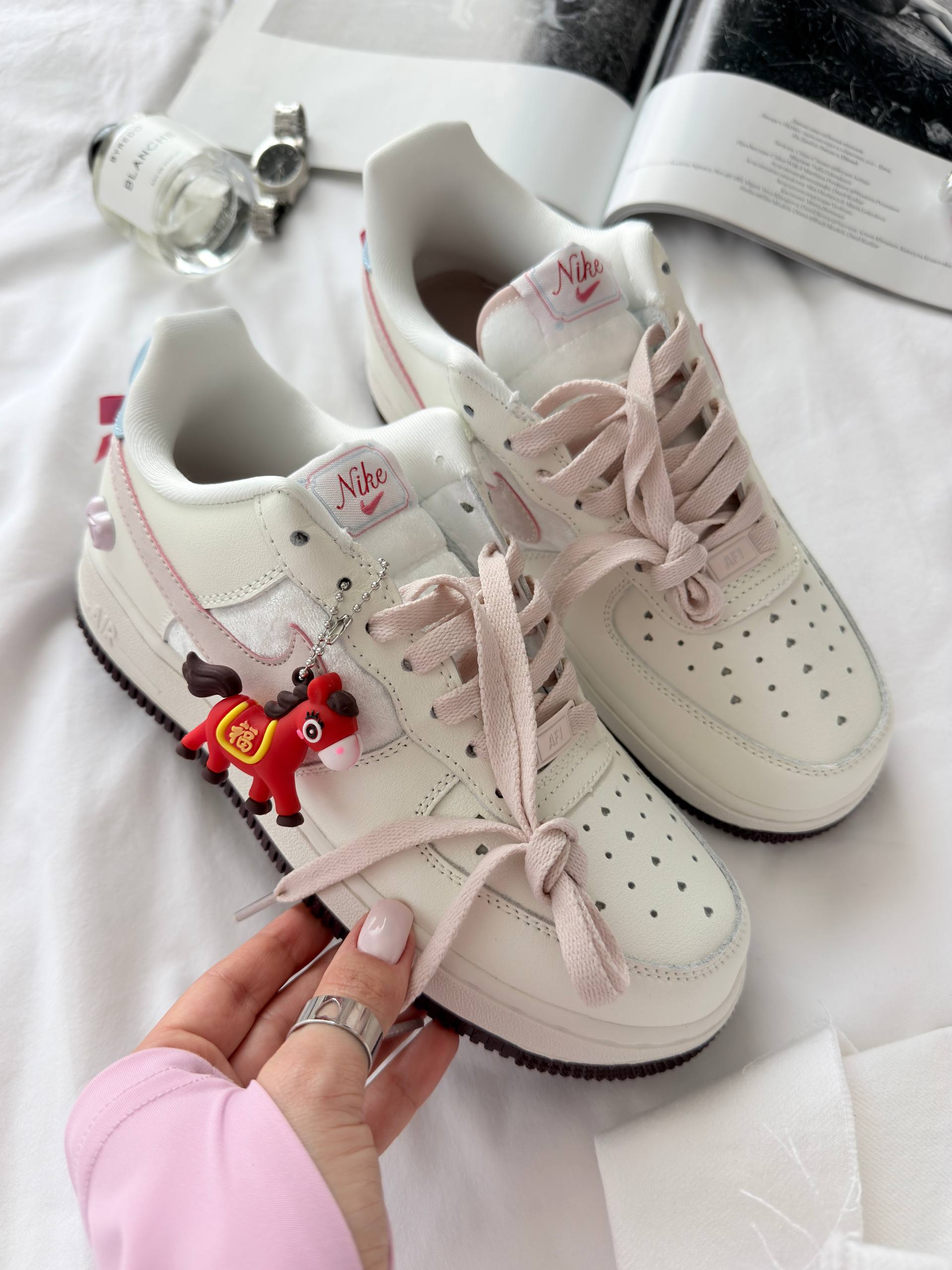 Ця пара чудово підходить для щоденного носіння, прогулянок містом і стильних casual або streetwear-образів. Вона гармонійно поєднується як зі спортивним одягом, так і з базовими речами гардероба, додаючи образу ніжності та виразності. Вдалий вибір для тих, хто цінує комфорт, класику та деталі з настроєм.