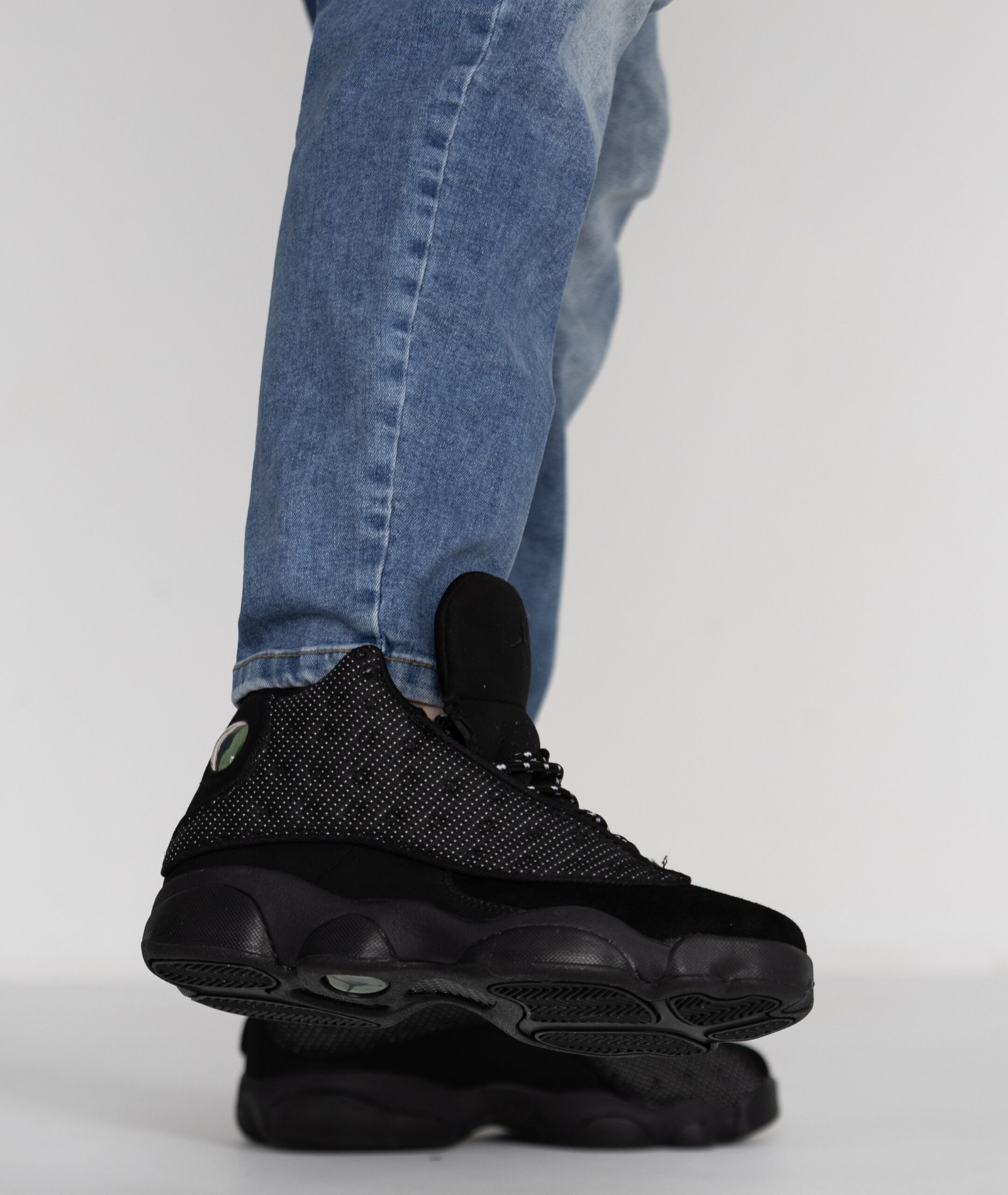 Nike Air Jordan 13 Retro Black Cat — це поєднання культового баскетбольного силуету, повністю чорної естетики та щоденного комфорту. Монохромний дизайн у стилі “Black Cat” створює стриманий, але потужний образ, який виглядає впевнено та стильно, а фірмові деталі Jordan 13 додають моделі впізнаваності й спортивного характеру.
