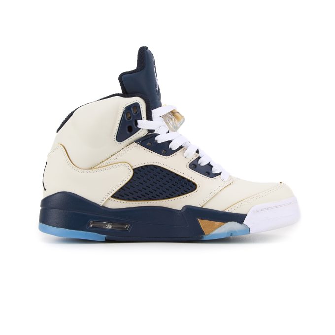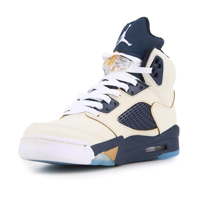 Nike Air Jordan 5 Retro Dunk From Above — це стильні кросівки з ретро-дизайном, натхненні авіаційною тематикою, що поєднують темно-синій та білий кольори для елегантного та спортивного вигляду.