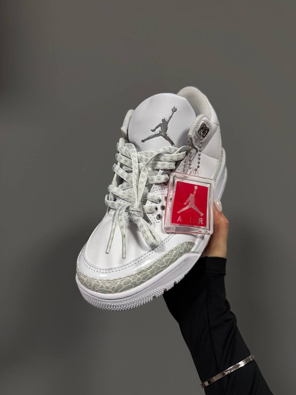 Nike Air Jordan Retro 3 White Silver — це стильні кросівки з преміальної шкіри у білому кольорі з сріблястими акцентами та культовим силуетом, що поєднує баскетбольну спадщину і сучасний стрітстайл.
