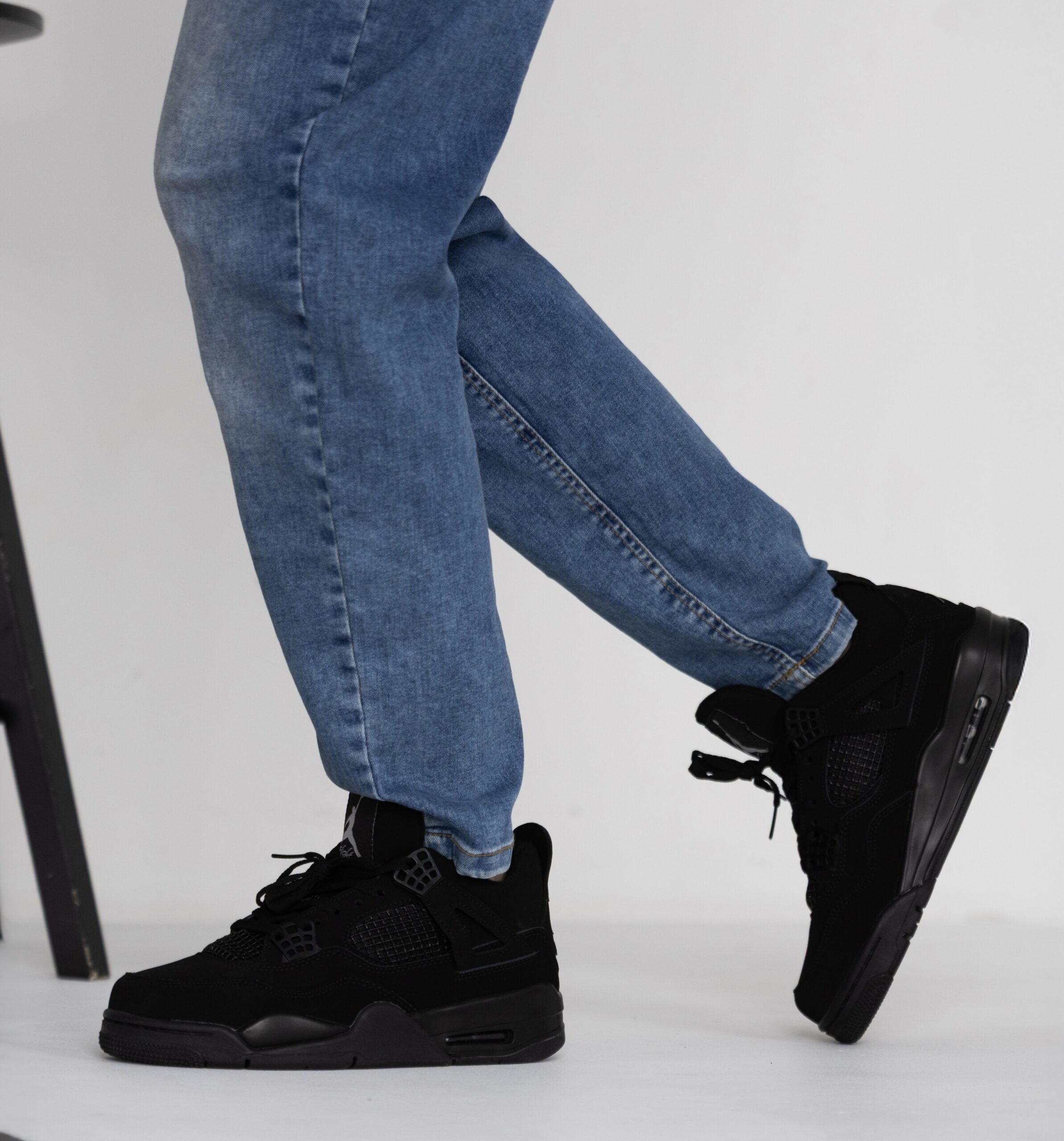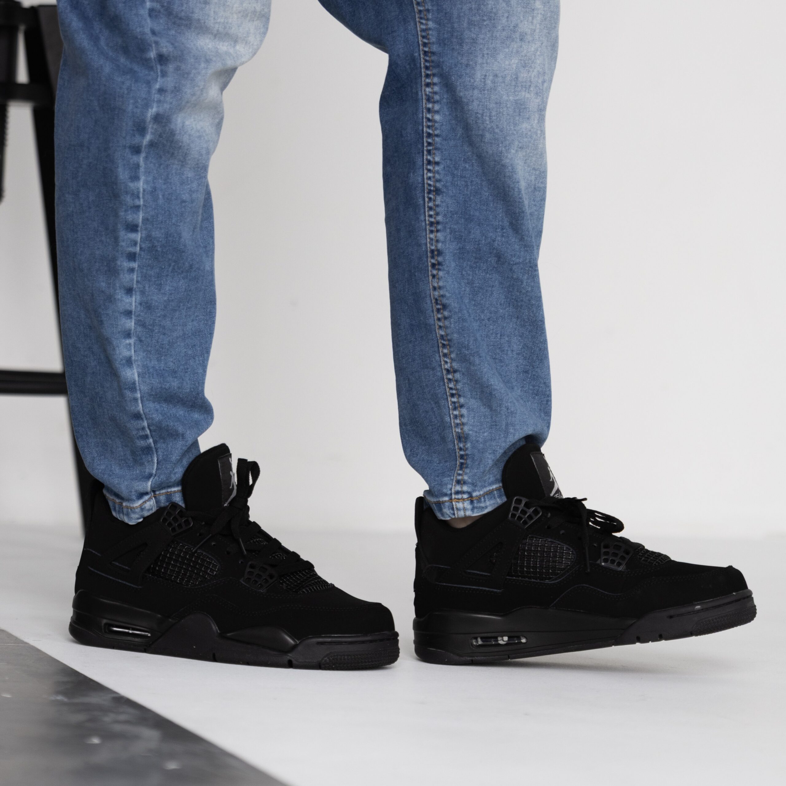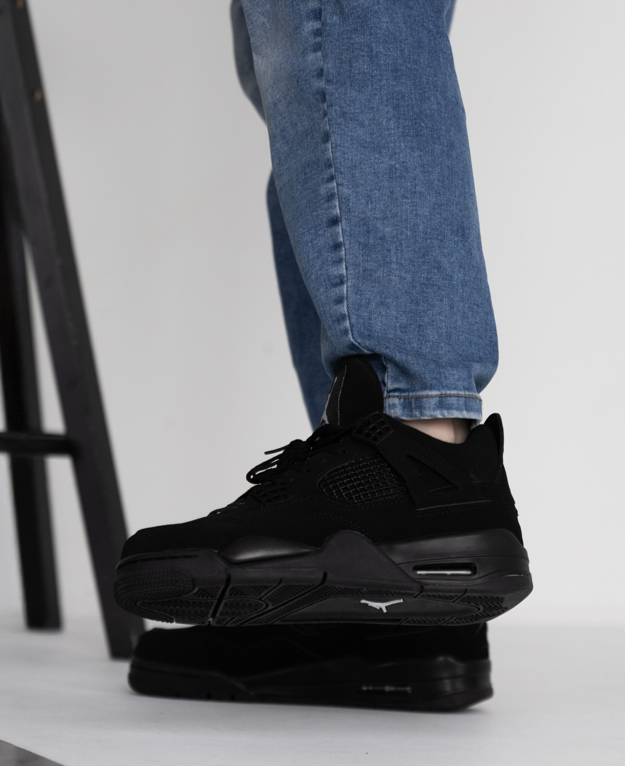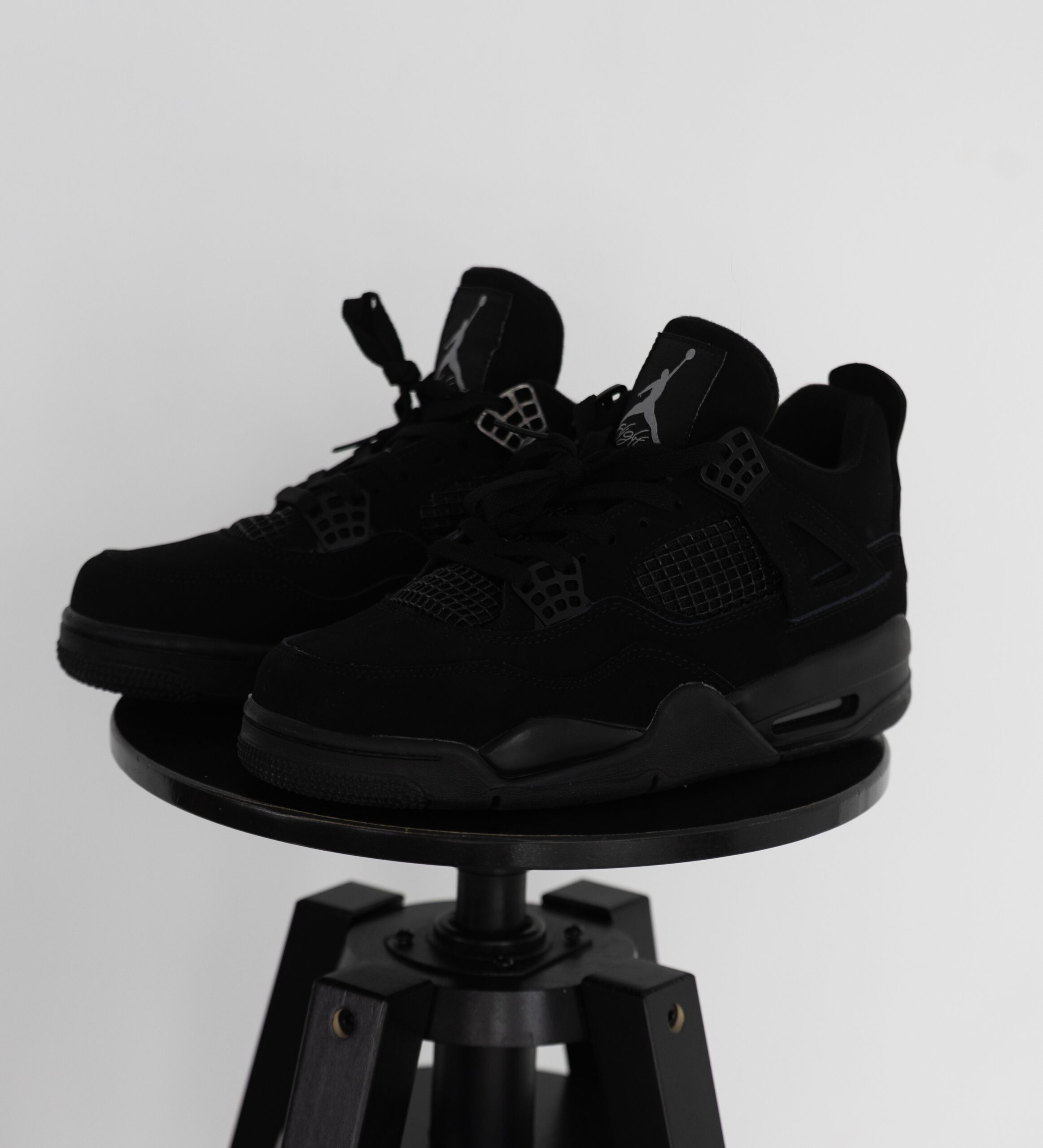 Nike Air Jordan Retro 4 Black Cat — це поєднання легендарного баскетбольного силуету, повністю чорної монохромної естетики та щоденного комфорту. Глибокий чорний колір створює стриманий, потужний образ, який виглядає стильно та впевнено, а культовий дизайн Jordan 4 додає моделі впізнаваності та виразного спортивного характеру.