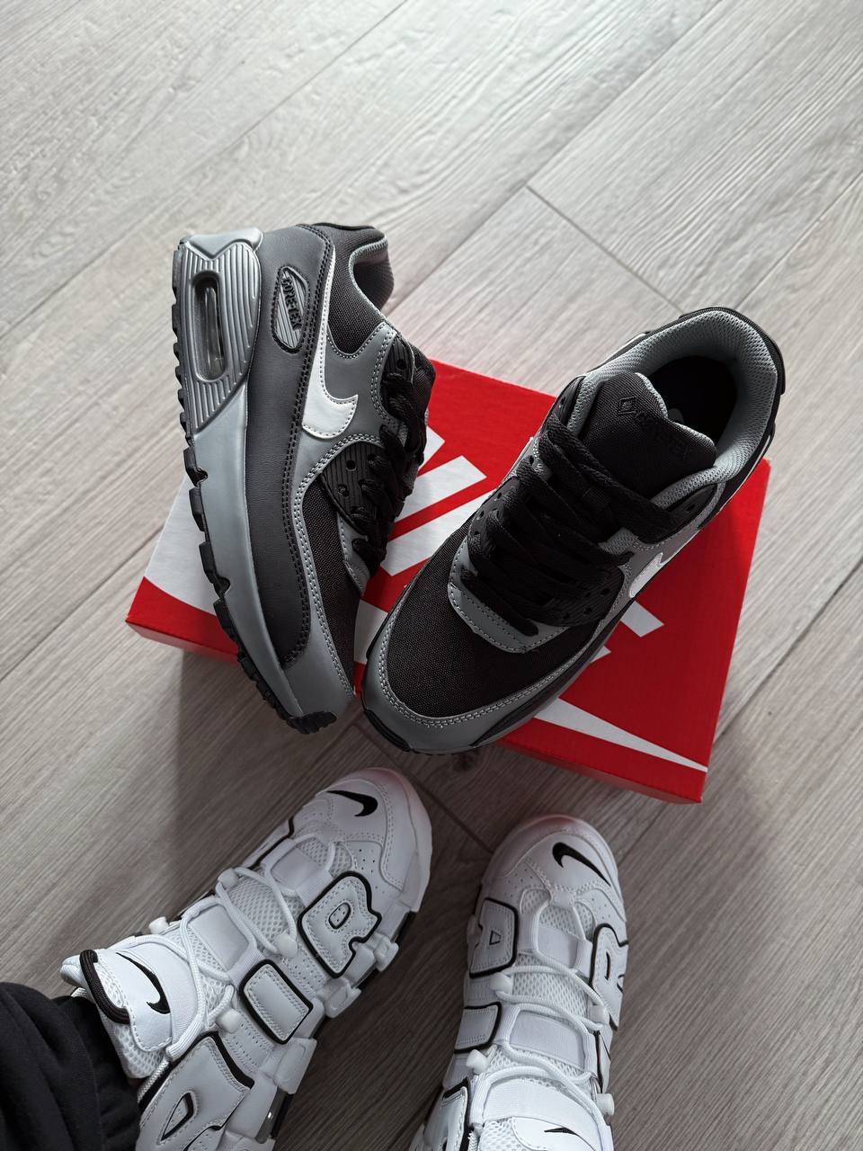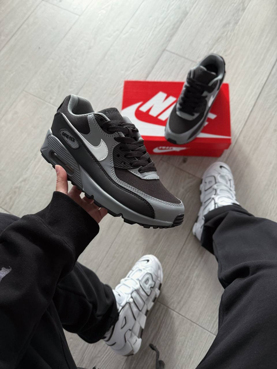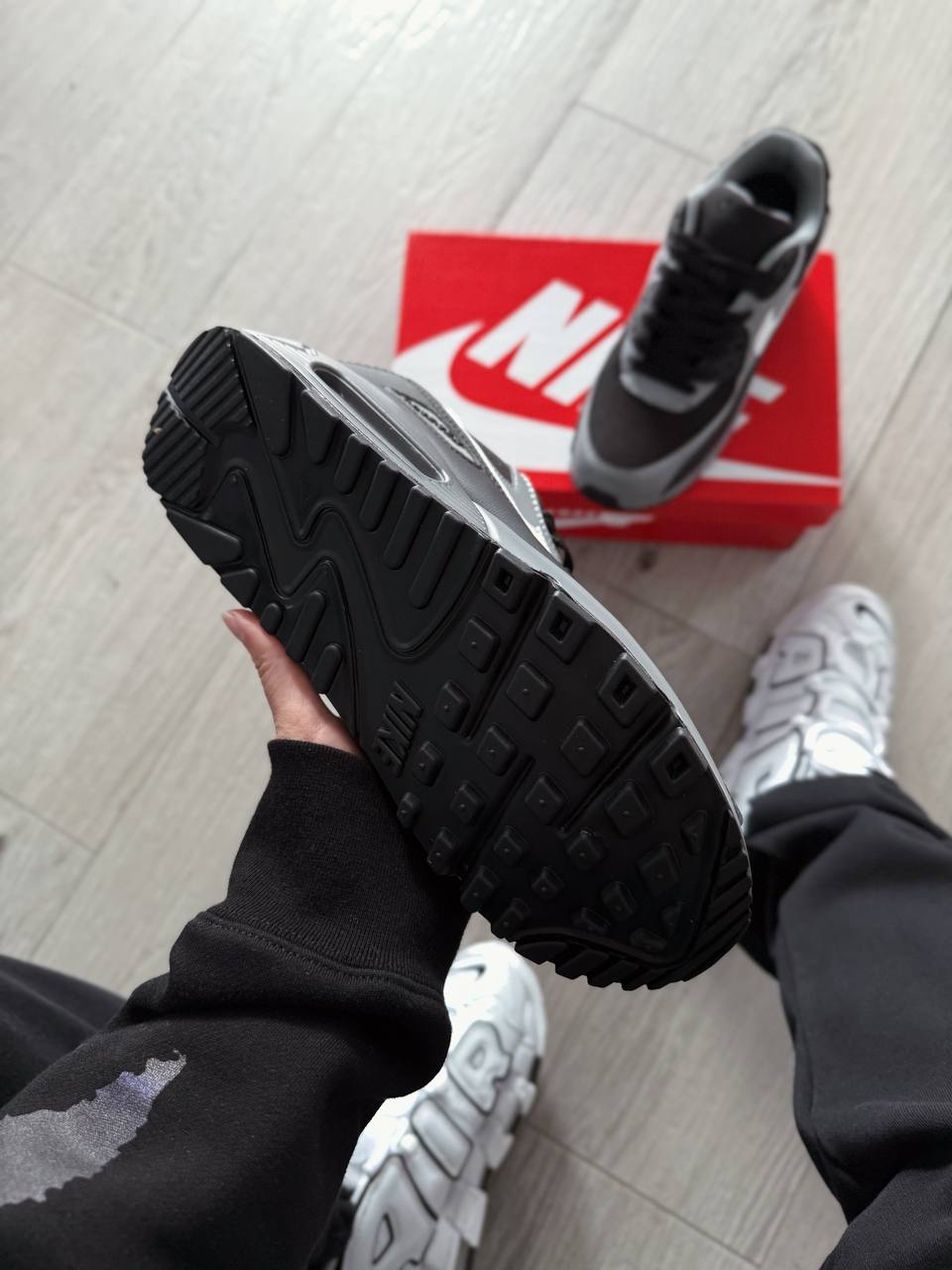 Nike Air Max 90 Gore-Tex Grey/Black — це класичні кросівки з водонепроникною мембраною Gore-Tex, поєднуючи темно-сірий та чорний кольори з білим логотипом Swoosh, що забезпечують комфорт і захист у будь-яку погоду.
