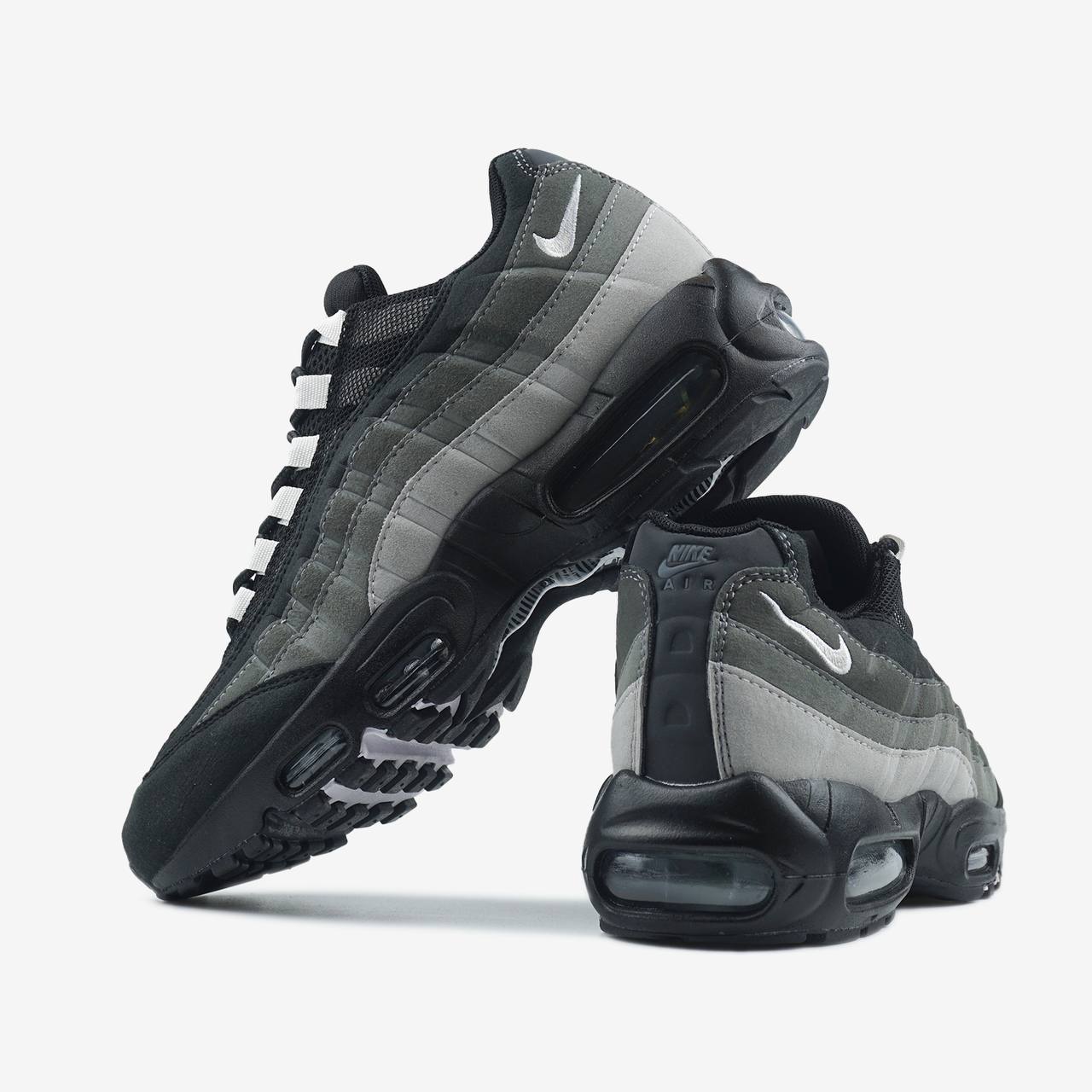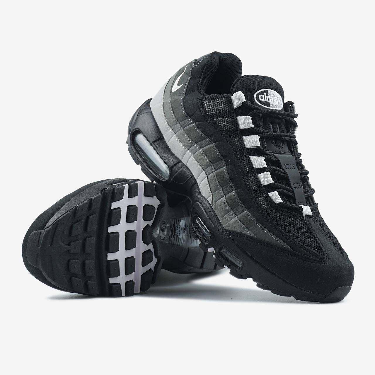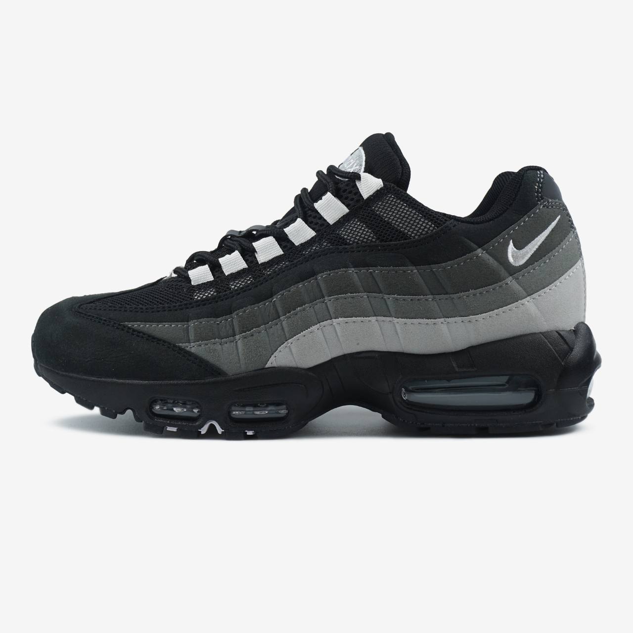 Nike Air Max 95 Grey Gradient — це поєднання легендарного багатошарового силуету, градієнтної сірої палітри та щоденного комфорту. Перехід від світлих до темних відтінків сірого створює глибокий, динамічний образ, який виглядає стильно та підкреслює фірмову анатомічну естетику моделі. Видимі елементи Air Max додають впізнаваності та технологічного характеру.