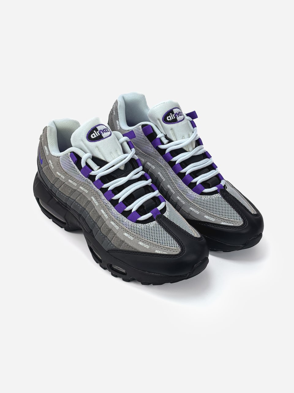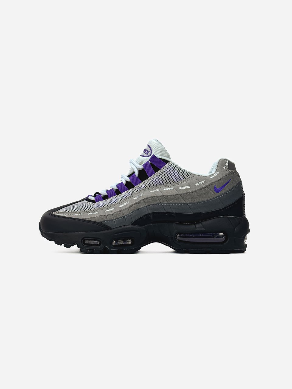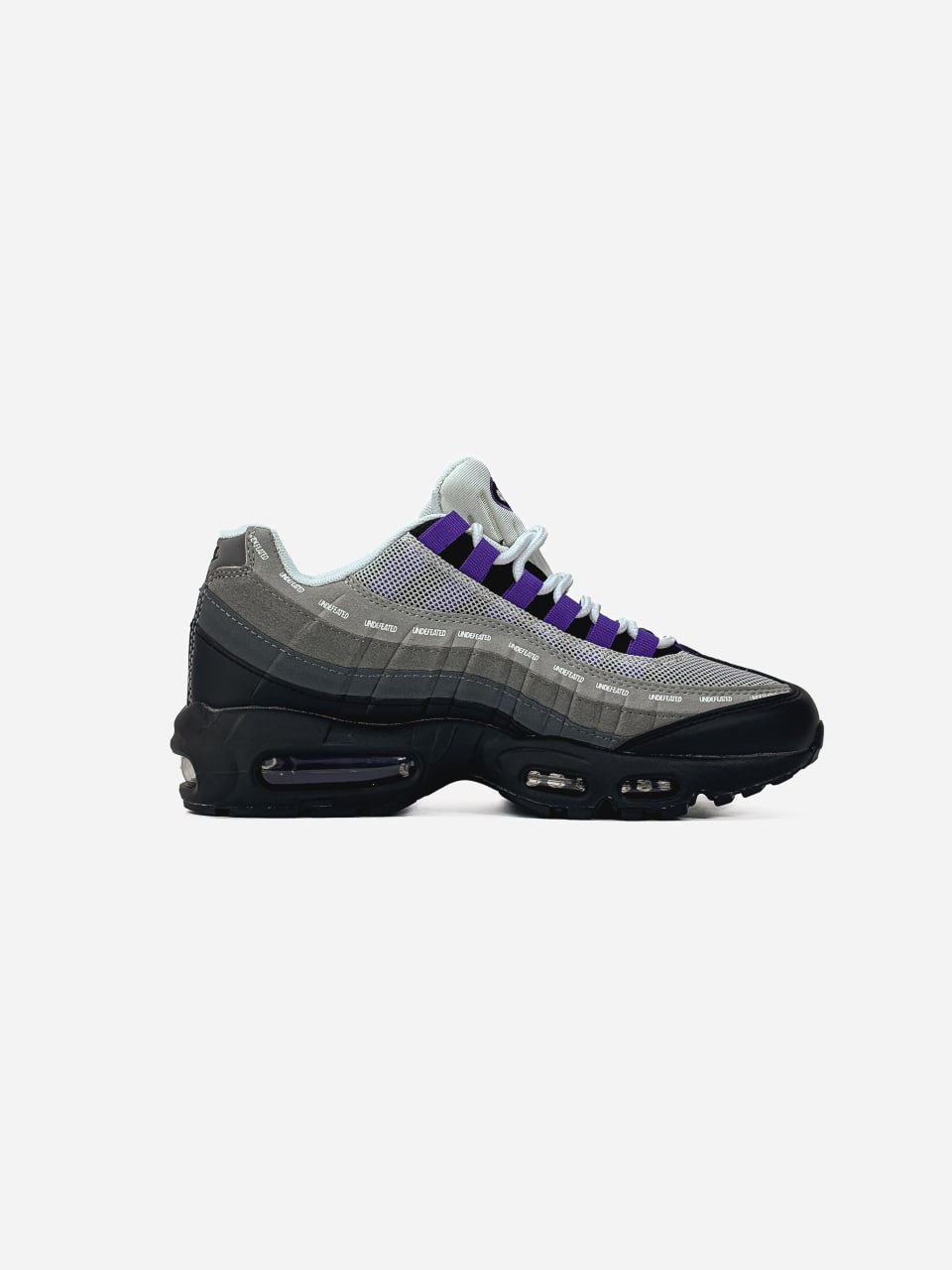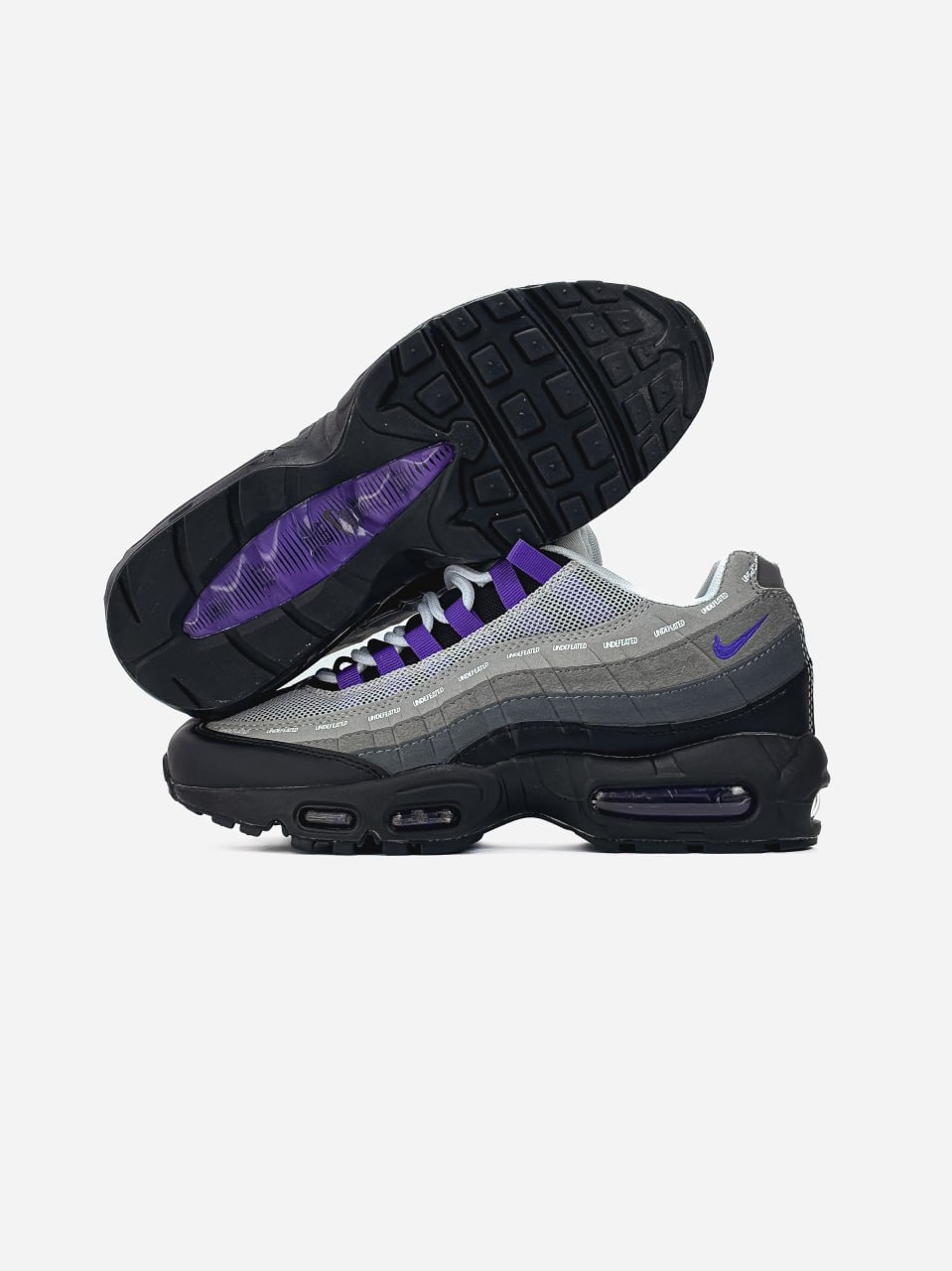 Nike Air Max 95 x Undefeated Black Grey Blue — це стильні колабораційні кросівки в поєднанні чорного, сірого та блакитного кольорів, що поєднують культовий дизайн Air Max 95 з вуличною естетикою Undefeated.