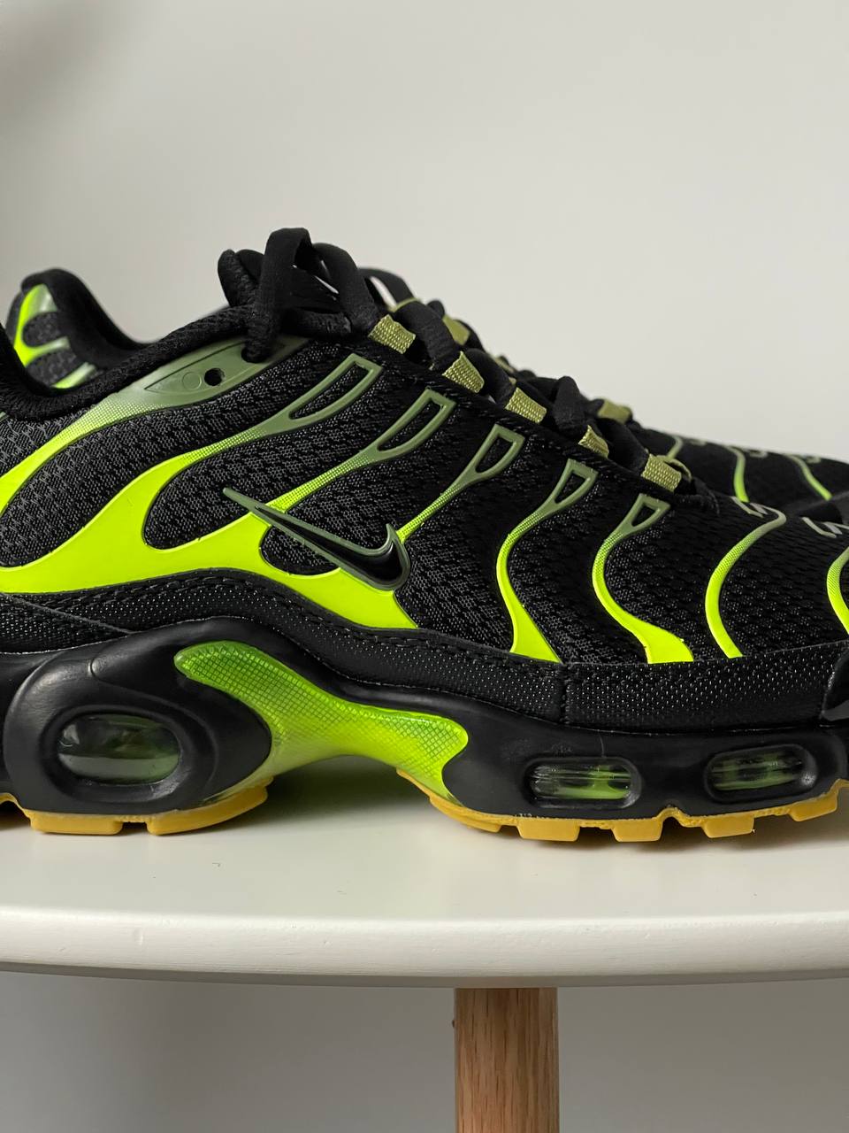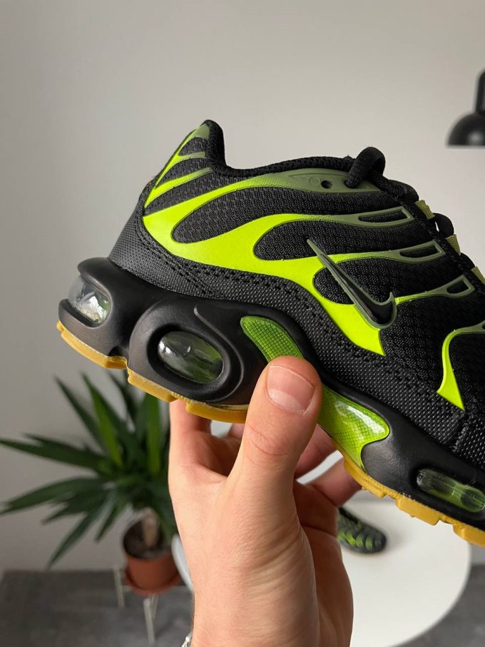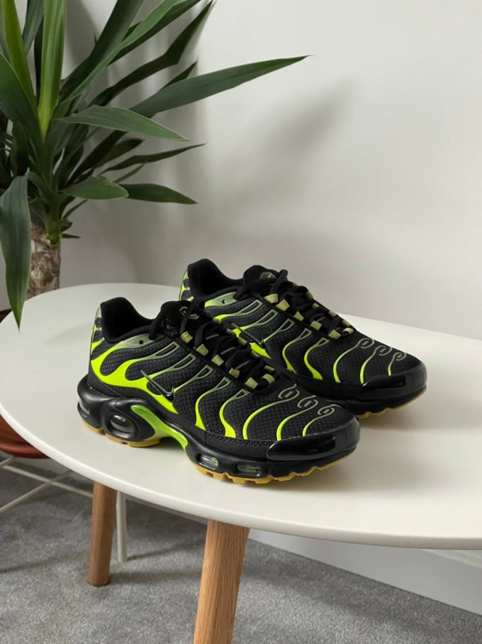 Nike Air Max Plus Black Green DM0032-010 — це динамічні кросівки з чорним верхом і яскравими зеленими акцентами, що поєднують спортивний стиль з технологією амортизації Air для комфорту та підтримки.