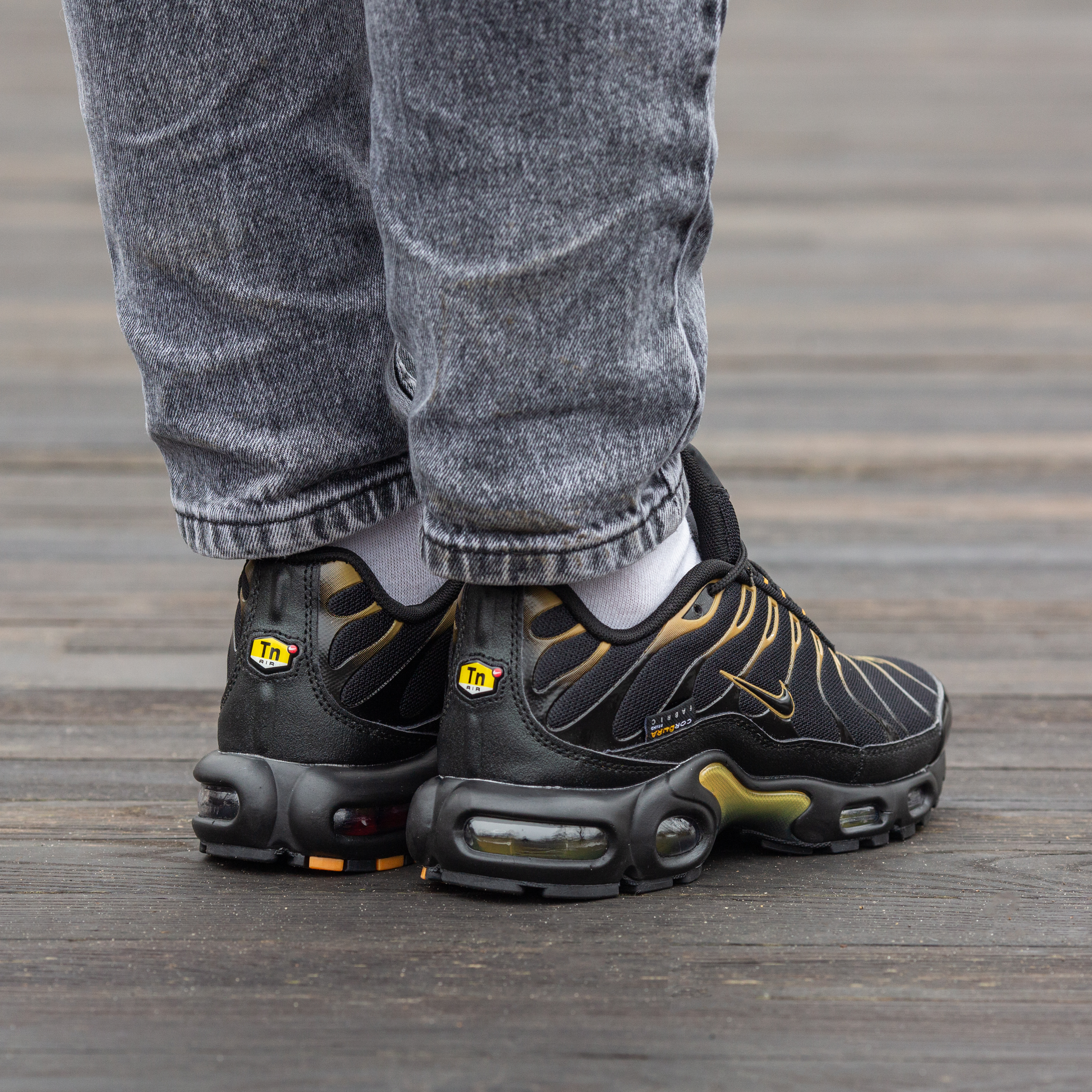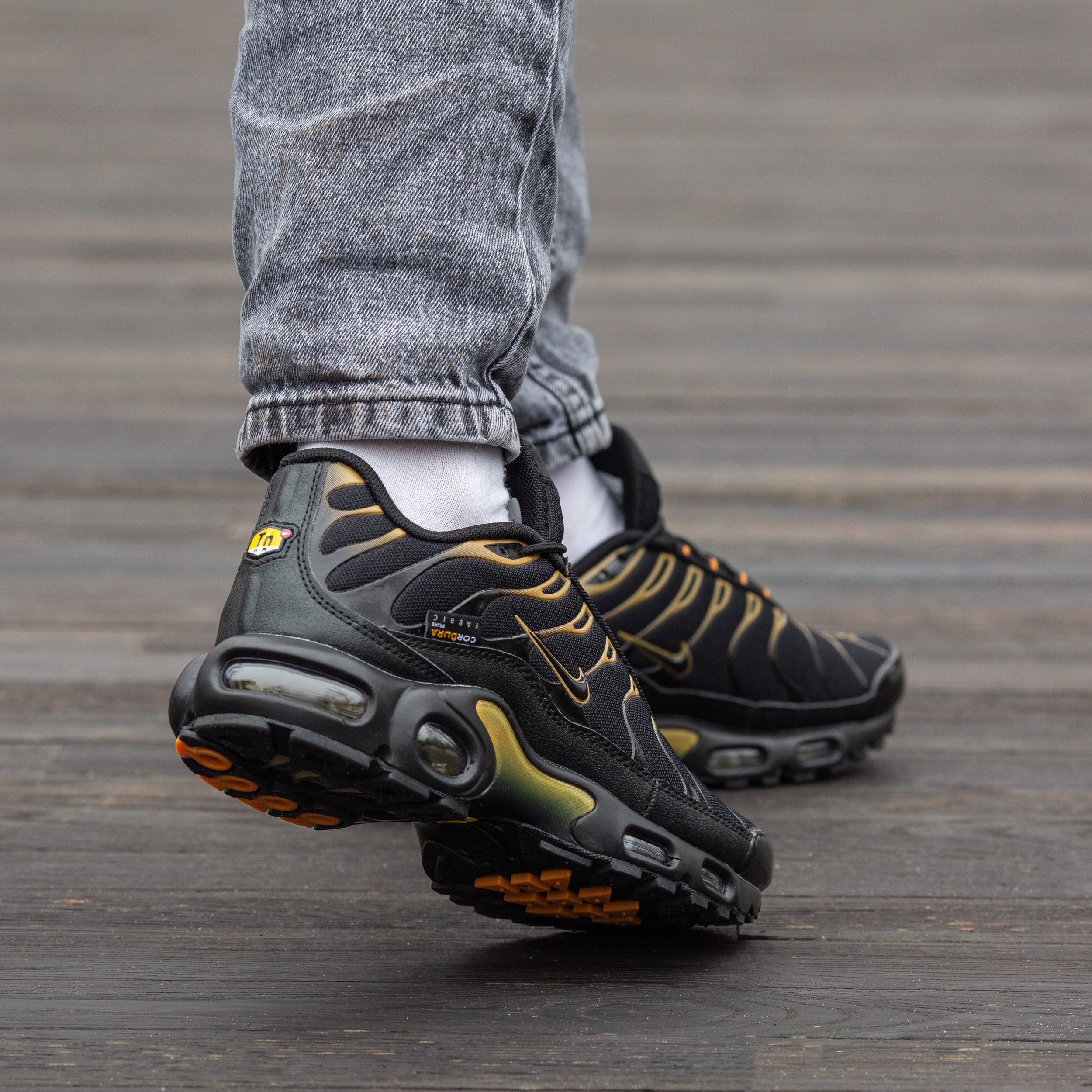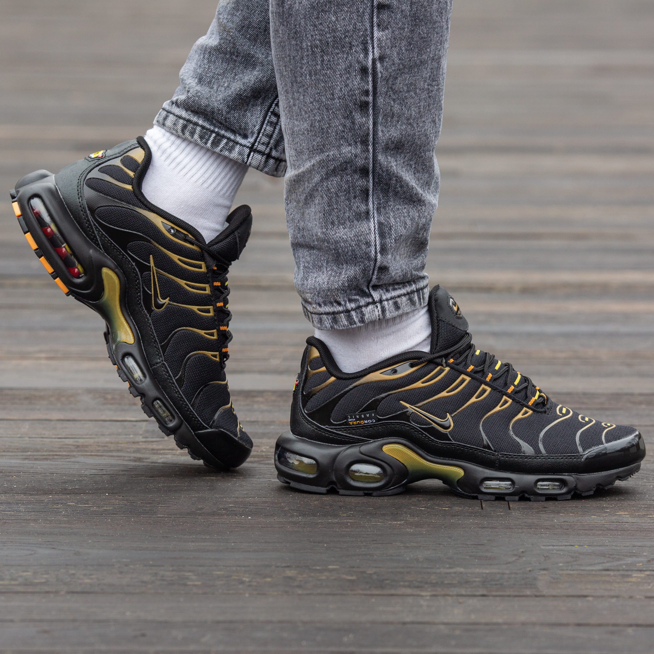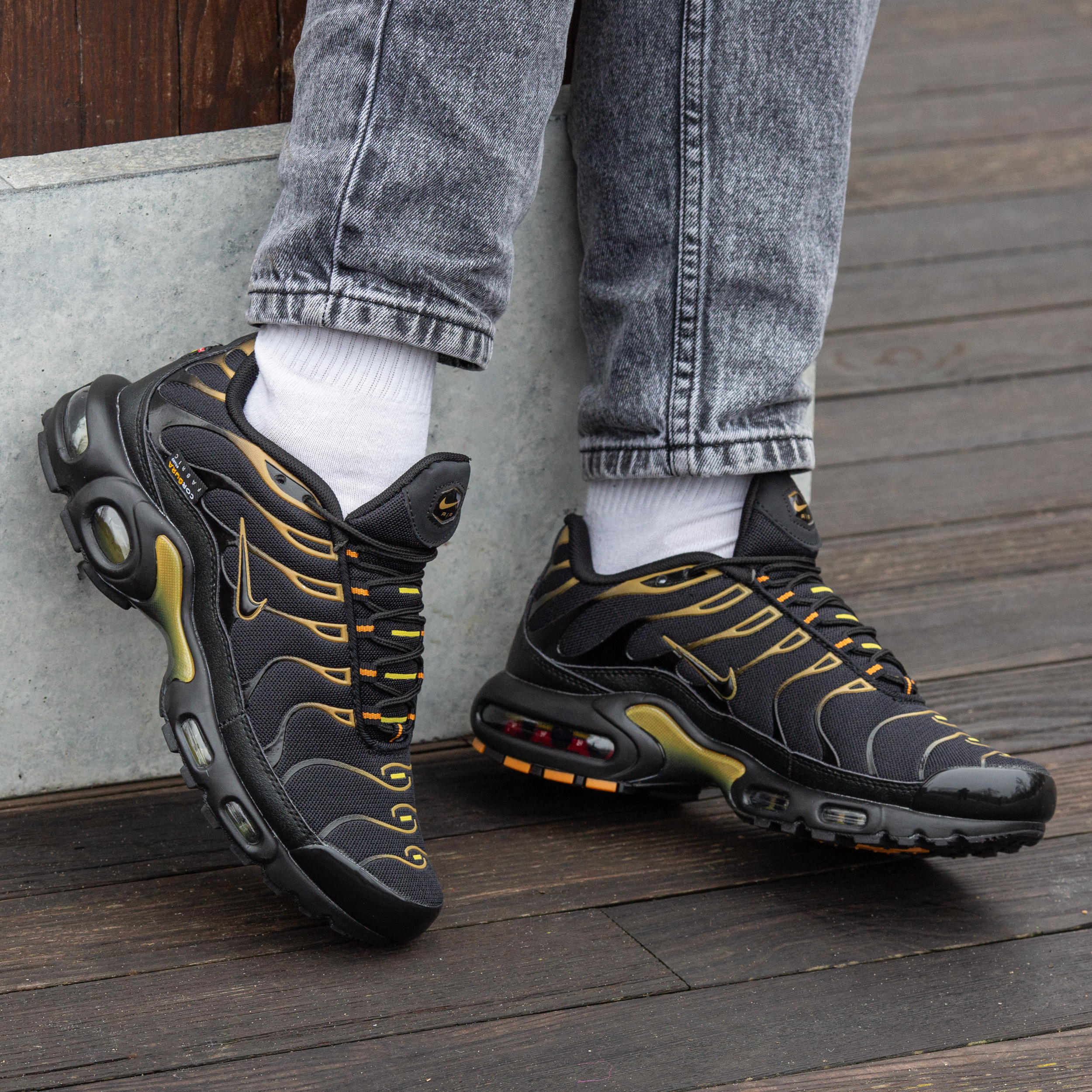 Nike Air Max TN Plus Cordura Black Golf Yellow — це поєднання агресивного футуристичного силуету, міцних матеріалів Cordura та контрастної чорно-жовтої палітри. Глибокий чорний фон із яскравими акцентами “Golf Yellow” створює сміливий, енергійний образ, який підкреслює характер моделі, а фірмова система амортизації Tuned Air забезпечує комфорт і підтримку.