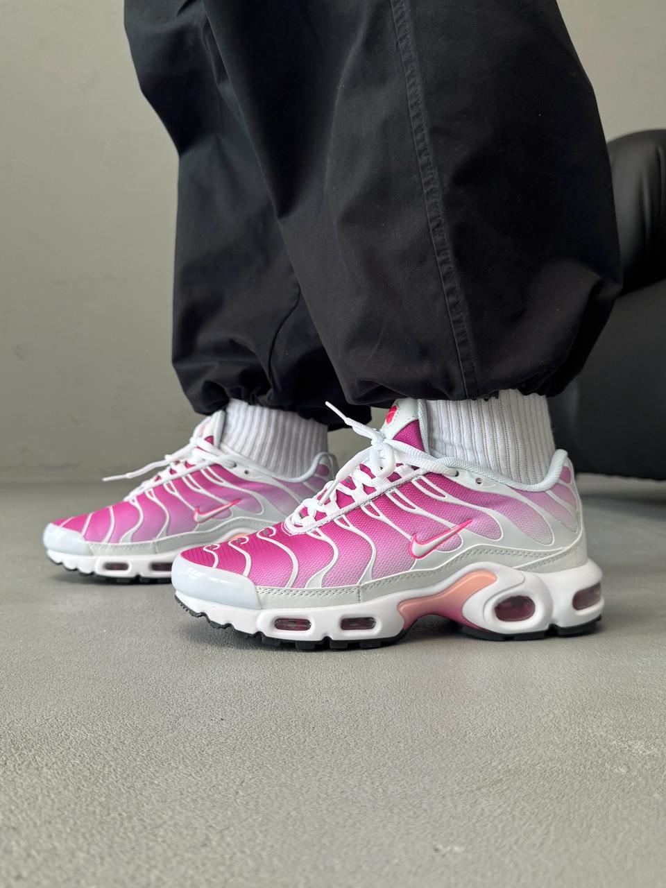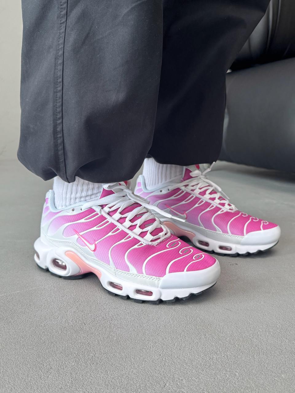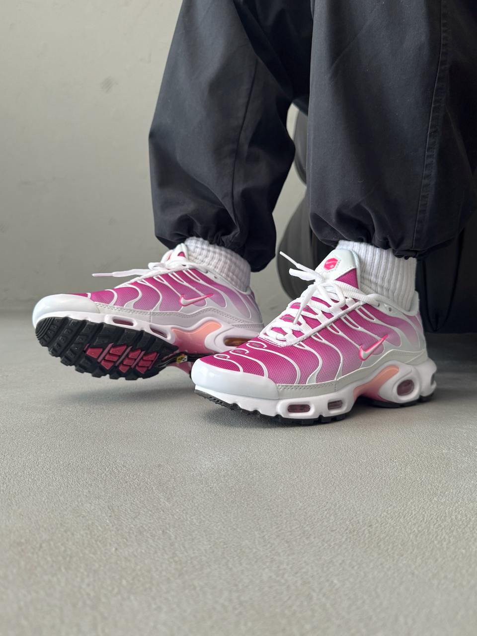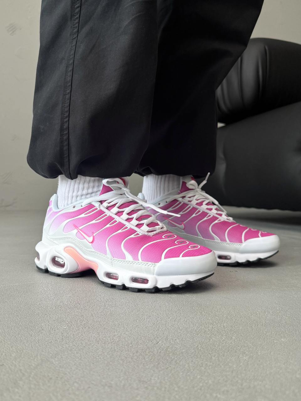 Nike Air Max TN Plus Hot Pink — це поєднання виразного футуристичного силуету, яскравої неонової палітри та щоденного комфорту. Насичений відтінок Hot Pink створює сміливий, енергійний образ, який одразу привертає увагу, а фірмова система Tuned Air забезпечує амортизацію та підтримку під час руху.