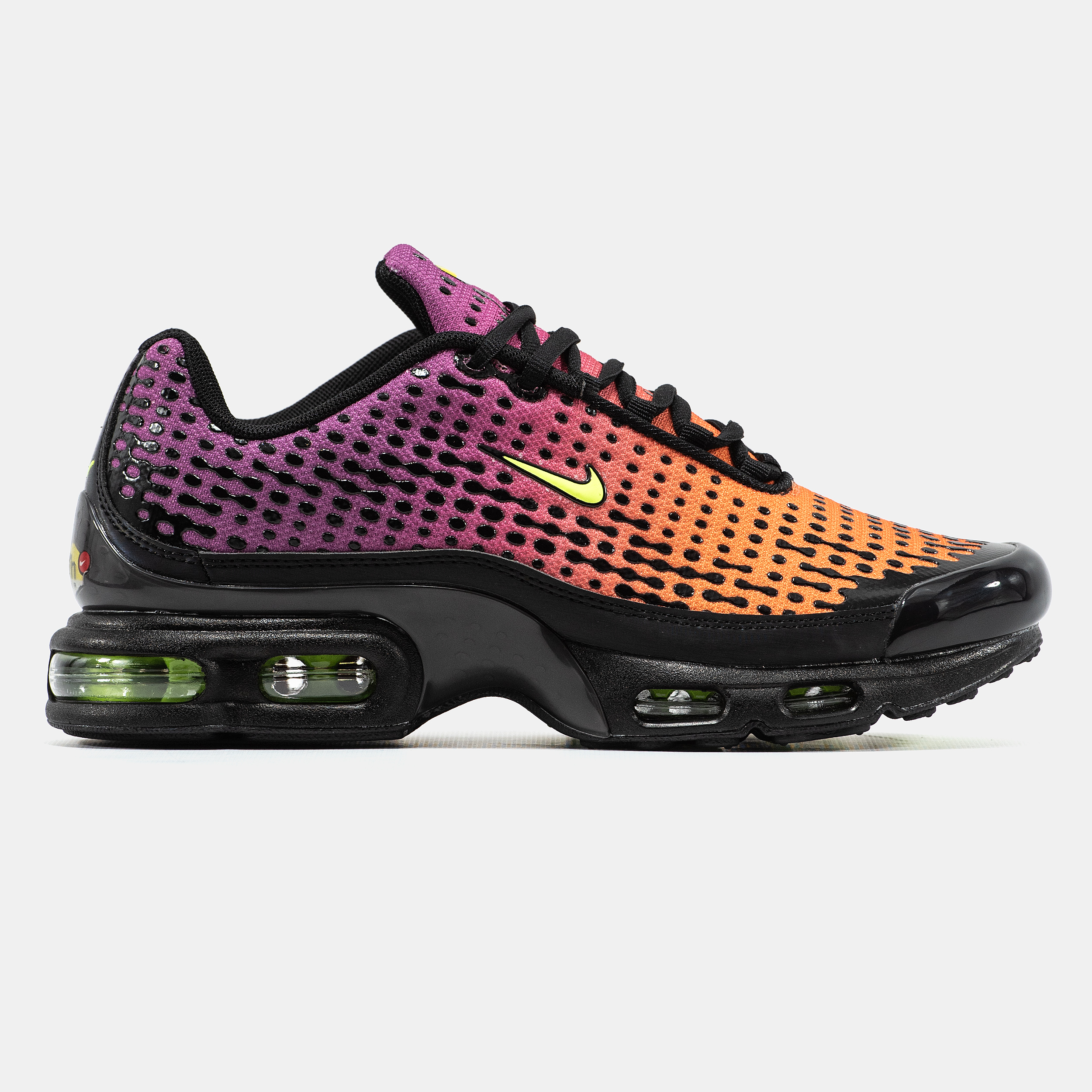 Nike Air Max TN Plus VII Purple — це поєднання впізнаваного хвилястого силуету, глибокої фіолетової палітри та щоденного комфорту. Насичений відтінок purple створює виразний, динамічний образ, який виглядає сміливо та підкреслює характерну естетику Tuned Air, а фірмові лінії моделі додають їй енергії та сучасного streetwear-настрою.