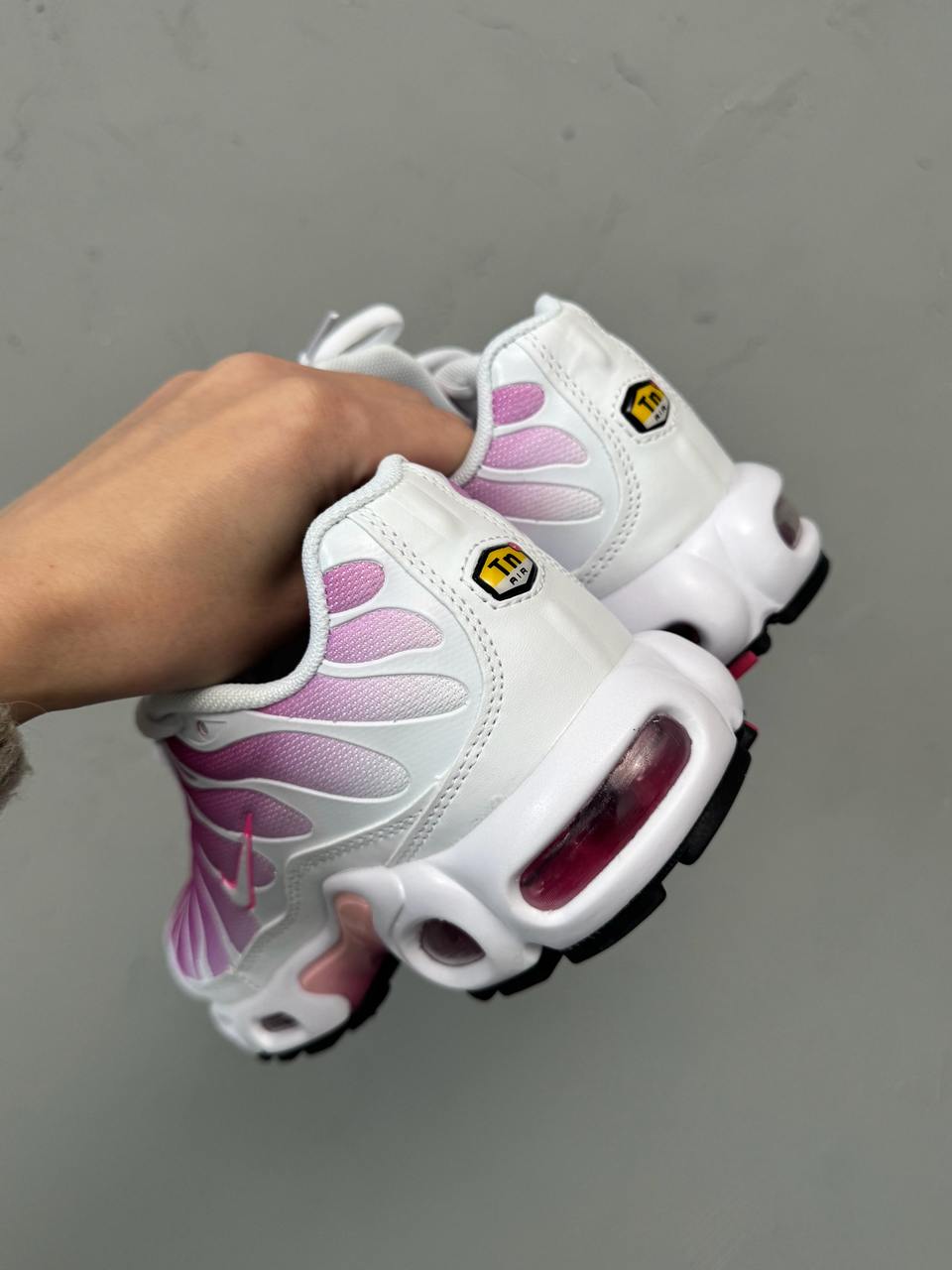 Nike Air Max TN Plus White/Pink — стильні кросівки з дихаючим сітчастим верхом, амортизацією Air Max і яскравими рожевими акцентами. Ідеально підходять для повсякденного носіння та активного способу життя.