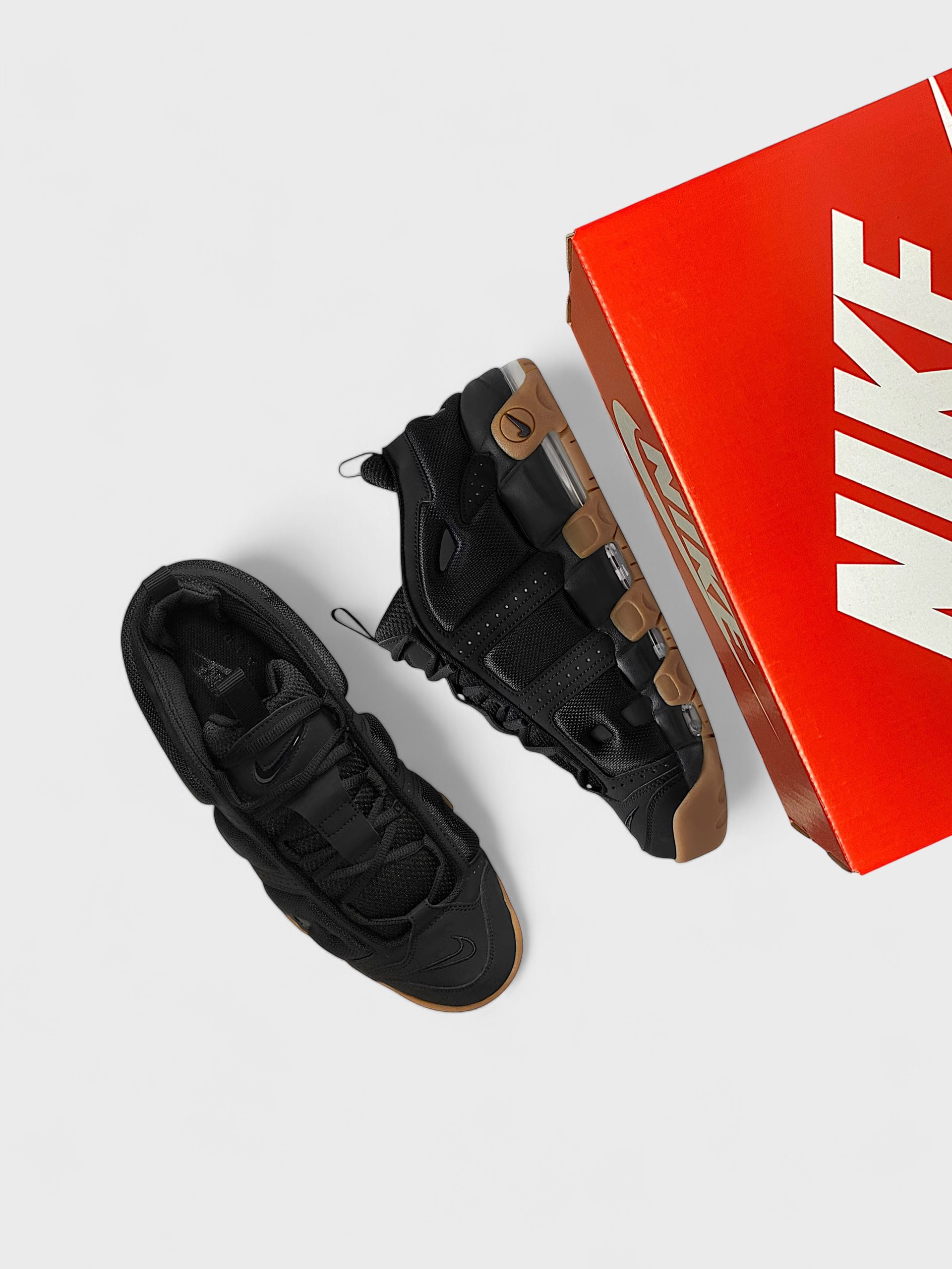 Nike Air More Uptempo Low Black Gum — це низькі кросівки з масивним дизайном, чорним верхом і контрастною гумовою підошвою, які поєднують ретро-естетику 90-х з сучасним комфортом.