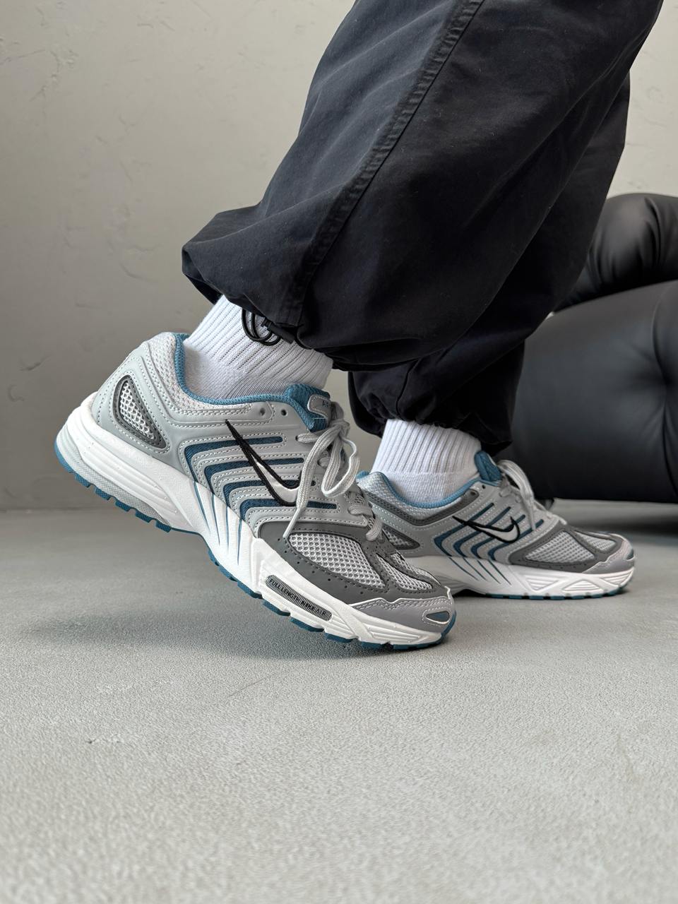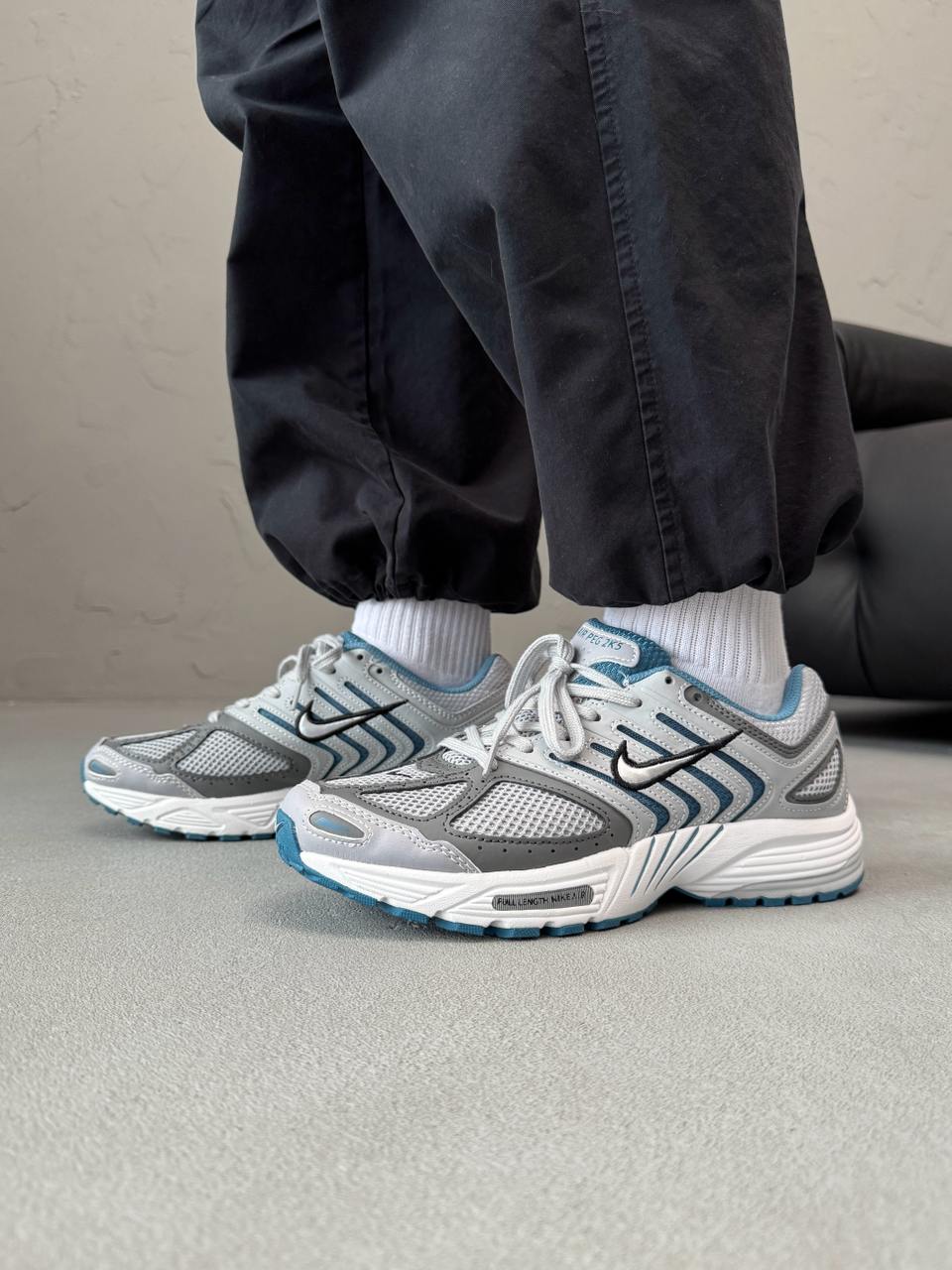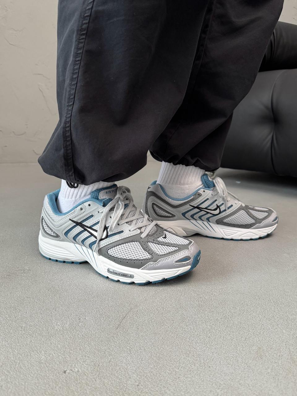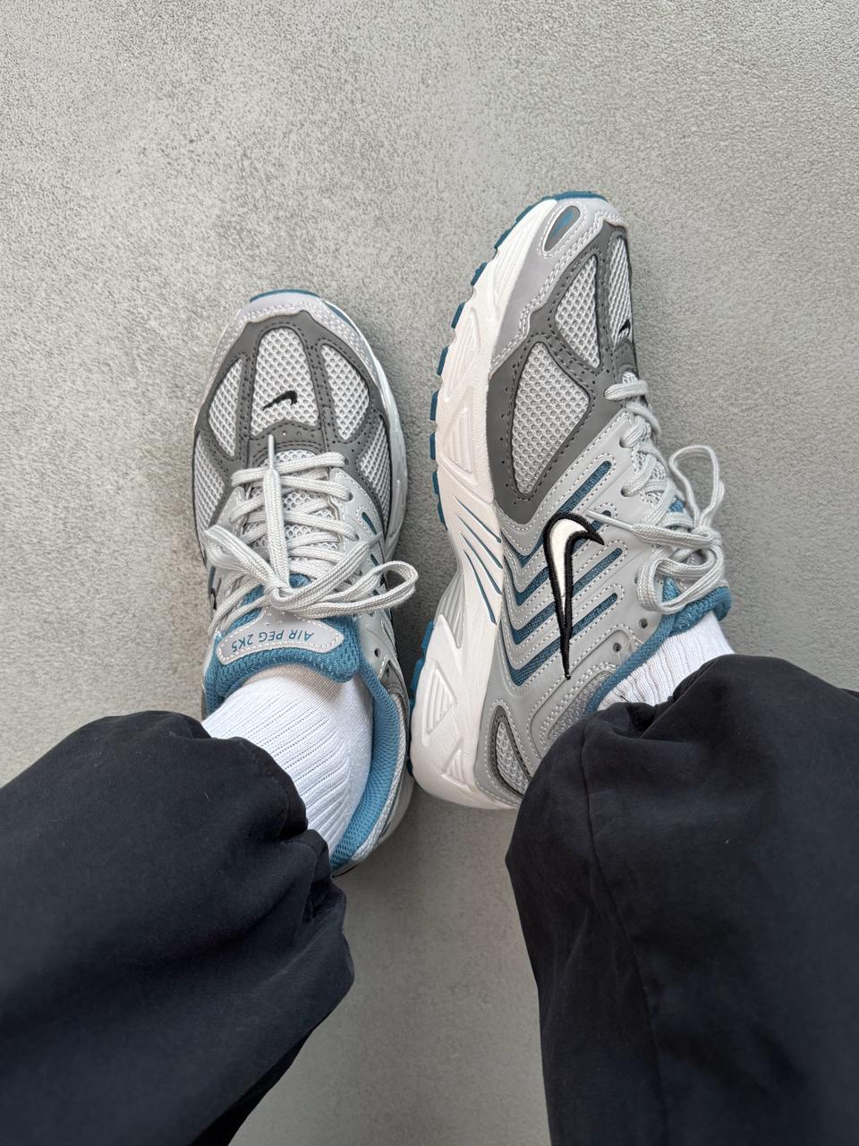 Nike Air Pegasus 2K5 Grey Black Blue — це ретро-бігові кросівки з сірим, чорним і синім кольоровим блокуванням, які поєднують ностальгічний стиль 2000-х з сучасним комфортом.