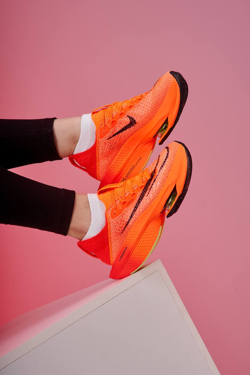 Nike Air Zoom Alphafly Orange — це поєднання інноваційного бігового силуету, яскравої енергійної палітри та максимального комфорту. Насичений помаранчевий колір створює динамічний, помітний образ, який виглядає сміливо й сучасно, а передові технології Nike підкреслюють легкість, амортизацію та швидкість моделі.