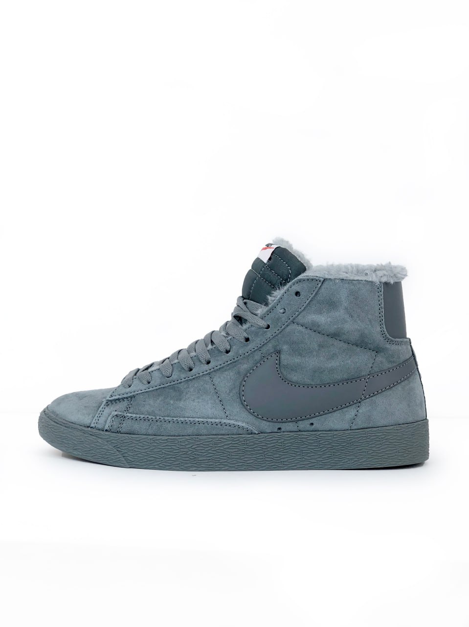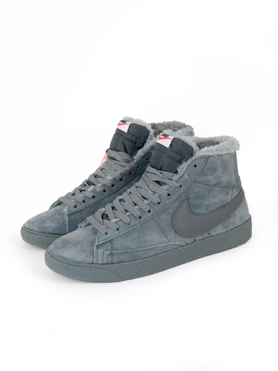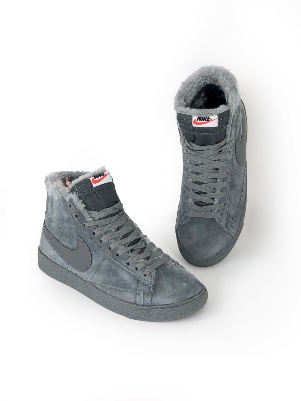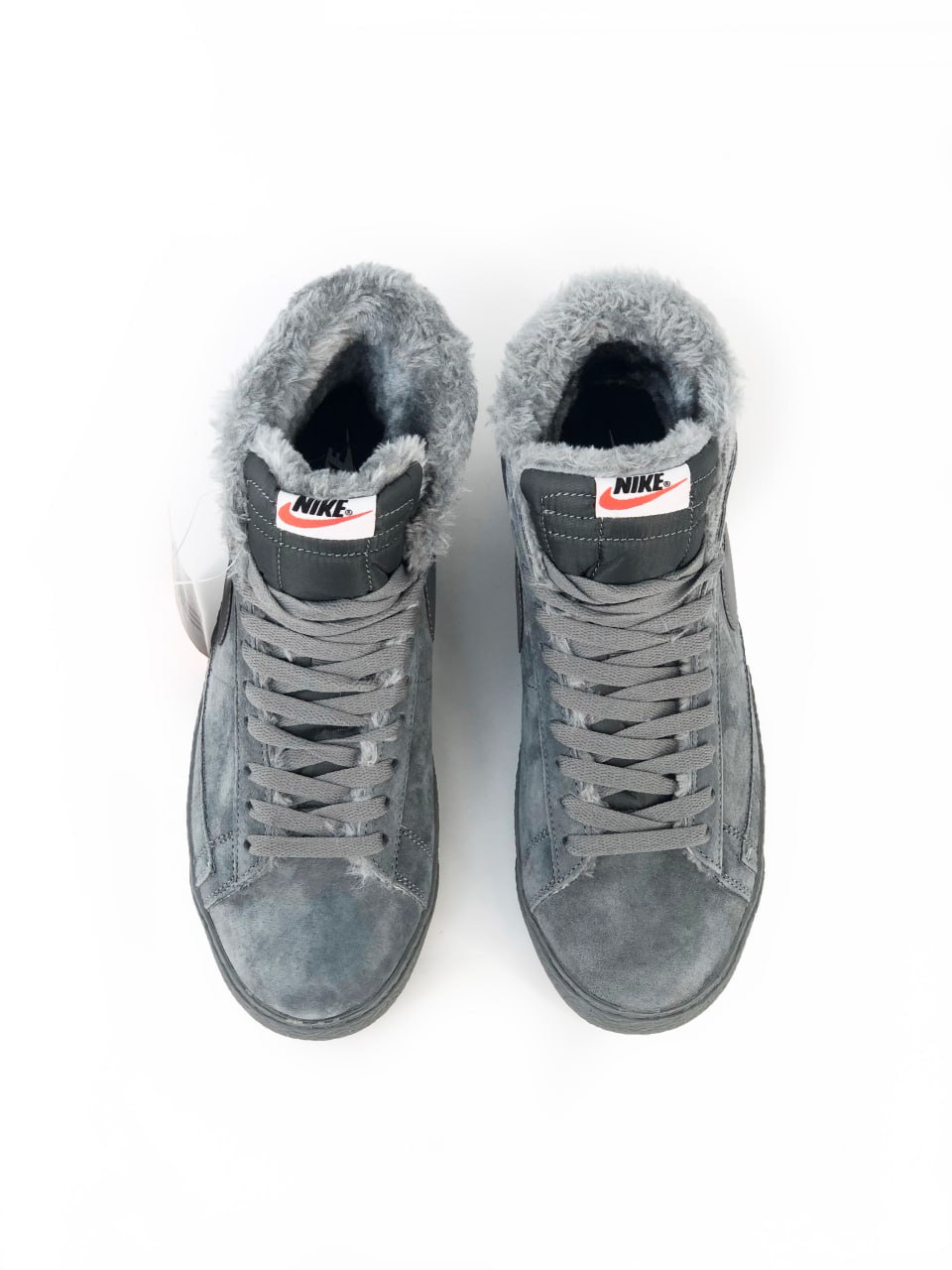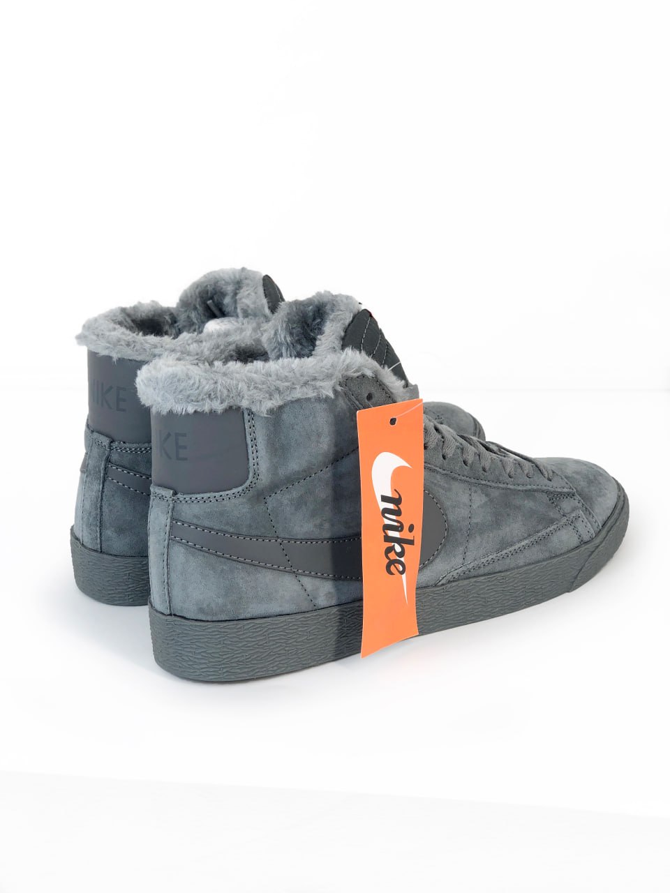 Nike Blazer Mid Grey Fur — це високі кросівки з сірим верхом та хутряною підкладкою, що поєднують ретро‑силует із теплим комфортом і модним акцентом для повсякденного носіння.